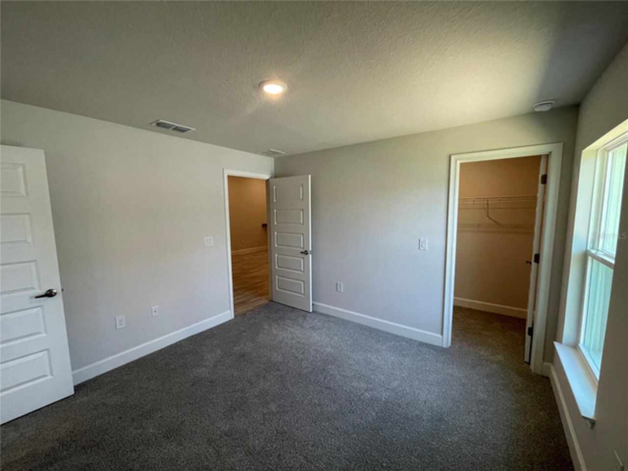 Crown Molding, Open Floorplan, Primary Bedroom Main Floor, Solid Wood Cabinets, Stone Counters, Thermostat, Vaulted Ceiling(s), Walk-In Closet(s)