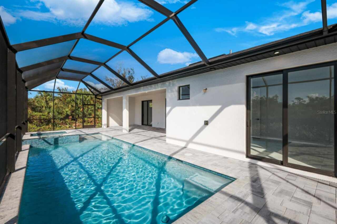 NO FLOOD ZONE! Welcome to 13377 Alocasia Ln, a stunning new construction home in South Gulf Cove! Featuring 3 bedrooms + Den and 2 bathrooms + a half-bath with pool access, this home offers modern elegance with high ceilings, an open floor plan, and a beautiful kitchen. Located on CITY WATER and SEWER. Enjoy the community's park, boat launch, and canals leading to Charlotte Harbor and the Gulf. Less than 14 miles from Englewood Beach, this home combines comfort, style, and prime location. Schedule your private showing today!