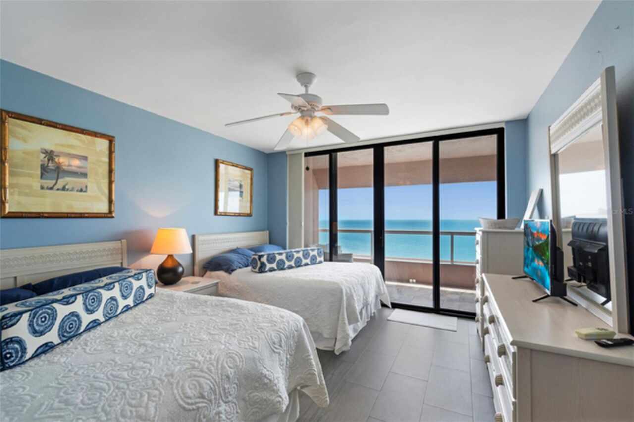 Come live the Florida lifestyle right on the beach. Your new 2BR/2BA condo is move-in ready and located in Crescent Beach Club right on Sand Key. A perfect getaway, full time residence or investment property with a two week minimum rental period. Both bedrooms and living room are oceanfront, with direct access to an expansive balcony. Enjoy panoramic views of the Gulf of Mexico with sparkling waters and breathtaking sunsets. The property has resort style amenities that include a heated pool and hot tub, tennis courts, gym, spa and inside sauna, beachfront gas grill area, billiards room, library and clubhouse room with kitchen. This condo is being sold turn key. It’s within walking distance to shops and restaurants, and a trolley stop just steps from the front gate. Two parking spots, including covered parking areas; first come, first served daily.