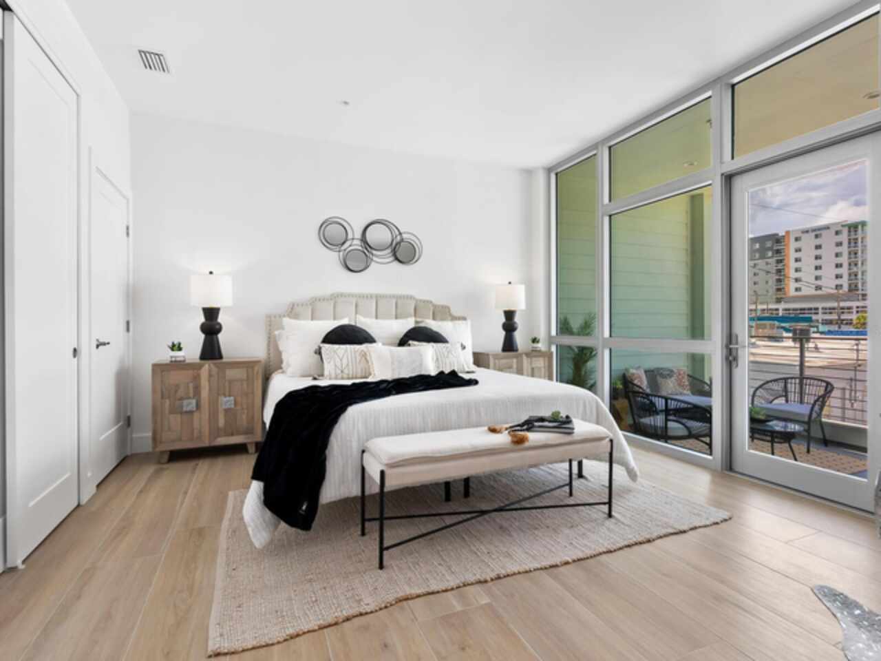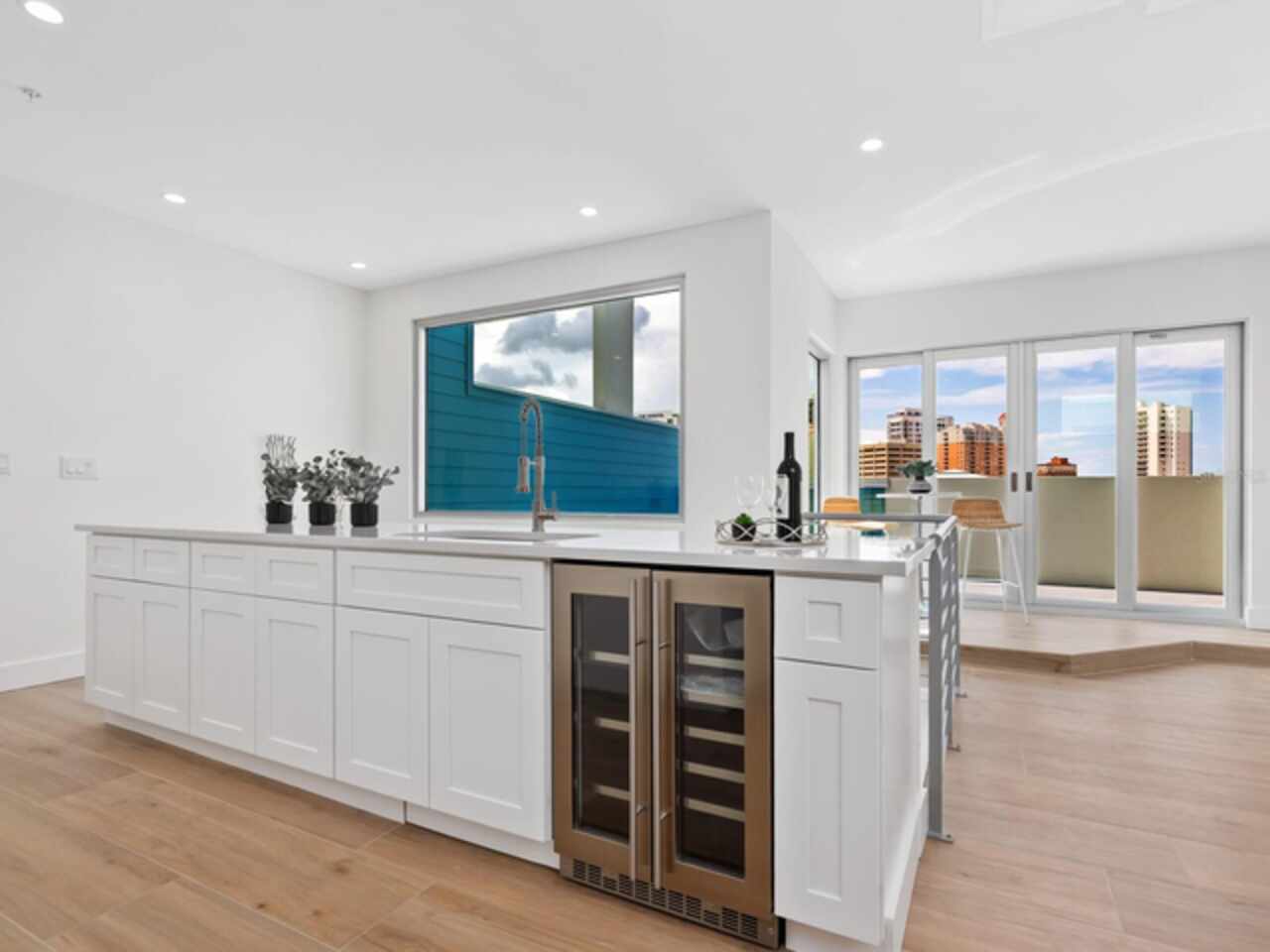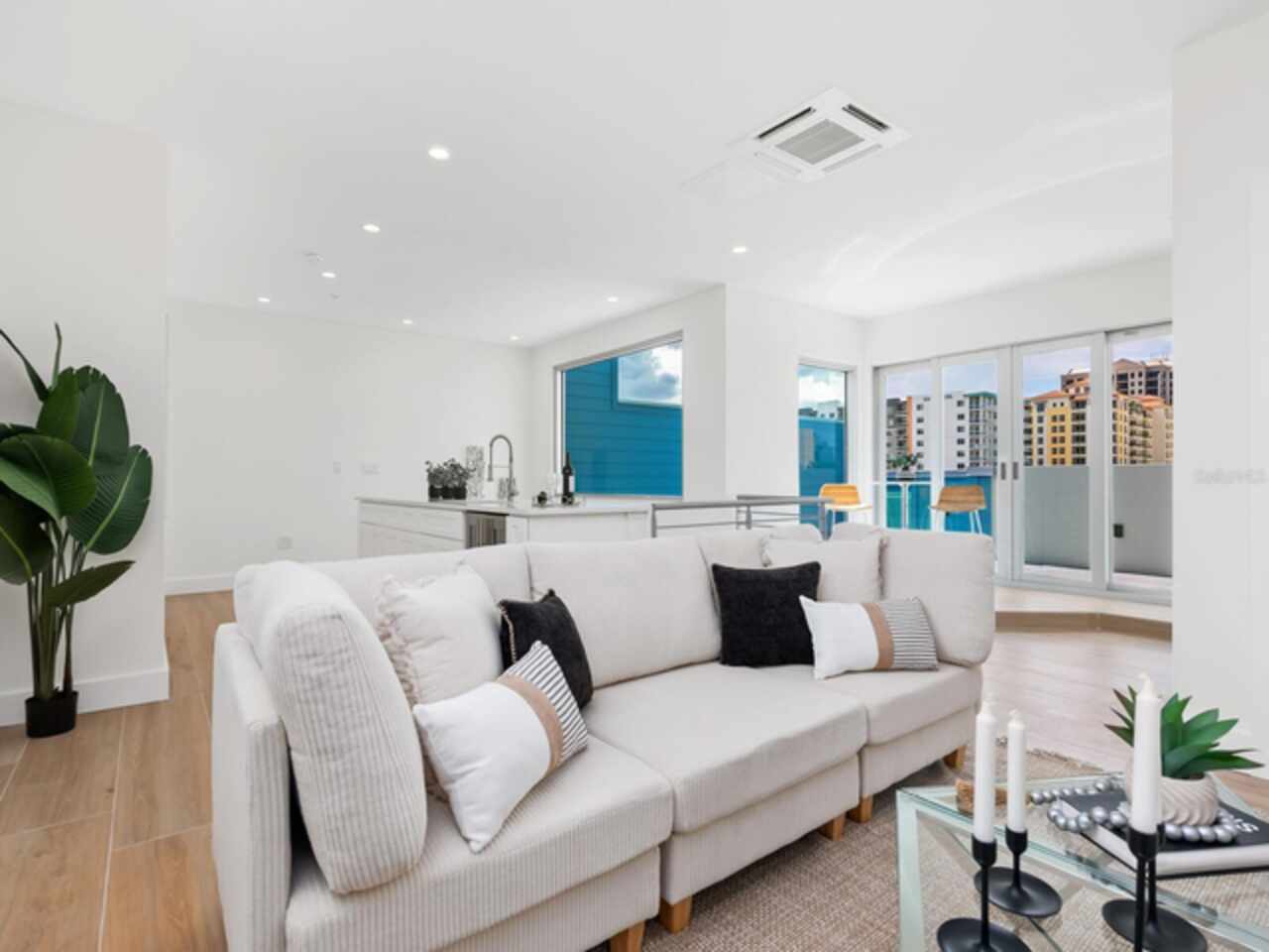 New construction, prime location and urban lifestyle. In Sarasota’s historic Rosemary District, just two blocks from The Bay Sarasota’s 53-acre waterfront park and Marina Jack - 5-10 minutes to downtown Main Street’s culinary delights, boutiques, Starbucks, Whole Foods and Saturday Farmers Market, arts and culture. Ride the free Bayrunner Trolley along Main Street to St. Armands Circle and Lido Beach. No car needed for your new urban lifestyle! Community and architecture, boutique six-unit condominium building with designer aqua blue exterior. Contemporary architecture with solid construction, impact rated windows and sustainable design. Generous 1.5-car garage plus private terraces, gated ground-floor lobby, amenities such as elevator access, gym, rooftop terrace, and media/conference room. Reflects Sarasota’s urban infill philosophy, live luxuriously in an accessible environment. Loft unit highlights, 2, 325 square feet, three bedrooms, three baths plus entertainment room with wet bar and wine cooler, and huge rooftop terrace for city views and stargazing! With 20-foot ceilings, floating staircase, floor-to-ceiling glass. Five private patios. Private elevator, high-end finishes and huge entertaining kitchen with all wood cabinetry, welcoming island, and dry bar including Bosch & Frigidaire stainless steel appliances and convection wall oven. Garden unit also available, and highlights are 1, 468 square feet, three bedrooms, two baths and Zen courtyard with 27-by-15-foot private garden and patio. Soaring 14-foot ceilings, floor-to-ceiling windows and designer finishes. Oversized island kitchen, solid wood cabinetry, pantry, quartz countertops, and stainless steel Bosch and Frigidaire Gallery appliances, including convection oven. All properties have private 1.5-car garage with direct entry off alley north of the building. Designed for modern living. Ideal for millennials and empty nesters who value design, accessibility, culture and coastal living. Exceptional investment in Sarasota’s thriving downtown renaissance. Lock and leave. Simply Sarasota. Vista Urbana is your stylish gateway to a sophisticated lifestyle choice of the best of Sarasota. ***Also available with the furnished package as shown.***