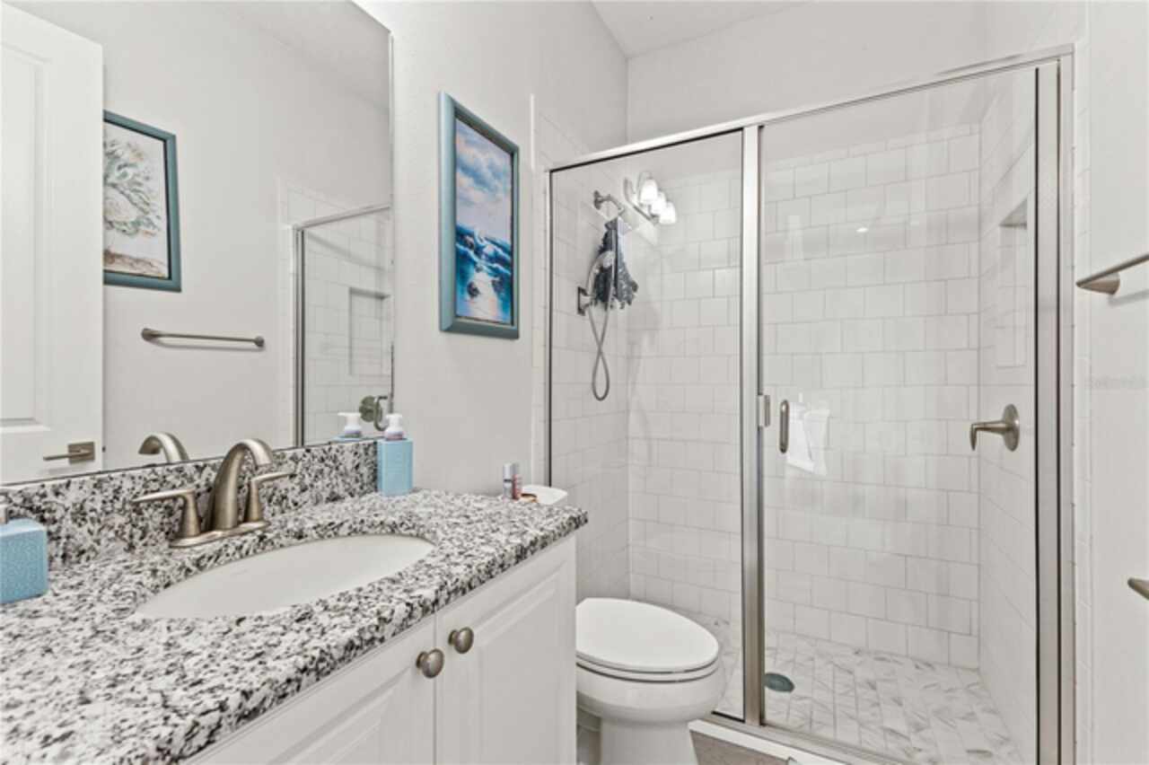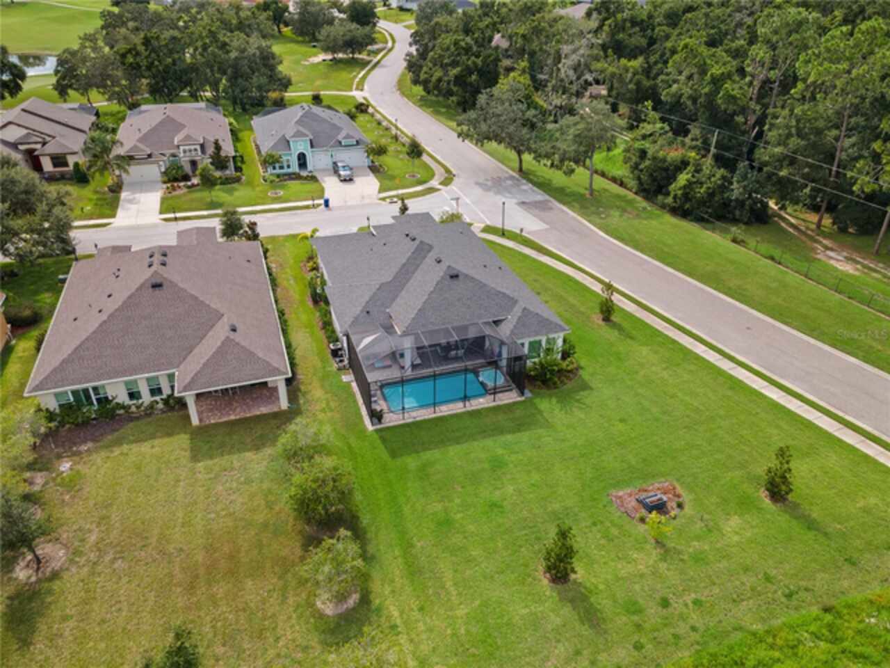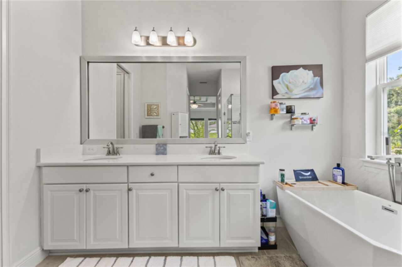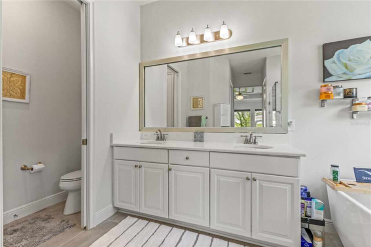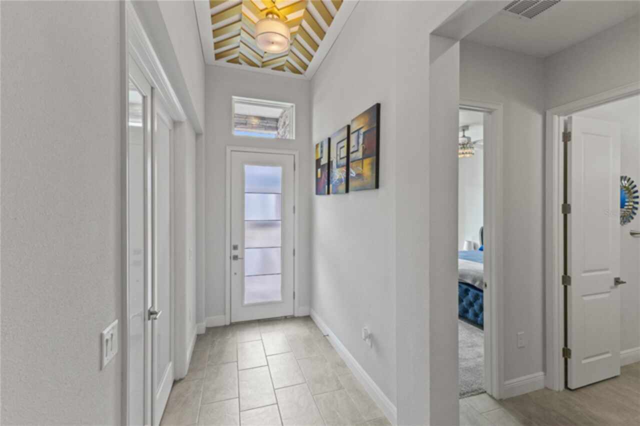 Welcome to 13444 Trailing Moss, a stately residence on a large 1/3-acre corner lot in the prestigious Lake Jovita Golf & Country Club, an upscale, guard-gated community. Known for its scenic rolling hills, sparkling lakes, and resort-style amenities, Lake Jovita features two championship golf courses, tennis and pickleball courts, a fitness center, a community pool, a new dog park, and a beautiful park that sits right in your backyard. The South Course has even hosted USGA U.S. Open local qualifying events, adding to the community’s prestige. With over 3, 000 square feet of living space on a single-story floor plan, this home was designed for both elegance and functionality. The upgraded layout includes three spacious bedrooms, three full bathrooms, and an expanded bonus room with stylish barn doors, perfect for entertaining, a media lounge with surround sound, or even a private retreat. Plus, there’s an additional home office at the front of the home with upgraded hardwood floors, ideal for those working remotely or needing a dedicated workspace. The split-bedroom layout offers exceptional privacy, and the master suite is a true retreat with a spa-like ensuite featuring a free-standing soaking tub, dual vanities, and a massive walk-in closet. At the heart of the home lies the chef’s kitchen, designed to impress both everyday cooks and gourmet entertainers. Outfitted with 42-inch soft-close cabinets and custom uppers, this kitchen offers ample storage and timeless style. The elegant cabinetry is paired with sleek quartz countertops, a large center island with bar seating, and upgraded stainless steel appliances, making meal prep and hosting a delight. Thoughtful touches like a walk-in pantry and custom lighting add both convenience and character. Soaring 12-foot ceilings in the common areas, paired with 10-foot ceilings in the bedrooms and 8-foot doors throughout, create an open, airy atmosphere that enhances the home’s sense of space and luxury. The family room showcases a panoramic slider, allowing seamless indoor/outdoor living and perfect views of the backyard retreat. Step outside into your own private resort. In the expansive backyard, you’ll find a dreamy heated saltwater pool and spa, fully screened-in for year-round enjoyment. The outdoor cooking area is perfect for poolside dining, while the home’s unique location backing up to the park allows you to stroll straight from your backyard into the community’s green space. Additional highlights include exquisite trim work throughout, a three-car tandem garage with abundant storage, an electric vehicle charger, and a whole-home water softener for added comfort. Every detail has been thoughtfully curated to blend luxury, practicality, and timeless style. At 13444 Trailing Moss, you’ll enjoy the perfect balance of refined living and relaxed Florida charm, all in one of the Tampa Bay area’s most sought-after gated golf course communities.