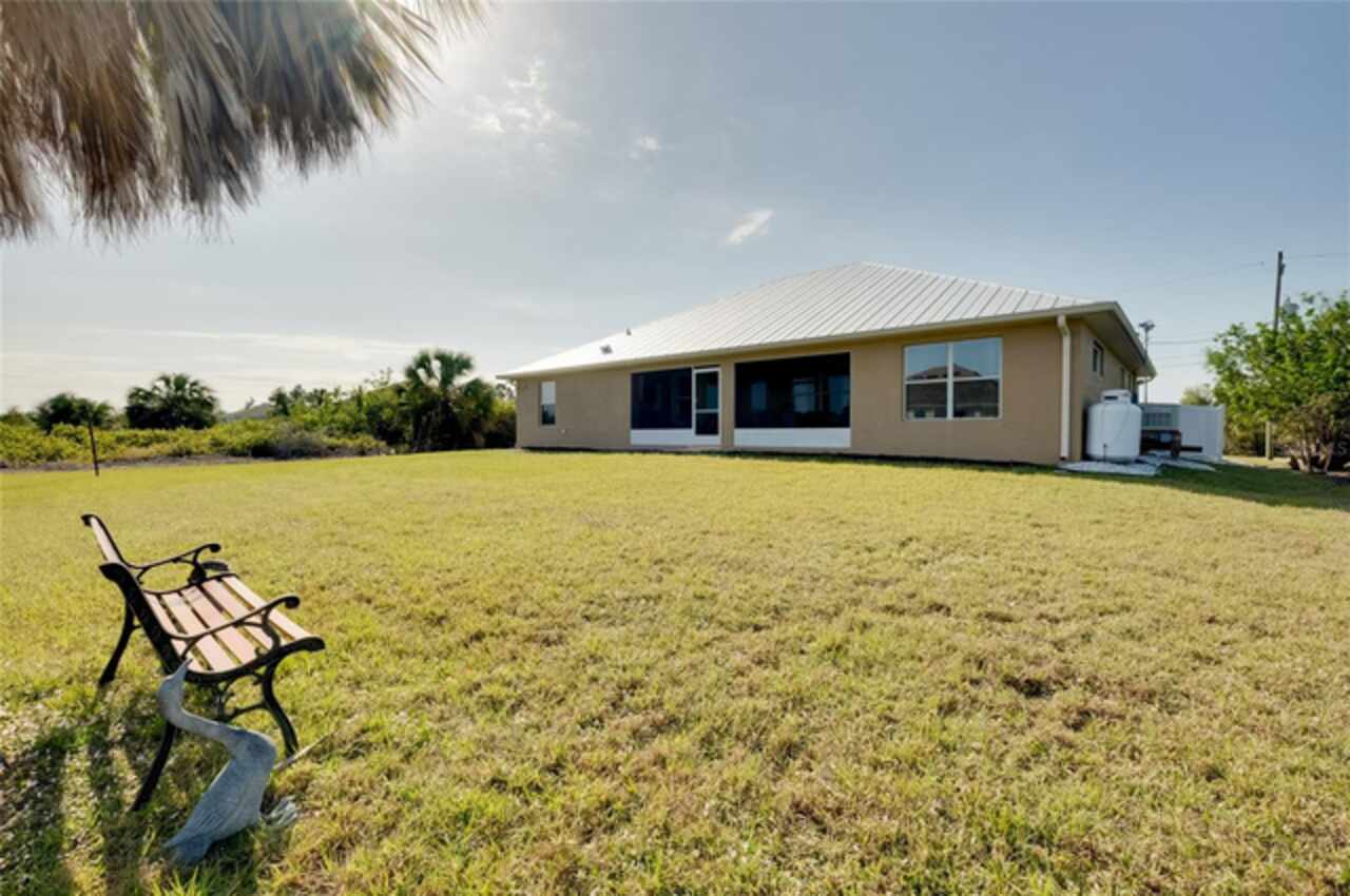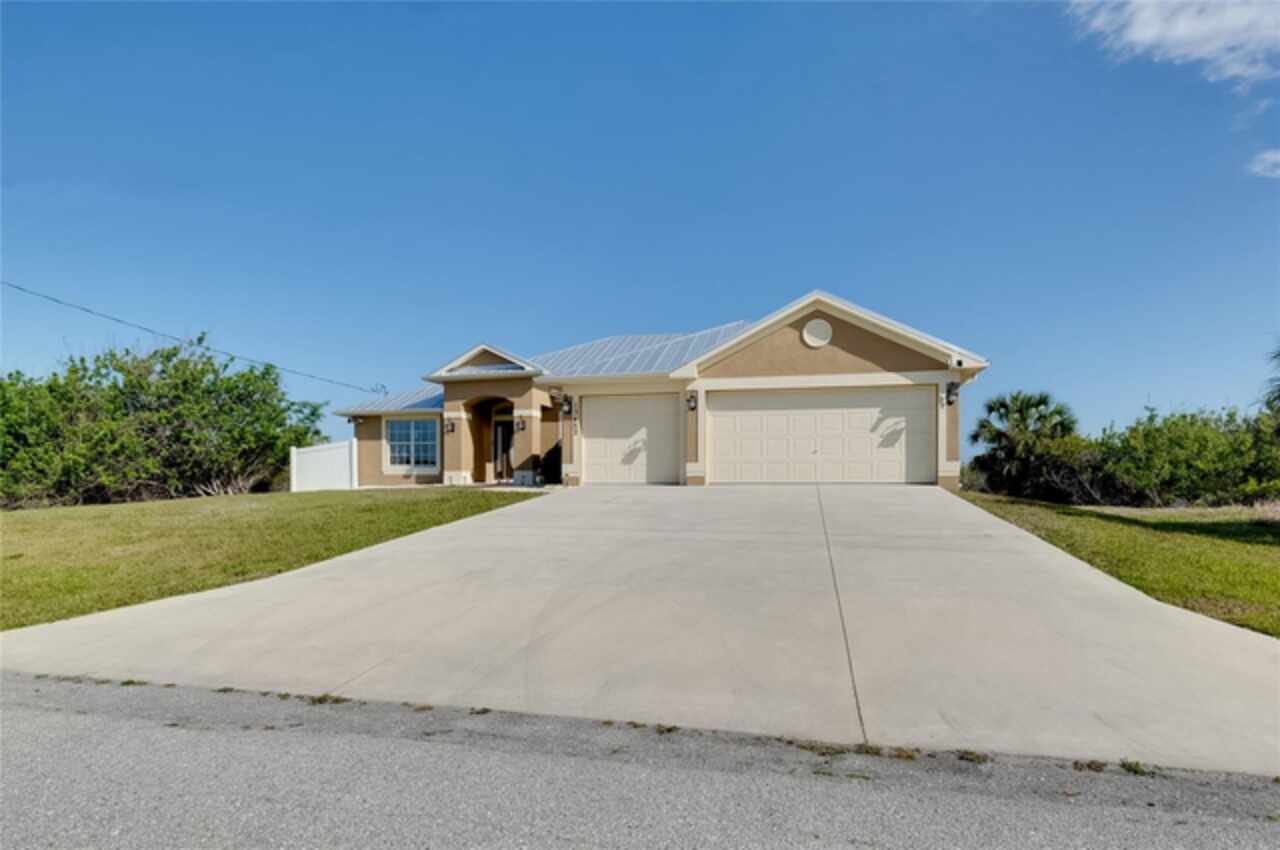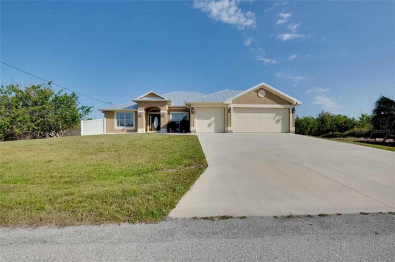 The seller is open to offering seller financing for a qualified buyer, provided the price is strong and includes a substantial down payment. Financing consideration is only available if the buyer intends to use the property as their primary residence. Located in a WATERFRONT COMMUNITY and definitely not a Spec Home! INCLUDES WHOLE HOME GENERATOR AND METAL ROOF! Welcome to this beautifully maintained 4-bedroom, 3-bathroom home with a spacious 2, 321 sq. ft. split floor plan and an OVERSIZED 3-CAR GARAGE. Nestled in the highly sought-after South Gulf Cove community, this home offers privacy, a backyard privacy easement, and plenty of ROOM TO BUILD A POOL. Upon entering through the elegant glass door, you are greeted by an open and inviting living space. The great room features a Halo LED nightlight, regular lighting, ceiling fans, and stylish plant shelving. A FLEX ROOM provides the perfect space for an additional bedroom, office, or playroom. The kitchen has upgraded STAINLESS STEEL APPLIANCES, custom pantry cabinetry, and ample storage. The master suite is a private retreat with a garden tub, dual sinks, and wood cabinetry. A custom cabinetry laundry room adds EXTRA STORAGE and convenience. TILE FLOORS THROUGHOUT, no carpet. Designed with energy efficiency in mind, the home boasts all LED lighting, a smart thermostat, and an INSTANT ON WATER HEATER, ensuring maximum efficiency and comfort. The home's exterior is just as impressive, featuring a new energy-efficient METAL ROOF, NEW GUTTERS, and UPGRADED INSULATION. FRESHLY PAINTED with exterior updates in 2020 and interior updates in 2023, the home offers a modern and well-maintained appearance. A SCREENED-IN BACK PORCH and a covered lanai provide the perfect outdoor relaxation and entertaining space. At the same time, the oversized backyard offers plenty of room to create your dream outdoor oasis. Why not build your own NEW pool instead of buying someone else's 20-year-old pool? The OVERSIZED 27-FOOT WIDE 3-CAR GARAGE IS AIR CONDITIONED and includes an insulated garage door. Custom storage solutions include extensive wire shelving, a large overhead storage area, and attic storage. Electrical features such as 120V and 220V outlets, extensive lighting zones, and a Wi-Fi-enabled weather station add to the garage's functionality and versatility. This home has advanced features, including a Cummins 13kW WHOLE-HOUSE STANDBY GENERATOR (Quiet Connect Series), a 100-amp automatic switch, and 250-gallon propane tanks. HURRICANE SHUTTERS provide additional peace of mind, while the NEW AC unit and ceiling fans installed in 2022 enhance comfort throughout the home. ZERO FLOOD CLAIMS or water intrusion during recent storms! Enjoy the ultimate Florida lifestyle in South Gulf Cove, where a NEARBY PUBLIC BOAT RAMP makes it easy to launch your boat. Get ready to explore the canal system that leads to the Myakka River, Charlotte Harbor, and the Gulf of America. South Gulf Cove is a truly special waterfront community. Discover excellent shopping, restaurants, world-class golf courses, Englewood, Manasota Key, Punta Gorda, Fishermen’s Village, and the Gulf beaches of Boca Grande. South Gulf Cove community residents enjoy coastal living with over 50 miles of navigable waterways, a marina and boat launch, a VOLUNTARY ASSOCIATION WITH CLUBHOUSE, parks, playgrounds, and sidewalks for biking and walking. Golf courses, fine dining, multiple airports, and pristine beaches make this an ideal place to call HOME.