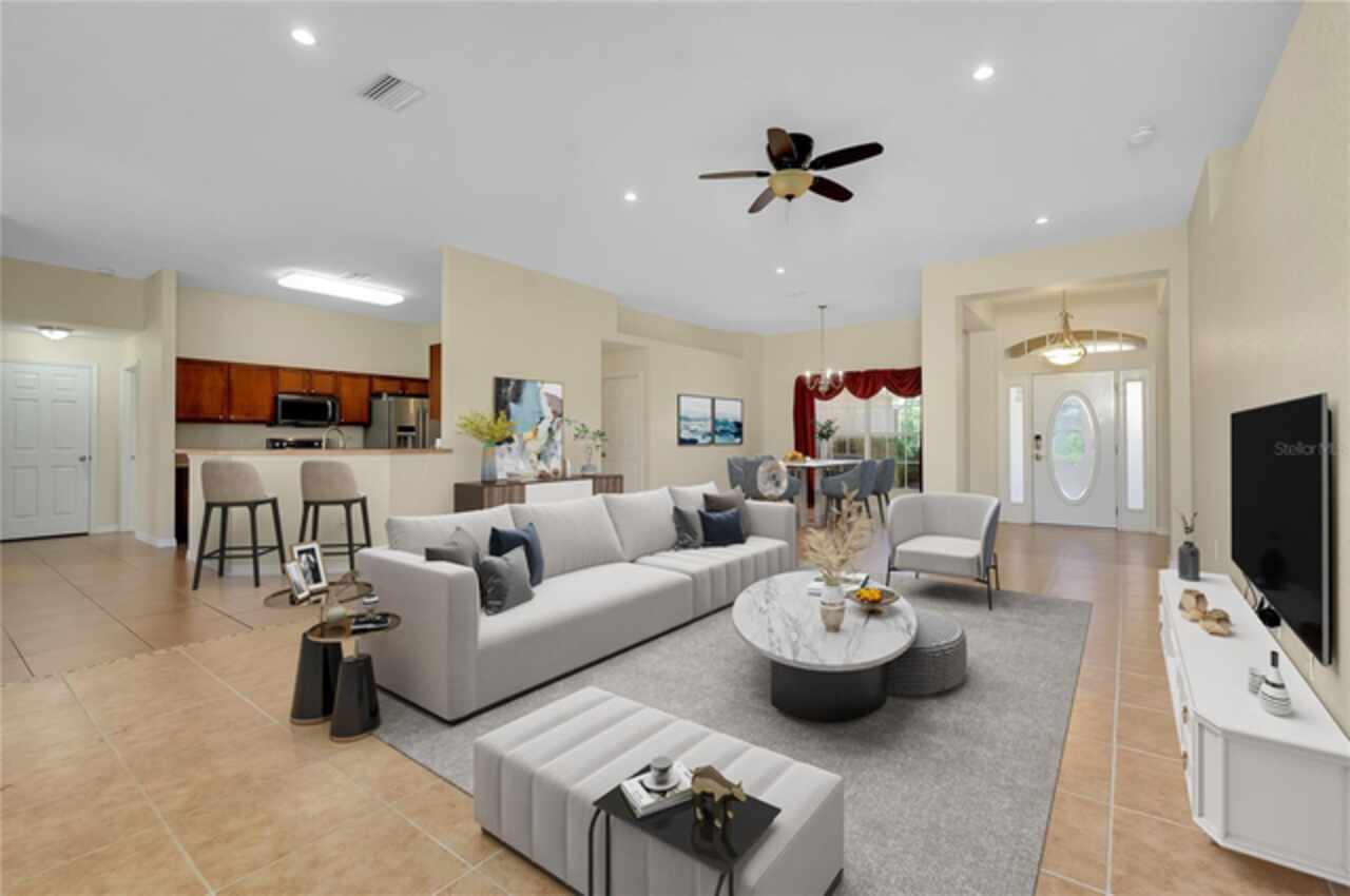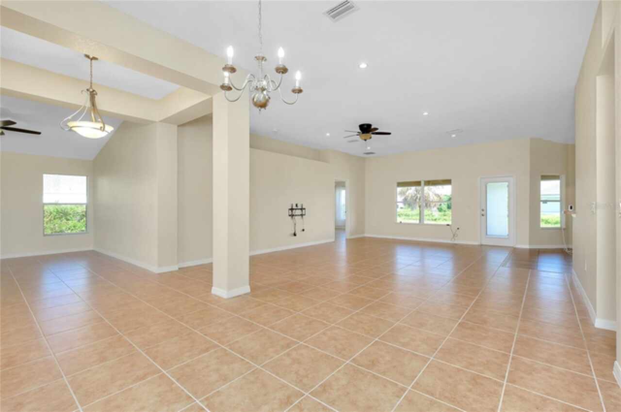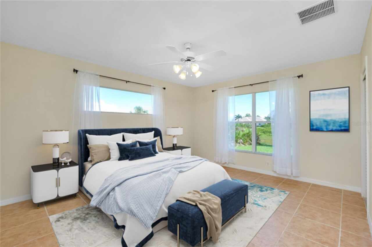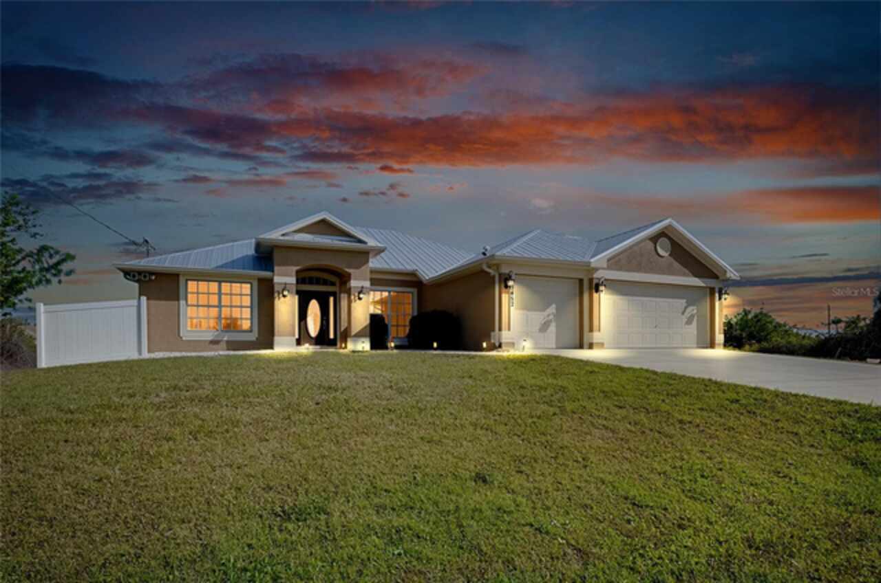 The seller is open to offering seller financing for a qualified buyer, provided the price is strong and includes a substantial down payment. Financing consideration is only available if the buyer intends to use the property as their primary residence. Located in a WATERFRONT COMMUNITY and definitely not a Spec Home! INCLUDES WHOLE HOME GENERATOR AND METAL ROOF! Welcome to this beautifully maintained 4-bedroom, 3-bathroom home with a spacious 2, 321 sq. ft. split floor plan and an OVERSIZED 3-CAR GARAGE. Nestled in the highly sought-after South Gulf Cove community, this home offers privacy, a backyard privacy easement, and plenty of ROOM TO BUILD A POOL. Upon entering through the elegant glass door, you are greeted by an open and inviting living space. The great room features a Halo LED nightlight, regular lighting, ceiling fans, and stylish plant shelving. A FLEX ROOM provides the perfect space for an additional bedroom, office, or playroom. The kitchen has upgraded STAINLESS STEEL APPLIANCES, custom pantry cabinetry, and ample storage. The master suite is a private retreat with a garden tub, dual sinks, and wood cabinetry. A custom cabinetry laundry room adds EXTRA STORAGE and convenience. TILE FLOORS THROUGHOUT, no carpet. Designed with energy efficiency in mind, the home boasts all LED lighting, a smart thermostat, and an INSTANT ON WATER HEATER, ensuring maximum efficiency and comfort. The home's exterior is just as impressive, featuring a new energy-efficient METAL ROOF, NEW GUTTERS, and UPGRADED INSULATION. FRESHLY PAINTED with exterior updates in 2020 and interior updates in 2023, the home offers a modern and well-maintained appearance. A SCREENED-IN BACK PORCH and a covered lanai provide the perfect outdoor relaxation and entertaining space. At the same time, the oversized backyard offers plenty of room to create your dream outdoor oasis. Why not build your own NEW pool instead of buying someone else's 20-year-old pool? The OVERSIZED 27-FOOT WIDE 3-CAR GARAGE IS AIR CONDITIONED and includes an insulated garage door. Custom storage solutions include extensive wire shelving, a large overhead storage area, and attic storage. Electrical features such as 120V and 220V outlets, extensive lighting zones, and a Wi-Fi-enabled weather station add to the garage's functionality and versatility. This home has advanced features, including a Cummins 13kW WHOLE-HOUSE STANDBY GENERATOR (Quiet Connect Series), a 100-amp automatic switch, and 250-gallon propane tanks. HURRICANE SHUTTERS provide additional peace of mind, while the NEW AC unit and ceiling fans installed in 2022 enhance comfort throughout the home. ZERO FLOOD CLAIMS or water intrusion during recent storms! Enjoy the ultimate Florida lifestyle in South Gulf Cove, where a NEARBY PUBLIC BOAT RAMP makes it easy to launch your boat. Get ready to explore the canal system that leads to the Myakka River, Charlotte Harbor, and the Gulf of America. South Gulf Cove is a truly special waterfront community. Discover excellent shopping, restaurants, world-class golf courses, Englewood, Manasota Key, Punta Gorda, Fishermen’s Village, and the Gulf beaches of Boca Grande. South Gulf Cove community residents enjoy coastal living with over 50 miles of navigable waterways, a marina and boat launch, a VOLUNTARY ASSOCIATION WITH CLUBHOUSE, parks, playgrounds, and sidewalks for biking and walking. Golf courses, fine dining, multiple airports, and pristine beaches make this an ideal place to call HOME.