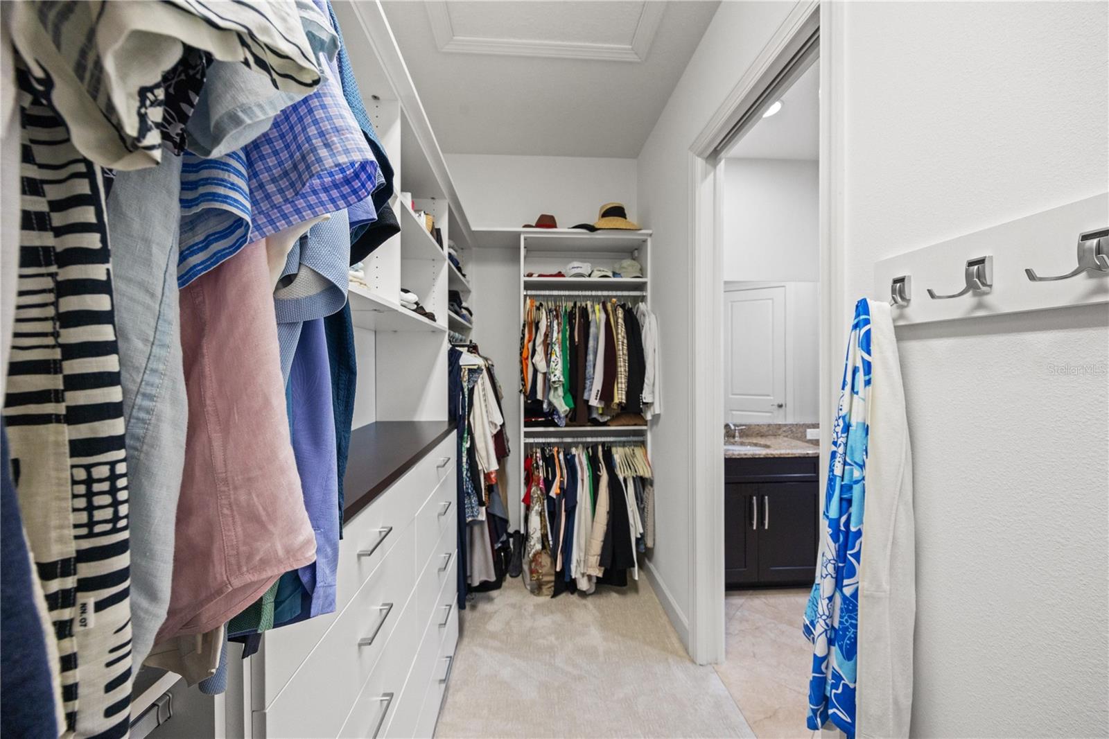 Ceiling Fans(s), Crown Molding, High Ceilings, Kitchen/Family Room Combo, Open Floorplan, Primary Bedroom Main Floor, Solid Surface Counters, Split Bedroom, Thermostat, Tray Ceiling(s), Walk-In Closet(s), Window Treatments