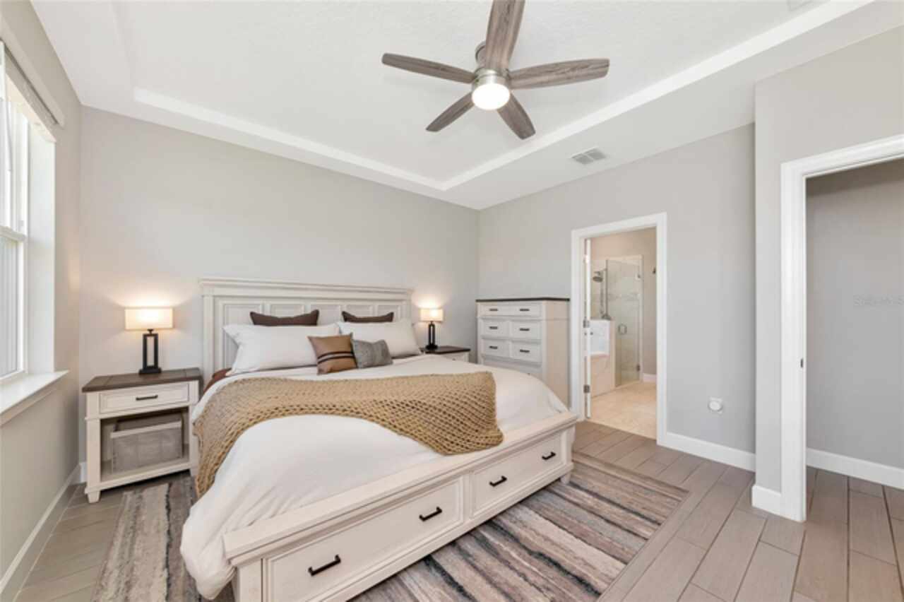 Ceiling Fans(s), Coffered Ceiling(s), Open Floorplan, Primary Bedroom Main Floor, Thermostat, Walk-In Closet(s), Window Treatments