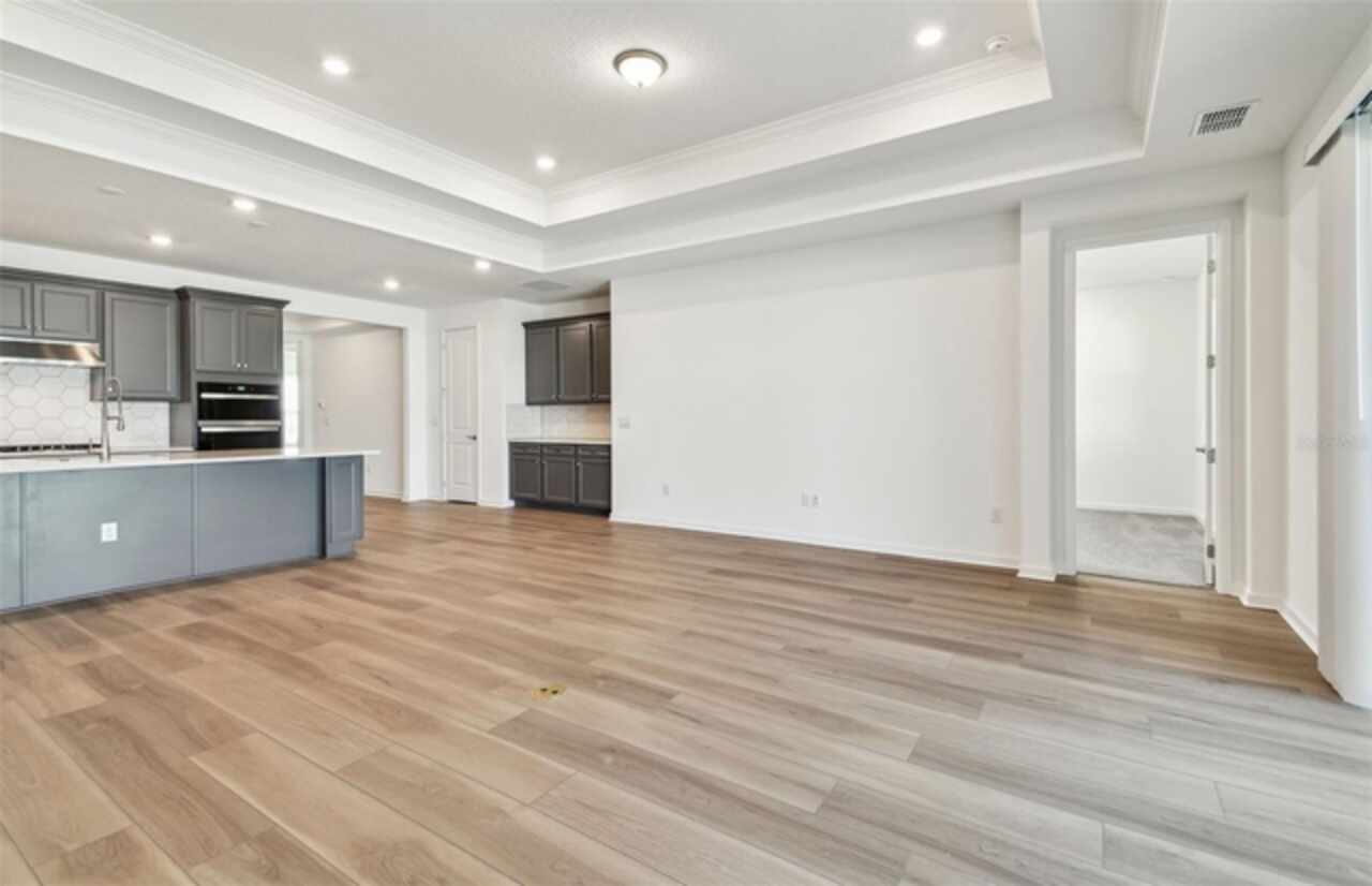 One or more photo(s) has been virtually staged. Move In Ready Available NOW!! Pulte Homes is selling in Spencer Glen in Riverview, FL! These new homes offer an unparalleled living experience for families seeking the perfect blend of modern comfort and Florida's natural beauty. This new community will feature a resort-style pool with an open cabana, a clubhouse, sports courts, dog park, playground and much more! With its prime location within one mile from the I-75/Big Bend interchange and HWY 301, Spencer Glen provides easy access to commuting corridors, entertainment, and shopping. This new consumer-inspired home design, the Mahogany Grand, has all the space you need with the designer finishes you’ll love. The gourmet kitchen showcases a large center, a stainless steel 60/40 sink, and an upgraded faucet, stylish cabinets, 3cm quartz countertops with tiled backsplash, a walk-in pantry, and Whirlpool stainless steel appliances including a built-in oven and microwave, dishwasher, and stovetop with range hood. The owner’s bath has upgraded, stylish cabinets, quartz countertops, a walk-in shower with niche, a linen closet, dual sinks, and private commode. The main living areas have luxury vinyl plank flooring. The baths and laundry room have 18”x 18” tile, and the bedrooms and loft have stain-resistant carpet. This home makes great use of space with a 1st-floor Owner’s suite with a large Owner’s retreat area and spacious walk-in closet, a 2nd story with a loft, and a 4th bedroom with a walk-in closet and full bath. There’s also storage under the stairs, a convenient laundry room with cabinets and counterspace, pocket sliding glass doors that lead to an extended covered lanai, and a 3-car garage, with a POOL INCLUDED. Additional features and upgrades include LED downlights in the gathering room, owner’s suite, and loft, flat panel tv prep, floor outlet, EV charger in the garage, upgraded lighting and hardware, faux wood blinds throughout and a Smart Home technology package with a video doorbell.