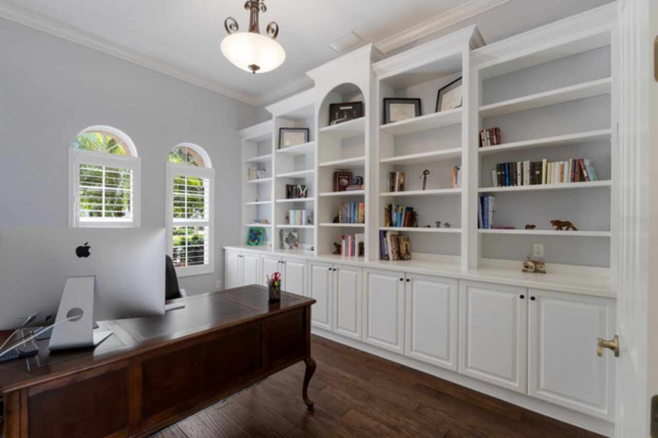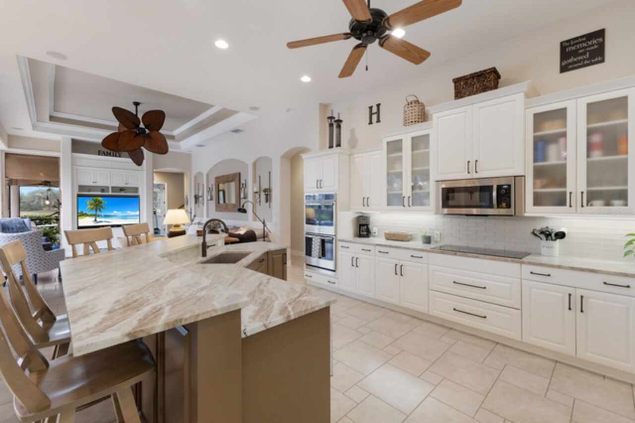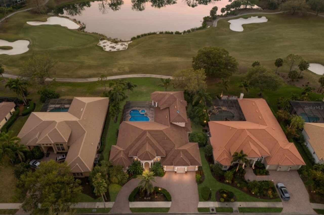 This stunning custom-built Peregrine home is perfectly positioned on one of the most sought-after homesites in Lakewood Ranch Golf & CC! Located on the Arnold Palmer designed Cypress Links #7, it offers breathtaking golf & water views. From the moment you arrive, the impressive curb appeal, circular drive & lush landscape set the stage for the elegance that awaits. Beautiful double glass doors open into a bright & welcoming foyer guiding you to the main living spaces. To the right, you'll find the formal dining area -perfect for hosting elegant dinners & to the left, a private office with French doors, hardwood floors & custom built-ins. Designed for both comfort & sophistication, the living room features a cozy fireplace, tray ceilings & a wall of sliders that draw your eye to the picturesque outdoors. A butler’s pantry with ample storage seamlessly connects the dining room to the newly remodeled kitchen, offering both style & functionality. It features an abundance of solid wood cabinetry, new backsplash, stainless appliances, granite countertops, double ovens, a breakfast bar & a spacious walk-in pantry. It also includes a charming eat-in area with a large aquarium window, offering the perfect spot to enjoy a morning coffee. Off the kitchen, the great room is an inviting space for family gatherings with built-in entertainment wall, tile floors, crown moldings, tray ceilings, architectural niches & sliders that bring the tropical outdoors in! At the rear of the home, a generous sized bonus room (currently used as a home gym) provides endless possibilities & is located next to a convenient pool bath. The luxurious primary suite offers a private retreat with a serene sitting area & windows that frame the amazing views. The recently remodeled ensuite bath is a true spa-like escape, featuring double quartz vanities, a huge walk-in shower & an elegant soaking tub. There are TWO walk-in closets with extensive built-in cabinetry providing ample storage, while glass block windows fill the space with natural light. The home’s 2nd & 3rd bedrooms share a beautifully remodeled Jack-and-Jill bath with dual quartz vanities, seamless glass shower doors & new fixtures. Both bedrooms exude charm with hand-scraped wood floors, built-in window seats & walk-in closets with custom storage solutions. A beautiful hardwood staircase leads to an incredible second-level bonus suite, ideal for an in-law arrangement or private guest retreat. This space features a spacious living area with blackout blinds, a wet bar with fridge, a 4th bedroom & a full bath! A large 2nd floor screened-in balcony offers a peaceful place to sip a glass of wine while overlooking the tranquil natural surroundings. Designed for Florida’s coveted indoor-outdoor lifestyle, this home boasts an expansive outdoor space with 2 covered areas adorned with cypress ceilings, perfect for relaxing or dining al fresco. A stunning heated pool with sun deck & spa create the ultimate backyard oasis. Bonus of a 3-car garage offering ample storage & epoxy flooring. LWR Golf & CC offers Social, Athletic & Golf memberships which are all OPTIONAL. These include FOUR 18-hole championship courses, a state-of-the-art fitness center, a junior Olympic pool, tennis, pickleball, dining, social activities year-round & MORE! Enjoy close proximity to endless shopping, incredible restaurants, vibrant arts, easy access to I-75, top-notch healthcare, A-rated schools & our award-winning area beaches!