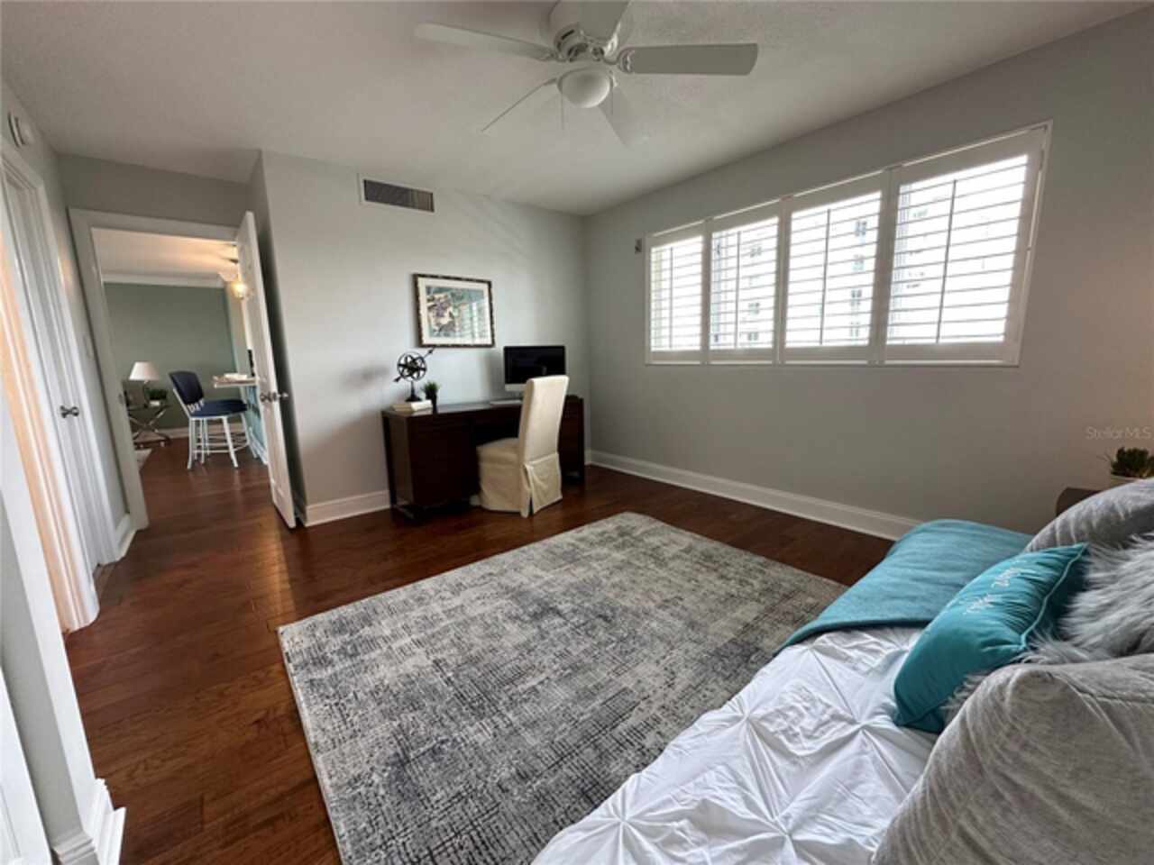 Experience breathtaking bayfront living in this beautifully updated 2-bedroom, 2-bathroom condo located in iconic Brightwaters Tower on Snell Isle. Offering 1, 200 square feet of living space, this residence includes a covered outdoor patio with panoramic, unobstructed views of Tampa Bay, where you can enjoy stunning sunrises, sunsets, and even views of downtown Tampa and St. Petersburg. Inside, the unit features an updated kitchen and bathrooms, walk-in closet, washer/dryer hookup, and storm-rated sliding glass doors that open to the patio. Hurricane shutters provide additional security and peace of mind when traveling or locking up seasonally. Brightwaters Tower is undergoing a significant beautification renovation, including a redesigned lobby, modernized community room and updated pool deck. The property also boasts repaved parking, added guest spaces, and fresh exterior paint, creating a resort-like atmosphere with a refined coastal feel. This condo includes an assigned parking space for convenience. Located in one of the most coveted neighborhoods in Tampa Bay, Brightwaters Tower is a boater’s paradise and just a short bike ride from vibrant downtown St. Petersburg, with its restaurants, galleries, and waterfront parks. And when you're ready for sand and surf, the Gulf beaches are only minutes away. Whether you're looking for a full-time waterfront home or a luxurious seasonal getaway, this is your chance to own a slice of paradise in one of Snell Isle’s most iconic buildings. Schedule your private showing today!