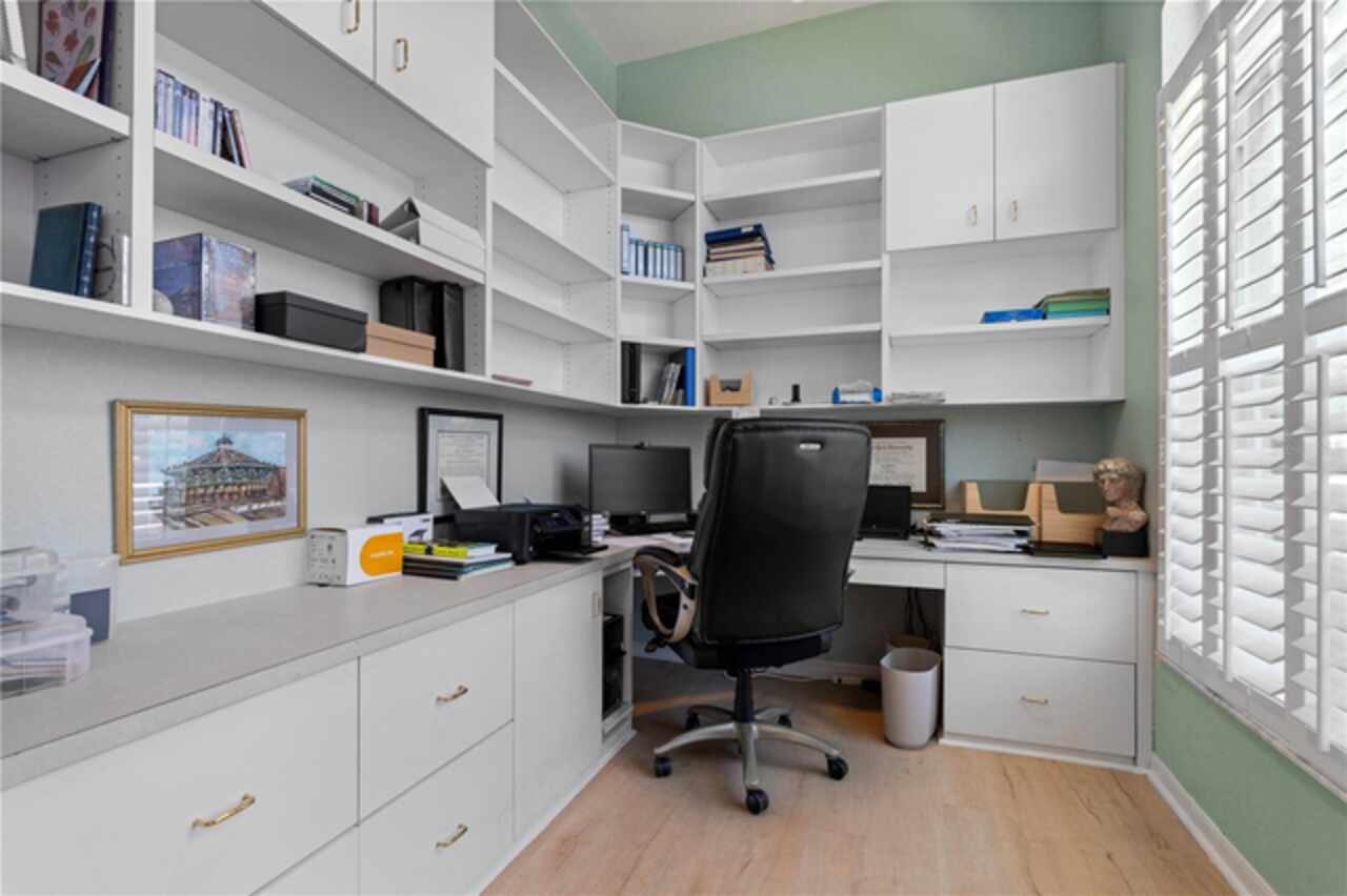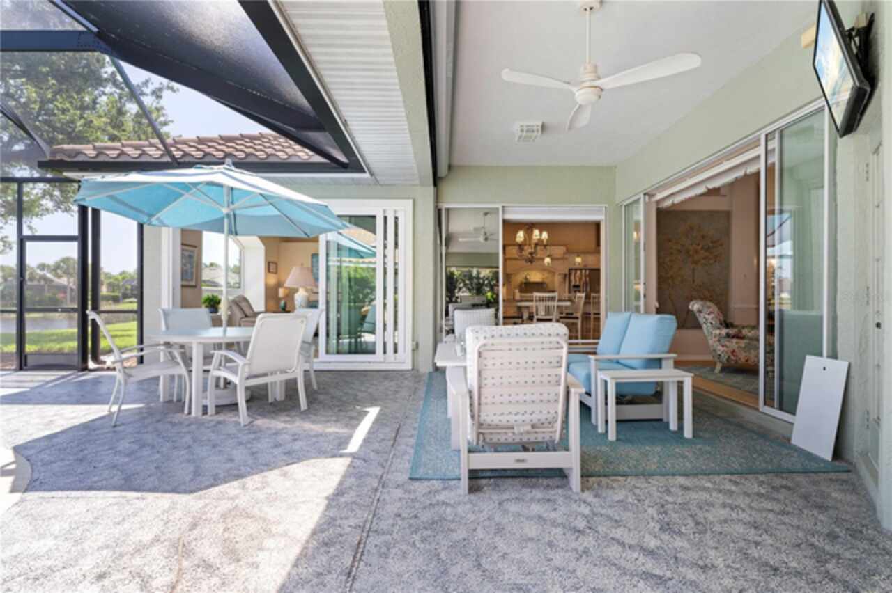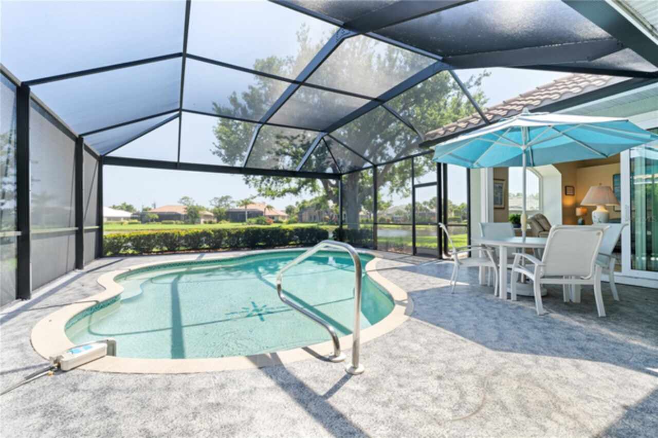 UPDATED LAKEFRONT HOME W/POOL, DOUBLE OFFICE & PANORAMIC LAKE VIEWS IN RIVERWOOD - Beautifully maintained 3 bed/2 bath home with two offices located in the gated, resort-style community of Riverwood. Overlooking Long Lake, the home offers panoramic water views from nearly every room and seamless indoor-outdoor living with sliding doors that open from the formal living room, family room, and kitchen directly out to the screened lanai. Layout includes a formal living and dining room, double office (one w/built-in desk), a large central kitchen as well as a spacious & comfortable family room. Architectural details include travertine & wood-look luxury vinyl plank flooring in the main living areas, high ceilings, crown molding, arched transom windows & disappearing sliding glass doors. Plantation shutters and Hunter Douglas window treatments add finishing touches throughout. Home has an abundance of natural light thanks to a large picture window in the family room & walls of sliding glass doors in the living room & family room. The kitchen will inspire even the most reluctant chef w/ample cabinet & counter space including center island w/breakfast bar, granite counters, stainless steel appliances (w/induction range), a large closet pantry, under cabinet lighting & adjacent breakfast area. The master suite features tray ceilings, two walk-in closets, a spa-like master bath w/dual sinks, a gorgeous free-standing bath & glass-enclosed shower plus direct access to the lanai. Split bedroom layout boasts two additional guest bedrooms with high ceilings and a second full bath. Outside, the lanai surrounds the in-ground heated pool & features ample space for outdoor entertaining. Relax under the covered areas or lounge poolside to soak up some Florida sun. Additional upgrades include new roof (2021), hurricane-impact windows, new pool cage, paver driveway, Jennair induction range (2022), dishwasher (2023), AC systems for house (2018) and garage (2019), water heater (2022), and new washer (2024). Enjoy resort-style living in the gated community of Riverwood. The community offers an impressive range of amenities including a clubhouse, fitness center with exercise classes, oversized pool w/lap lanes and separate spa, six tennis courts, pickleball and bocce courts, dog park, and numerous social activities. Optional memberships to Riverwood Golf Club and Riverwood Beach Club are also available. Home is move-in ready and perfectly maintained. This lakefront home offers an exceptional opportunity to enjoy the best of Florida living w/quick access to all of the area amenities including shopping, restaurants & nearby beaches. Schedule your private tour today.