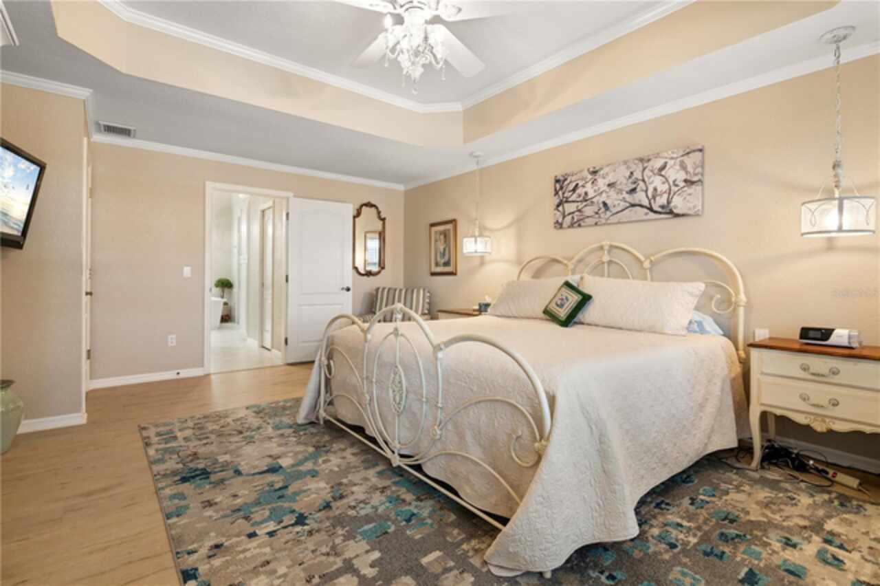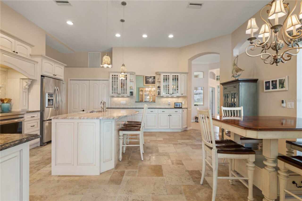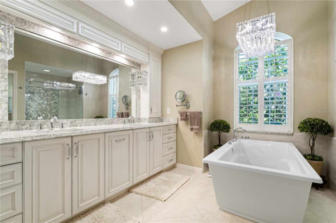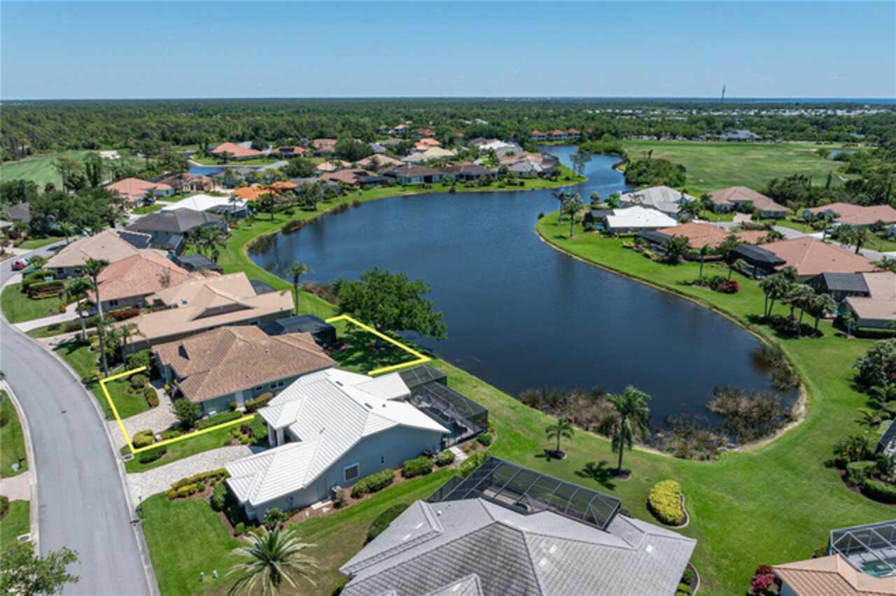 UPDATED LAKEFRONT HOME W/POOL, DOUBLE OFFICE & PANORAMIC LAKE VIEWS IN RIVERWOOD - Beautifully maintained 3 bed/2 bath home with two offices located in the gated, resort-style community of Riverwood. Overlooking Long Lake, the home offers panoramic water views from nearly every room and seamless indoor-outdoor living with sliding doors that open from the formal living room, family room, and kitchen directly out to the screened lanai. Layout includes a formal living and dining room, double office (one w/built-in desk), a large central kitchen as well as a spacious & comfortable family room. Architectural details include travertine & wood-look luxury vinyl plank flooring in the main living areas, high ceilings, crown molding, arched transom windows & disappearing sliding glass doors. Plantation shutters and Hunter Douglas window treatments add finishing touches throughout. Home has an abundance of natural light thanks to a large picture window in the family room & walls of sliding glass doors in the living room & family room. The kitchen will inspire even the most reluctant chef w/ample cabinet & counter space including center island w/breakfast bar, granite counters, stainless steel appliances (w/induction range), a large closet pantry, under cabinet lighting & adjacent breakfast area. The master suite features tray ceilings, two walk-in closets, a spa-like master bath w/dual sinks, a gorgeous free-standing bath & glass-enclosed shower plus direct access to the lanai. Split bedroom layout boasts two additional guest bedrooms with high ceilings and a second full bath. Outside, the lanai surrounds the in-ground heated pool & features ample space for outdoor entertaining. Relax under the covered areas or lounge poolside to soak up some Florida sun. Additional upgrades include new roof (2021), hurricane-impact windows, new pool cage, paver driveway, Jennair induction range (2022), dishwasher (2023), AC systems for house (2018) and garage (2019), water heater (2022), and new washer (2024). Enjoy resort-style living in the gated community of Riverwood. The community offers an impressive range of amenities including a clubhouse, fitness center with exercise classes, oversized pool w/lap lanes and separate spa, six tennis courts, pickleball and bocce courts, dog park, and numerous social activities. Optional memberships to Riverwood Golf Club and Riverwood Beach Club are also available. Home is move-in ready and perfectly maintained. This lakefront home offers an exceptional opportunity to enjoy the best of Florida living w/quick access to all of the area amenities including shopping, restaurants & nearby beaches. Schedule your private tour today.