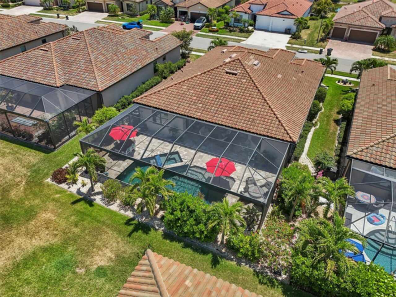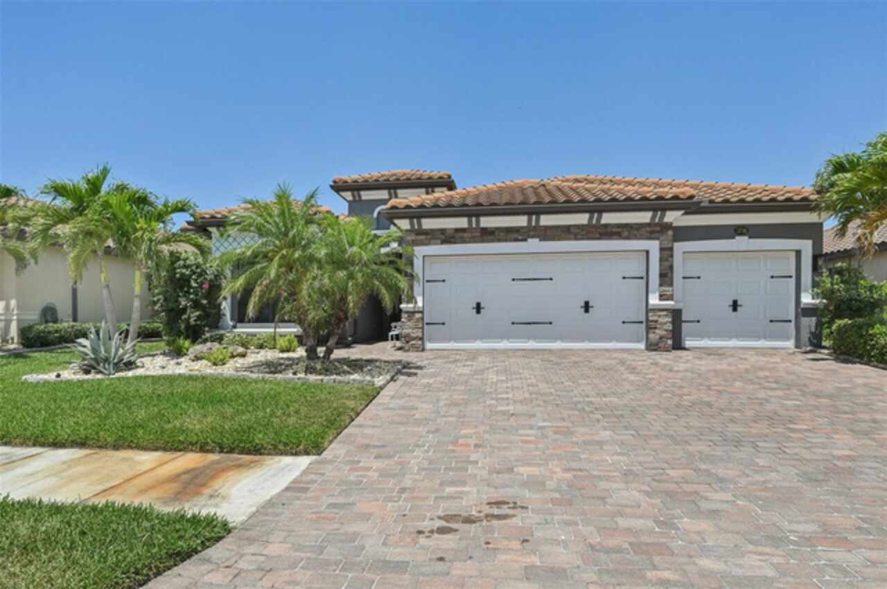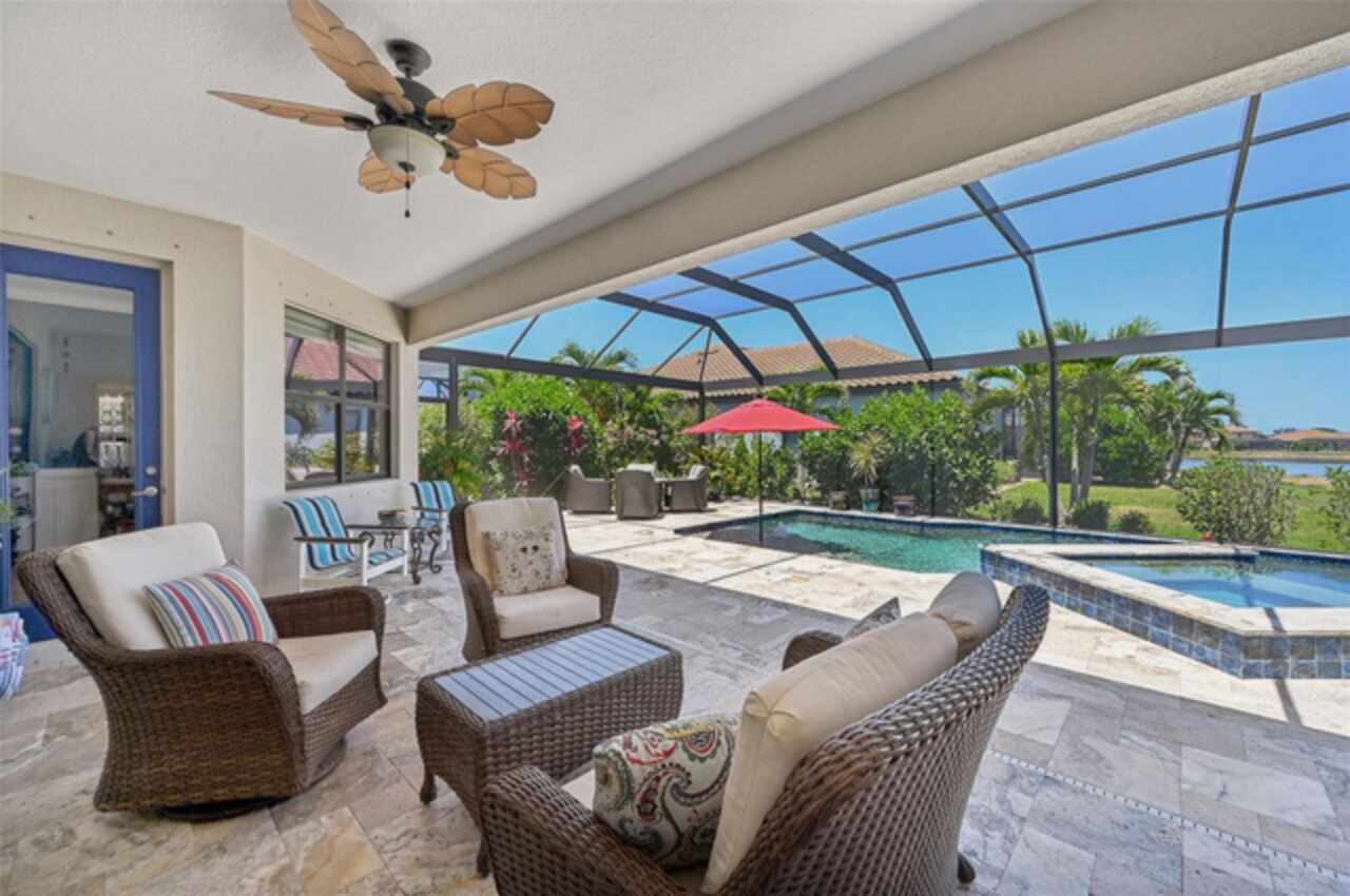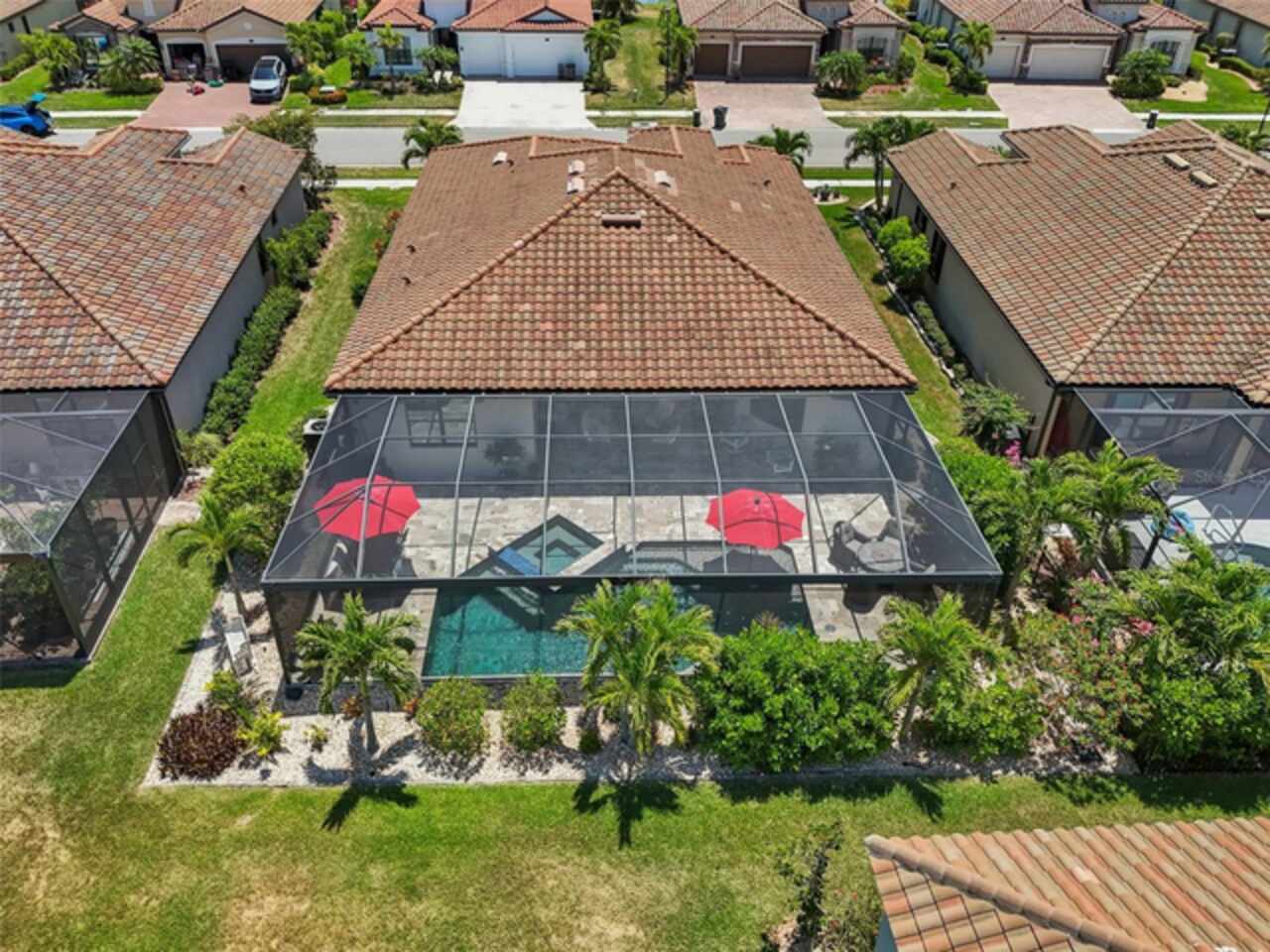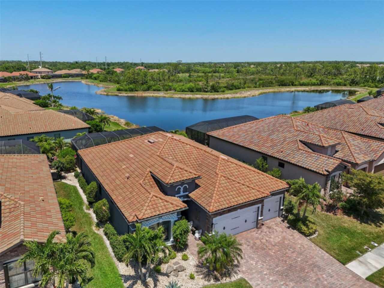 Under contract-accepting backup offers. Price Reduction! Back on the market! Financing fell through just before Closing! Home is now vacant and ready for immediate occupancy. The amazing water views, custom saltwater pool & spa and the extended lanai make this 2018 built 4 BR, 2 BA, 3-car garage home an entertainer's paradise. Located in the gated, maintenance-free resort style community "Gran Paradiso at Wellen Park" this gorgeous property has recently been upgraded with new granite countertops in the kitchen, including a counter height breakfast bar, subway backsplash, brand-new luxury appliances (LG French Door Refrigerator/Freezer with double icemaker, LG double oven & Bosch dishwasher) and fresh paint inside and out. Be prepared to be impressed by the open floor plan, tile on the diagonal, crown molding, wainscoating, custom lighting & tray ceilings. There is even a built-in electrical fireplace in your Dining Room, complete with an antique mantel. Your Primary Bedroom has newer high-end designer carpeting and a spacious walk-in closet with customized shelving. The En Suite Primary Bath features double sinks, granite counter tops, a walk-in shower and a garden tub. Your guests will love the privacy of the split floor plan with 2 guest bedrooms and a shared bath and a third full bedroom that could also be used as a home office or den. All guest bedroom closets have been customized with additional shelving. Your outdoor area is a tropical dream with an amazing saltwater pool and infinity-edge spa, offering additional massage jets. At night, you will enjoy the multi-colored pool lights and the private setting. The entire extended lanai has gorgeous travertine flooring and your pool cage maximizes the beautiful lake & preserve views with its enlarged view screens. Custom landscaping, brick curbing in front and back, as well as whole house gutters complete this spectacular residence. Gran Paradiso offers a beach entry resort pool, Tuscan-style Clubhouse with gathering room, game rooms & library, state-of-the-art fitness center, tennis courts, pickle ball, steam rooms and saunas and a myriad of activities for its residents, organized by a full-time Lifestyle Director. Wellen Park is one of the most vibrant master-planned communities in the country and located just 10 minutes from the magnificent Gulf of America beaches and in close proximity to shopping, restaurants and the new Atlanta Braves Spring Training stadium. Imagine living in this gorgeous setting every day! Leave the cold Northern winters behind and enjoy the life you deserve!