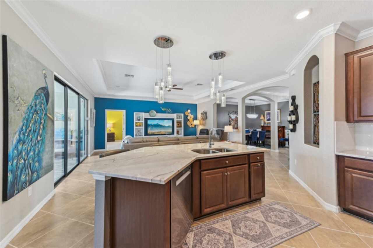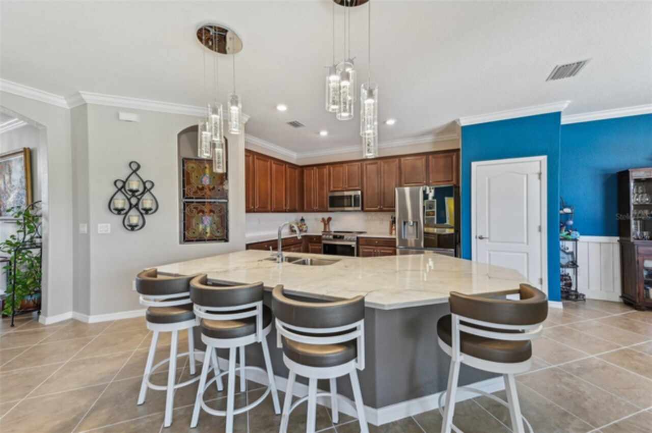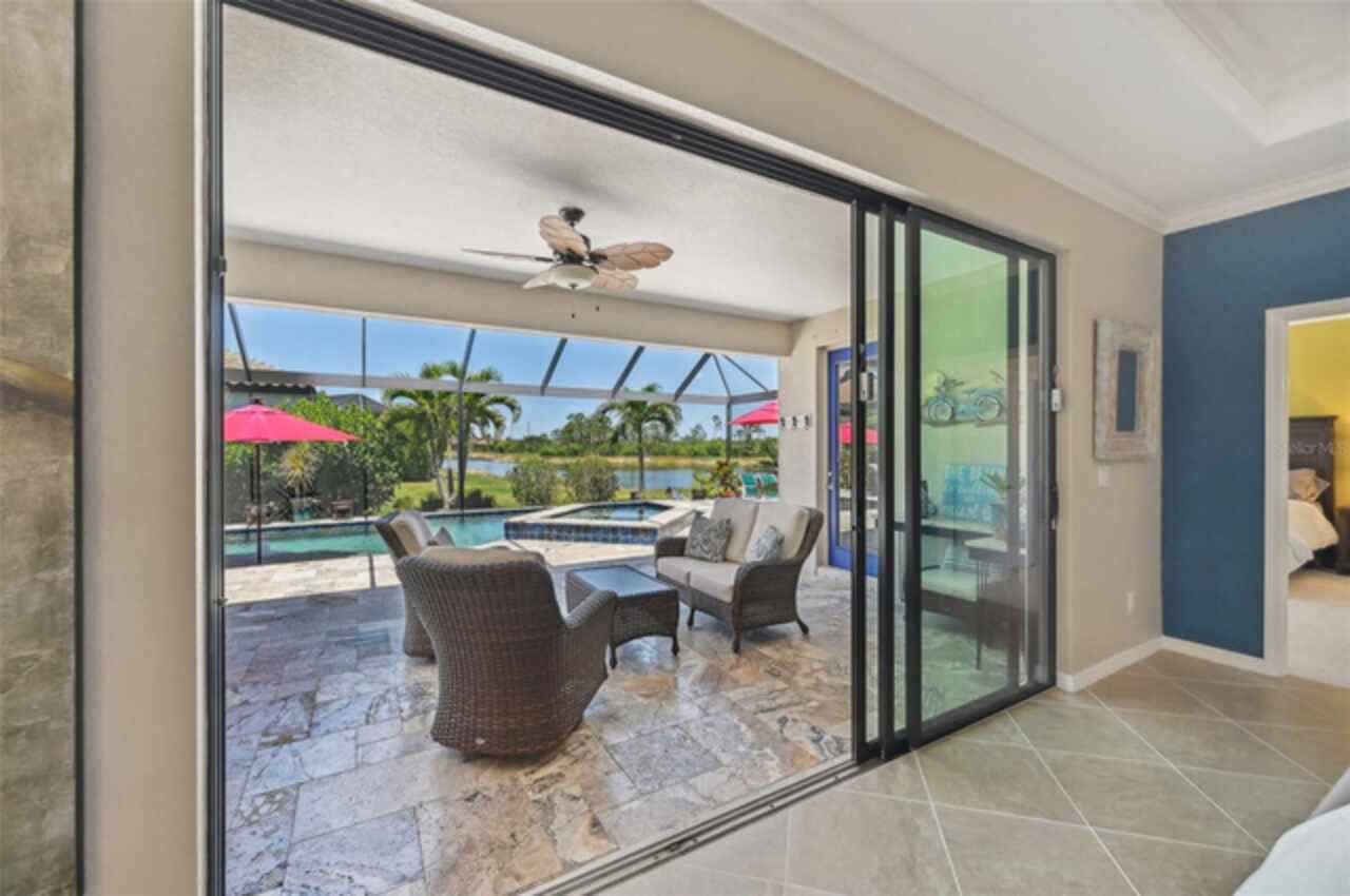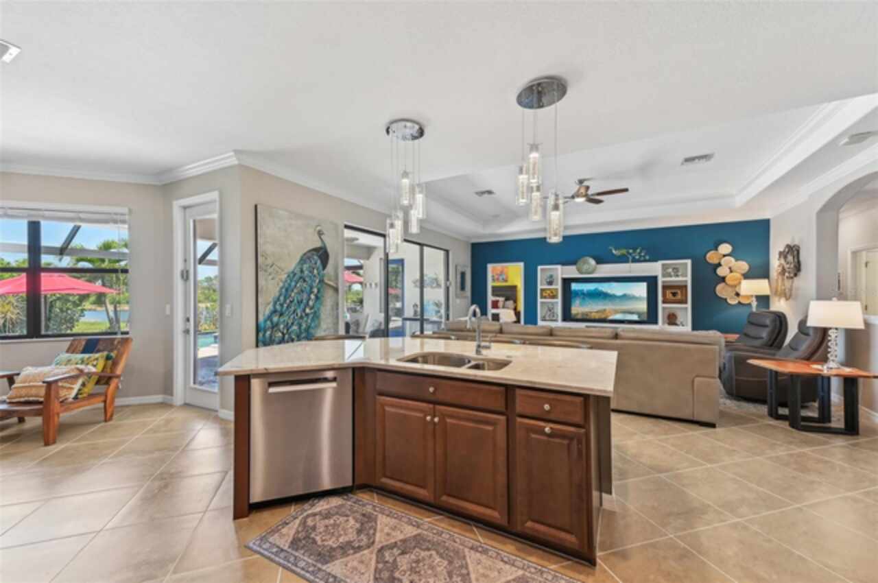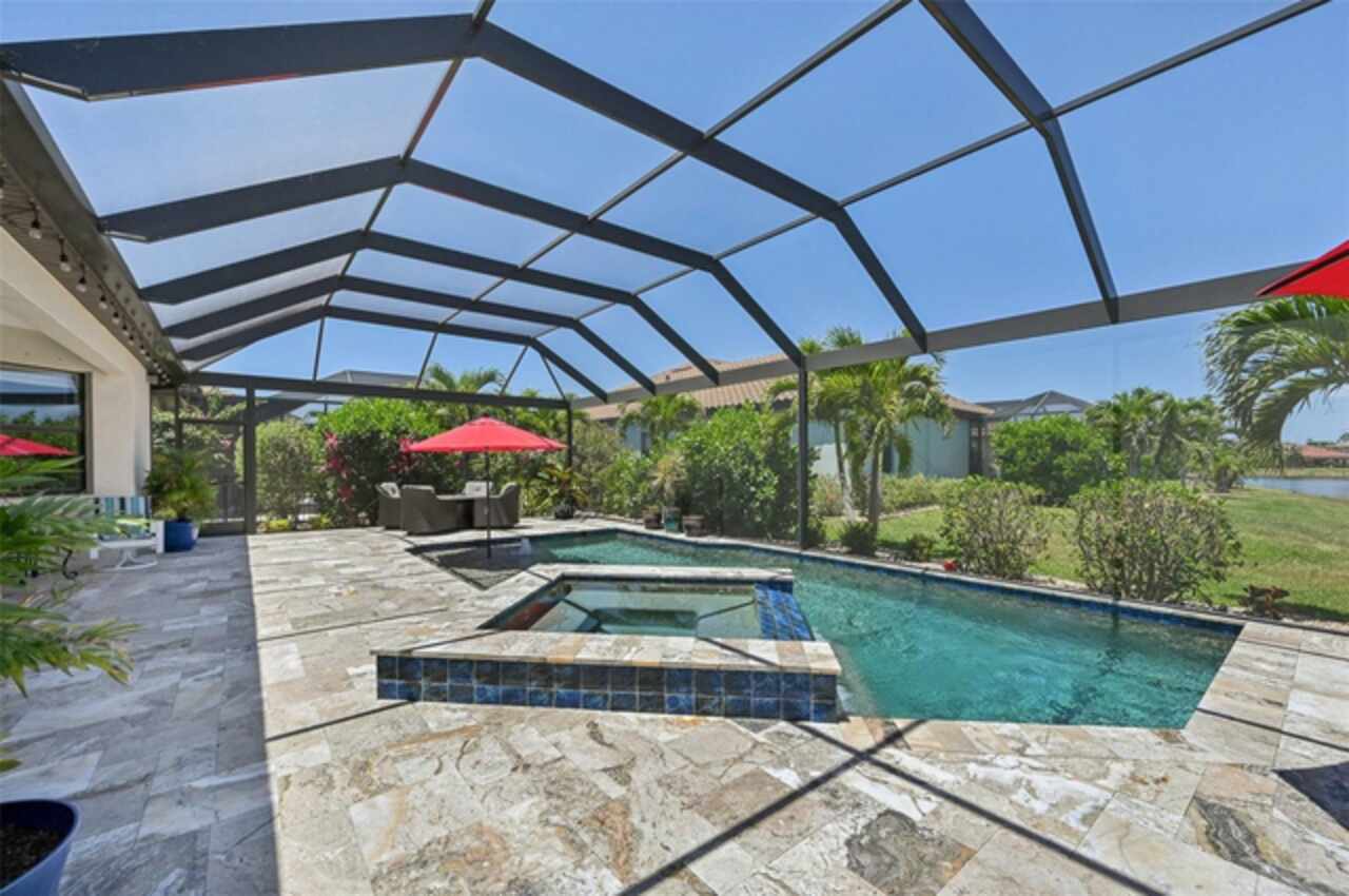 Under contract-accepting backup offers. Price Reduction! Back on the market! Financing fell through just before Closing! Home is now vacant and ready for immediate occupancy. The amazing water views, custom saltwater pool & spa and the extended lanai make this 2018 built 4 BR, 2 BA, 3-car garage home an entertainer's paradise. Located in the gated, maintenance-free resort style community "Gran Paradiso at Wellen Park" this gorgeous property has recently been upgraded with new granite countertops in the kitchen, including a counter height breakfast bar, subway backsplash, brand-new luxury appliances (LG French Door Refrigerator/Freezer with double icemaker, LG double oven & Bosch dishwasher) and fresh paint inside and out. Be prepared to be impressed by the open floor plan, tile on the diagonal, crown molding, wainscoating, custom lighting & tray ceilings. There is even a built-in electrical fireplace in your Dining Room, complete with an antique mantel. Your Primary Bedroom has newer high-end designer carpeting and a spacious walk-in closet with customized shelving. The En Suite Primary Bath features double sinks, granite counter tops, a walk-in shower and a garden tub. Your guests will love the privacy of the split floor plan with 2 guest bedrooms and a shared bath and a third full bedroom that could also be used as a home office or den. All guest bedroom closets have been customized with additional shelving. Your outdoor area is a tropical dream with an amazing saltwater pool and infinity-edge spa, offering additional massage jets. At night, you will enjoy the multi-colored pool lights and the private setting. The entire extended lanai has gorgeous travertine flooring and your pool cage maximizes the beautiful lake & preserve views with its enlarged view screens. Custom landscaping, brick curbing in front and back, as well as whole house gutters complete this spectacular residence. Gran Paradiso offers a beach entry resort pool, Tuscan-style Clubhouse with gathering room, game rooms & library, state-of-the-art fitness center, tennis courts, pickle ball, steam rooms and saunas and a myriad of activities for its residents, organized by a full-time Lifestyle Director. Wellen Park is one of the most vibrant master-planned communities in the country and located just 10 minutes from the magnificent Gulf of America beaches and in close proximity to shopping, restaurants and the new Atlanta Braves Spring Training stadium. Imagine living in this gorgeous setting every day! Leave the cold Northern winters behind and enjoy the life you deserve!