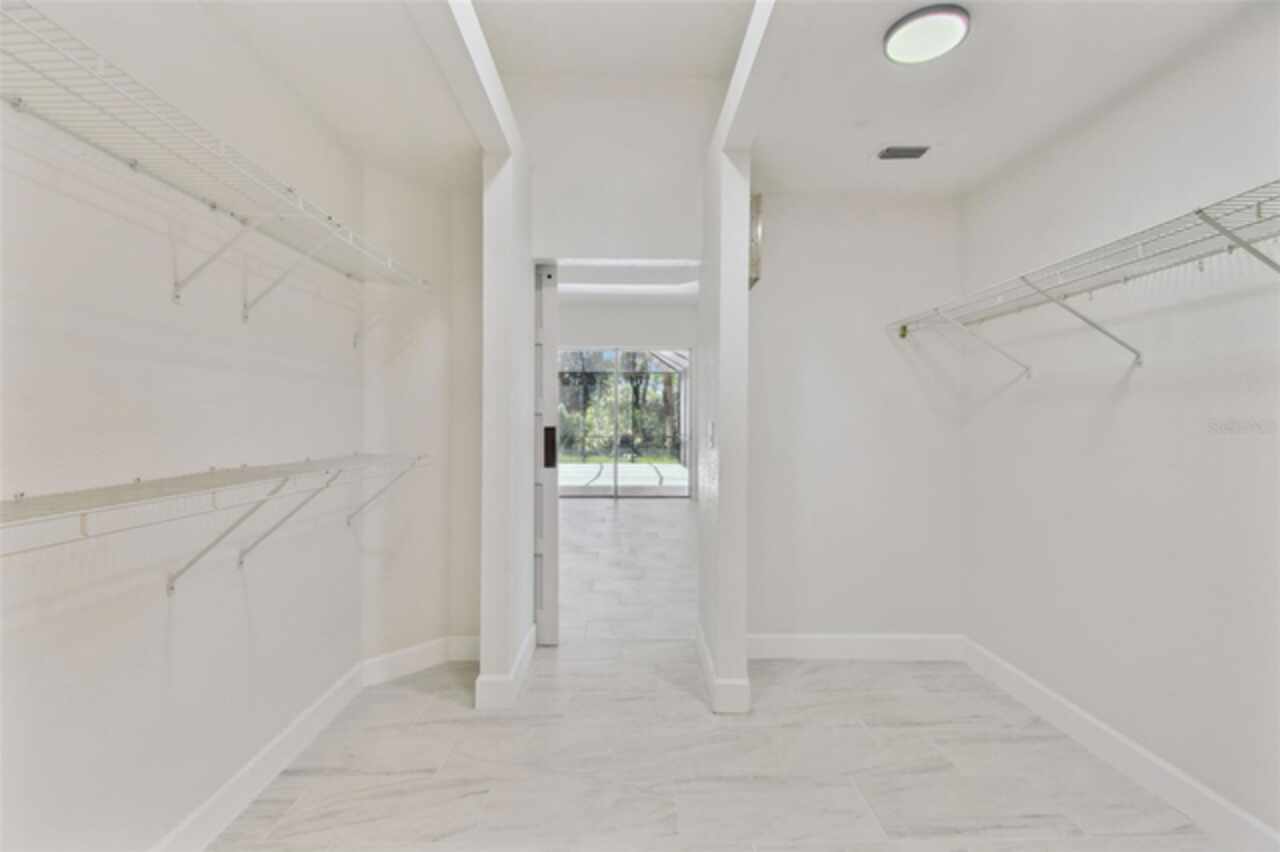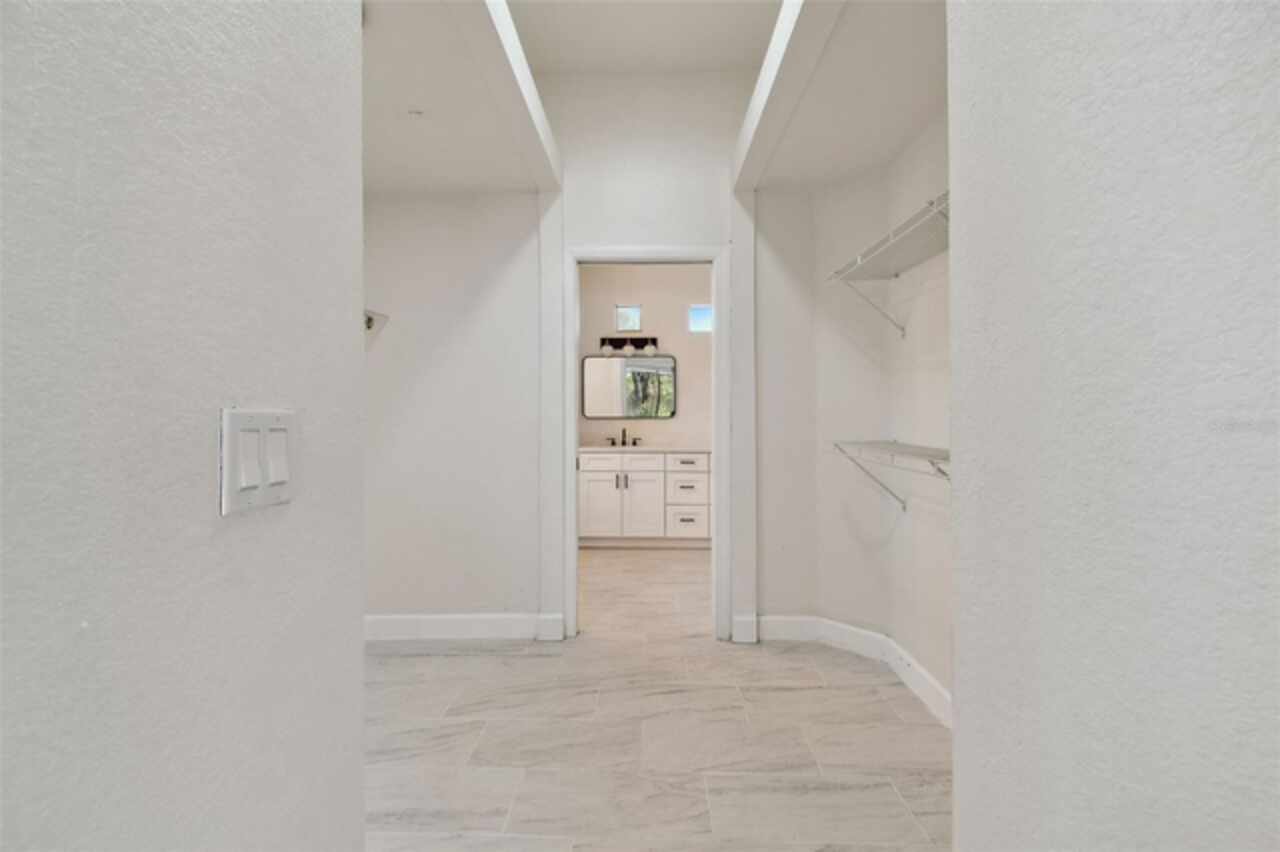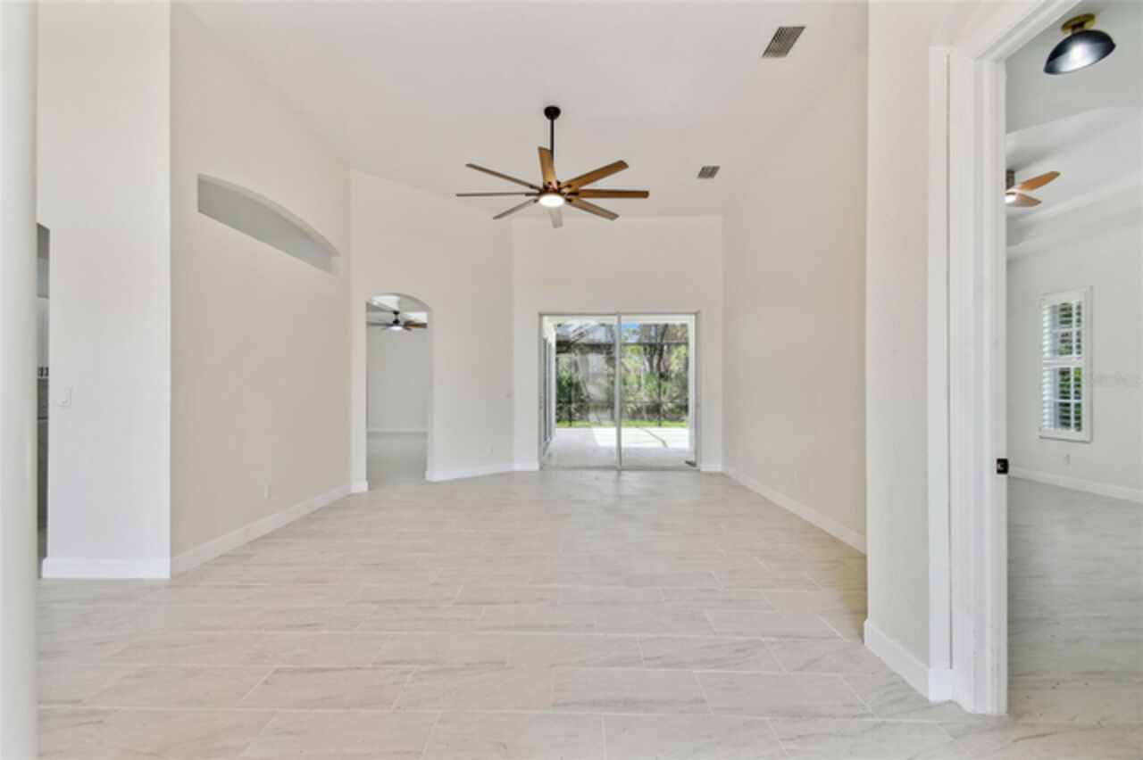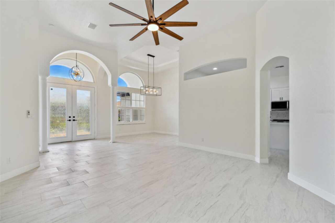 Ceiling Fans(s), Eat-in Kitchen, High Ceilings, Kitchen/Family Room Combo, Open Floorplan, Primary Bedroom Main Floor, Solid Surface Counters, Stone Counters, Thermostat, Walk-In Closet(s)