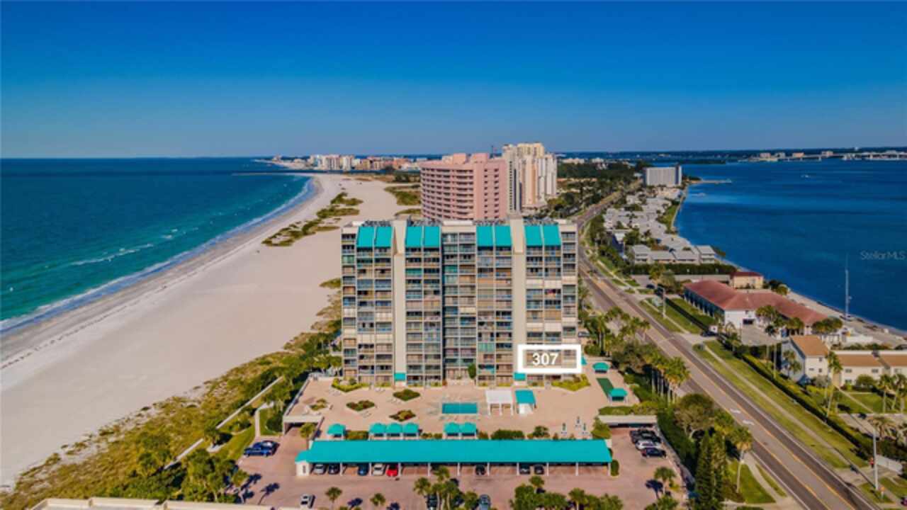 LOCATION, LOCATION, LOCATION!! LIVE THE BEACH LIFE!!! IN THIS FULLY FURNISHED AND TURNKEY TWO BEDROOM GULF FRONT CONDO TODAY. Reduced $69, 000! Under $400 Sq. Ft. This BUDGET CONSCIOUS corner condo offers expansive indoor/outdoor spaces, including enclosed year round Patio and two Juliet balconies ALL accessed through open air sliders. Fully furnished and featuring a brand new 2024 air conditioning system. This beachfront residence boasts affordable Beach Living value. RESERVED GARAGE PARKING! Step into the open-concept living area complemented by a separate kitchen and dining room pass-through, perfect for entertaining guests. With two spacious bedrooms and two full bathrooms, this retreat offers the ideal backdrop for coastal living. Savor breathtaking vistas of the Gulf of Mexico and Clearwater Bay from your private outdoor/indoor patio, promising endless relaxation and enjoyment. Don't miss out on this unparalleled value – seize the opportunity to embrace beachfront living today. Your piece of paradise awaits at this spacious corner condo, ready to fulfill your dreams of Gulf Coast living. This great value is likely never to be seen again! YOU CAN ENJOY ALL OF THIS IN YOUR WATERFRONT SPACIOUS CORNER GULF VIEW TWO BEDROOM CONDO ON THE BEACH with AWE INSPIRING SUNSETS.
