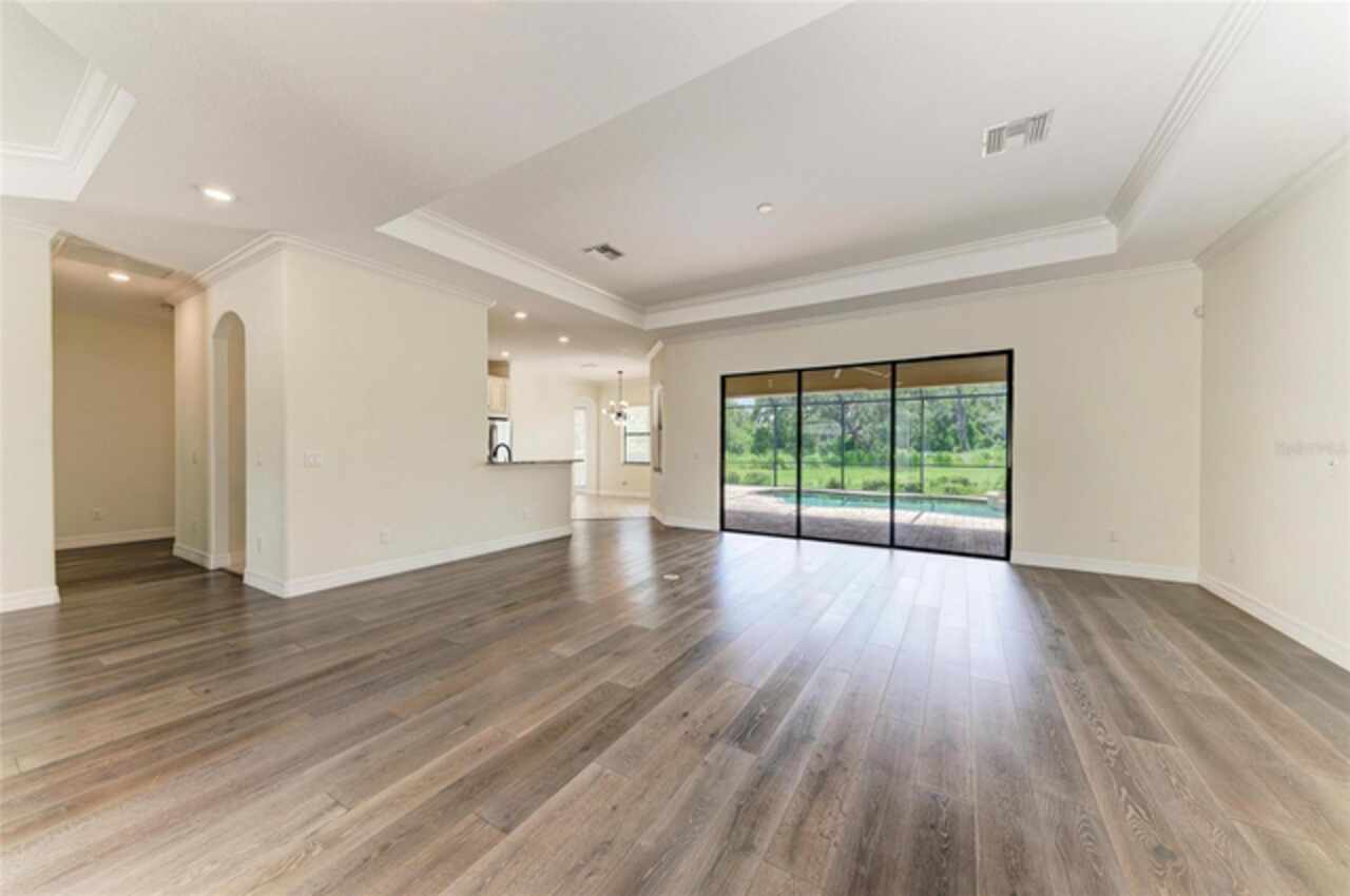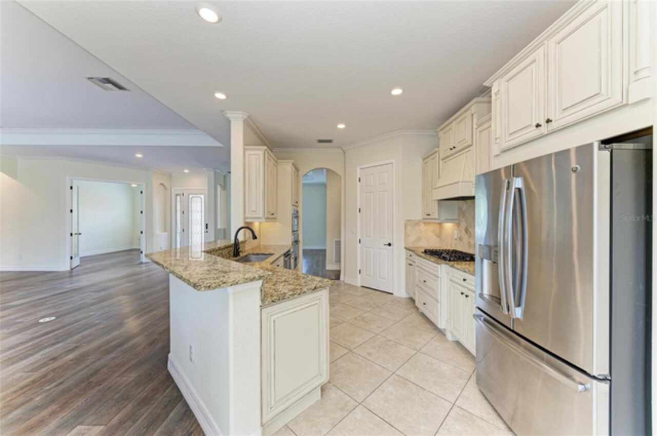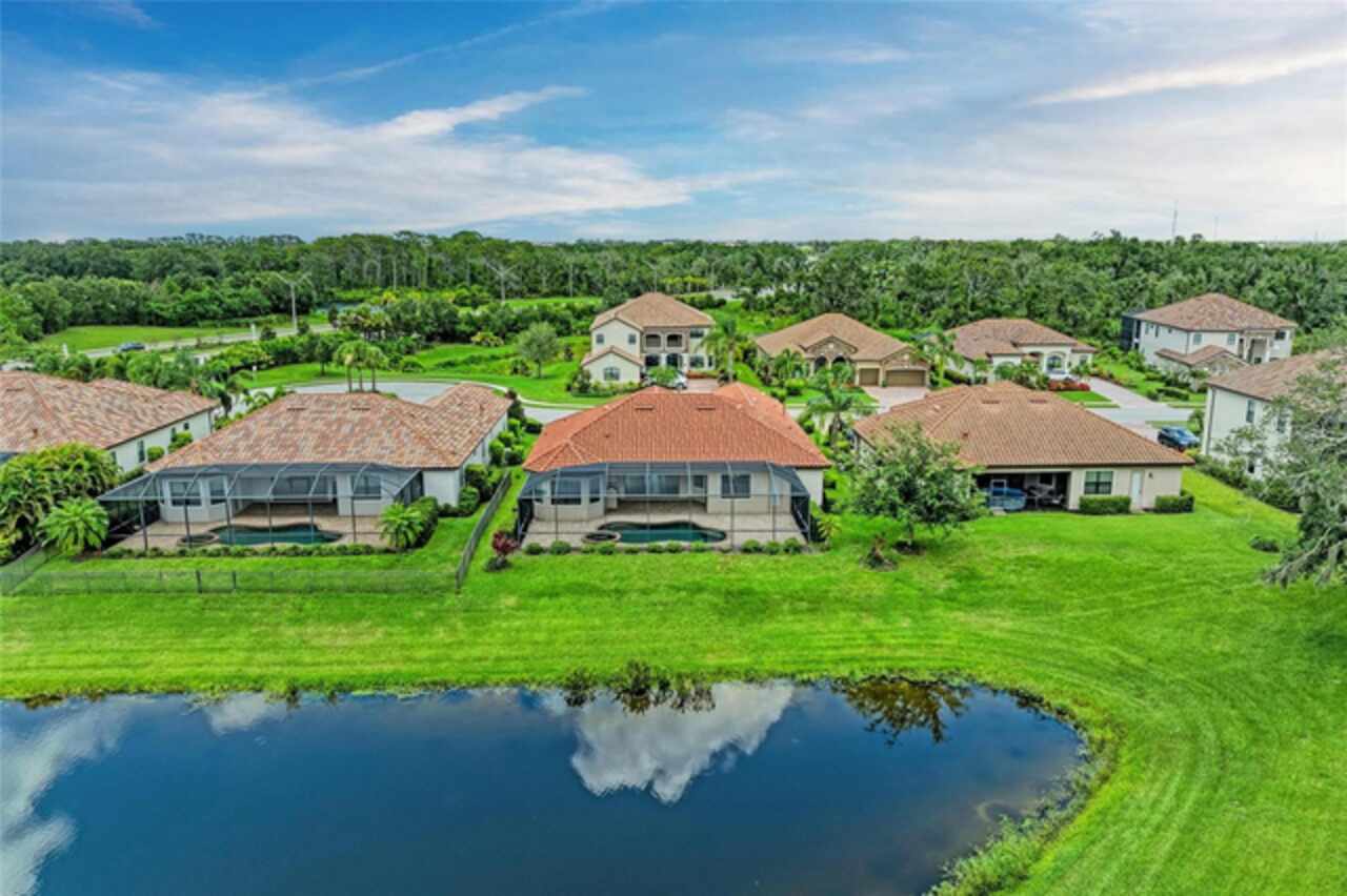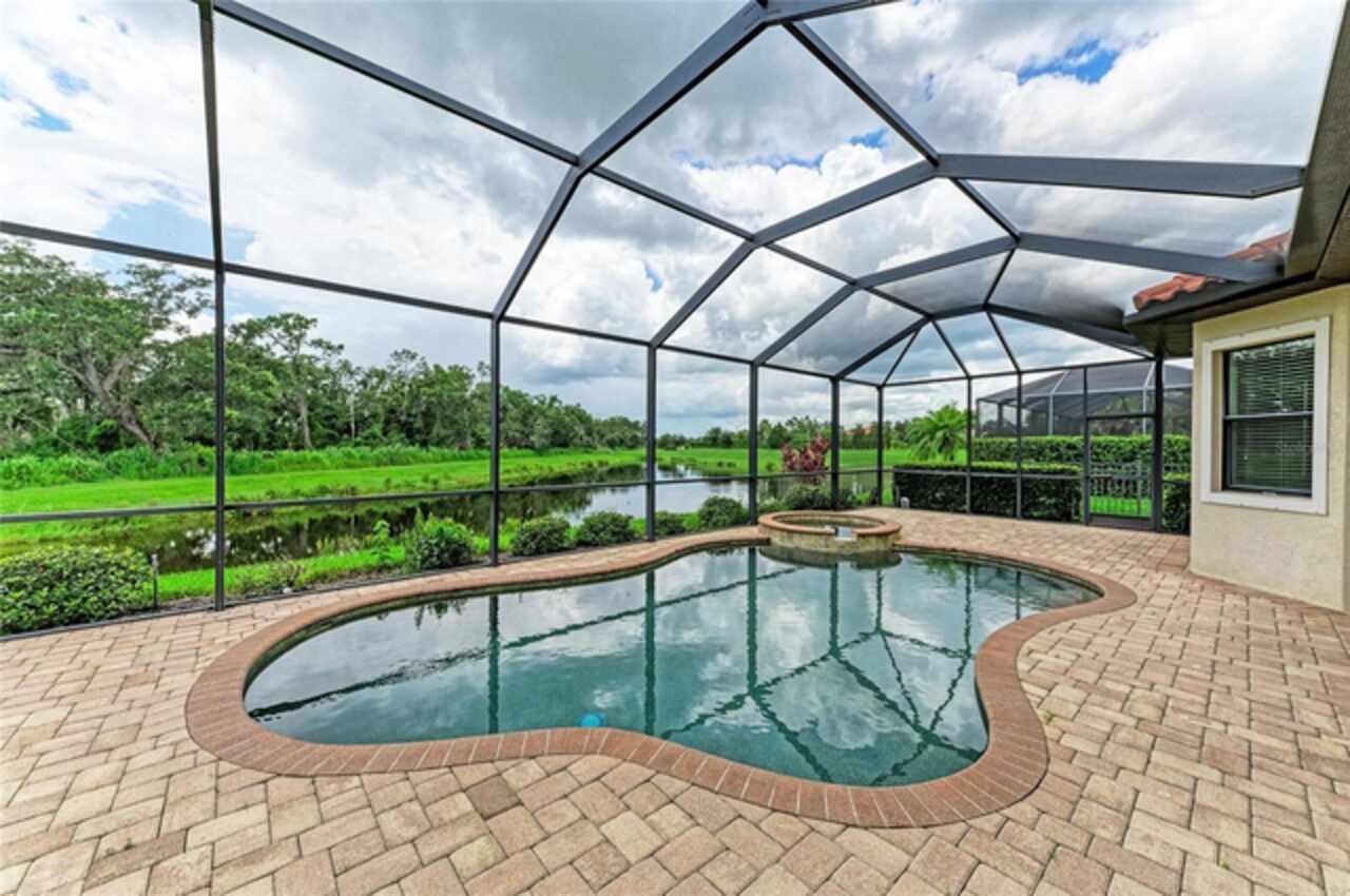 OH, WHAT A VIEW !!! Welcome to 13819 Swiftwater Way.... This beautifully maintained Cambridge model is perferctly situated towards the end of a cul de sac features warm dark hardwood floors and oversized tile flooring and features 4 bedrooms and 2 1/2 baths. Imagine yourself sitting out back on the expansive lanai and enjoying magnificent preserve and water views will take your breath away. The gourmet kitchen is a chef's dream with a 5 burner gas stovetop and double ovens. Deep sink with touch faucet, granite counters and more. Enjoy Amazing sunsets over the water from a large screened lanai with a heated in ground pool and spa. The outdoor kitchen has a gas grill and beverage fridge. An oversized master suite with his and hers vanities, a soaking tub and a walk-in shower. Two guest bedrooms plus home office/den with double doors for privacy and could double as a 4th bedroom if needed. Large 3 car garage is ideal for storage. Bridgewater is a Gated community where landscaping is included in the low HOA. This home is conveniently located adjacent to James L Patton Park, with a lake, boat launch, and trails for outdoor activities. Close to shopping and restaurants...Bridgewater is centrally located, gated and a maintenance assisted community. Great place to call home....Will not last !!!