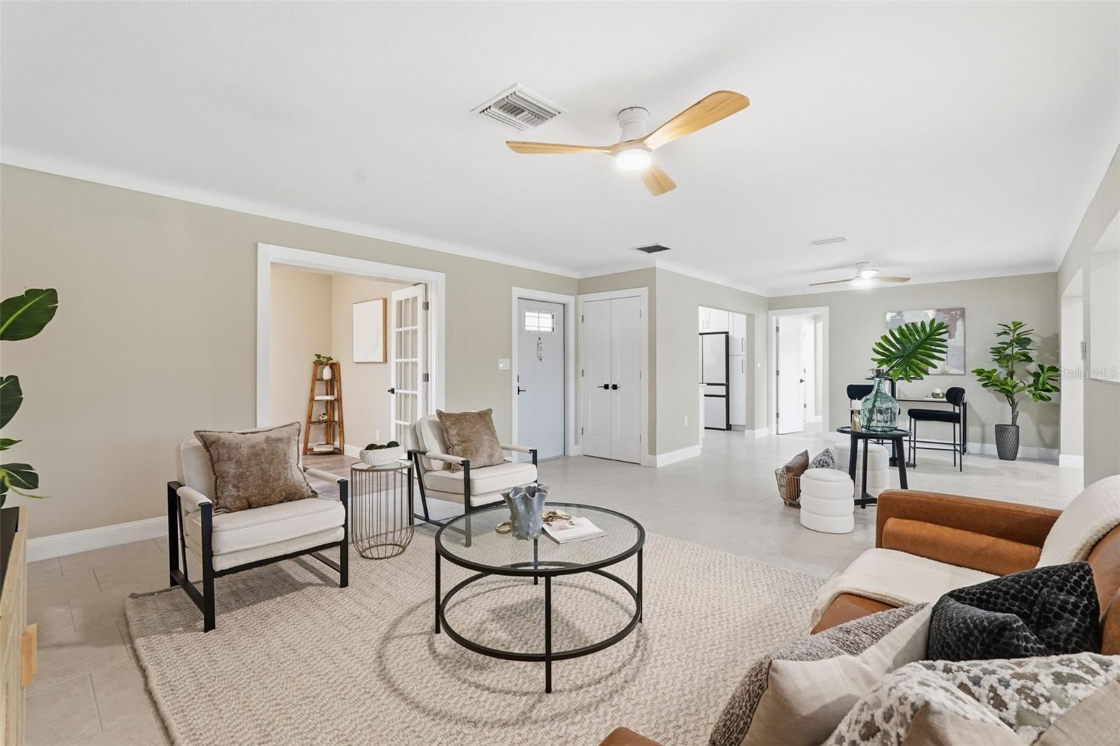 Ceiling Fans(s), Living Room/Dining Room Combo, Open Floorplan, Stone Counters