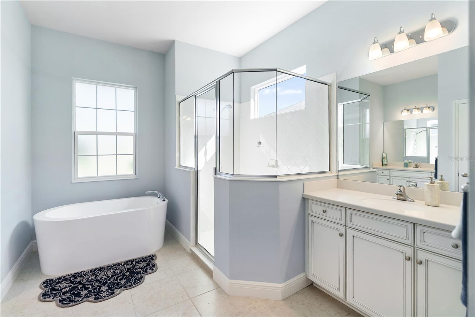 One or more photo(s) has been virtually staged. NO CDD! Luxurious 2020 Captiva Model with Dual Master Suites in Neal Communities Gated Canoe Creek Step into modern elegance with this move-in-ready 2020 Neal Communities home in the exclusive Canoe Creek community. Spanning over 2, 700 sq. ft., this 3-bedroom, 3-bathroom retreat boasts two spacious master suites—perfect for multigenerational living or hosting guests. With $37K in premium upgrades, this home is designed for comfort and style. Current lender does not require flood insurance. The heart of the home is a gourmet kitchen featuring a sleek granite island, stainless steel appliances, cooktop, convection oven and roll out shelves in cabinets. Unwind in the primary suite’s freestanding tub or entertain on the screened lanai with serene pond views, pre-plumbed for your future outdoor kitchen space. Standout features include: soaring trayceiling in the great room, designer cabinetry and Corian counters throughout, cordless faux wood blinds and luxury-height Kohler fixtures, fully fenced backyard, radiant barrier roof, spacious three-car garage with holiday outlets, and a home security system. Canoe Creek’s resort-style amenities elevate your lifestyle with a clubhouse, pickleball courts, 24-hour gym, pool, spa, fire pit, dog parks, and a Lifestyle Director curating community events. Live the Florida dream in this like-new home with quick trips to vibrant cities and world-class beaches just a short drive away.. Schedule your private tour today!