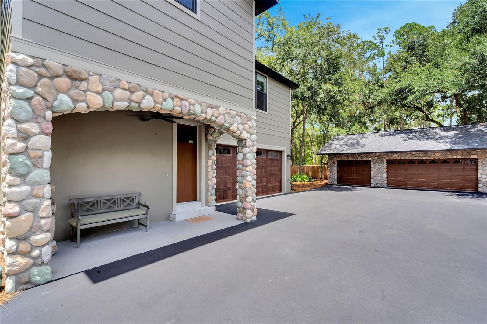 IMMACULATE 3 BEDROOM, 3 BATH LAKE ACCESS HOME WITH ROOM FOR MULTIGENERATIONAL LIVING AND POTENTIAL INCOME OPPORTUNITIES IN THE LOVELY ISLE OF PINES NEIGHBORHOOD. No HOA. Enter into this meticulously crafted home offering an exceptional design throughout. Situated on a serene 1/3-acre lot, this property blends privacy with low-maintenance living. Enjoy the peaceful ambiance of a tree-lined street and picturesque lakefront estates just across the way. The xeriscape landscaping provides stunning curb appeal with minimal upkeep, while mature trees and plants provide privacy and seclusion. Inside, the flexible floorplan shines—featuring a downstairs ensuite with kitchenette bar, walk-in closet, full bath, and private deck. Perfect for a home office, guest suite, or in-law quarters. Interior laundry room. Upstairs, accessible via elevator or stairs, you'll find the main living area, a spacious owner's suite, and a third bedroom and bath. Step onto the balcony to take in partial lake views and breathtaking sunsets. Car enthusiasts and hobbyists will love the attached 2-car garage with epoxy floors and storage racks. The property includes a detached building with two multi-use spaces complete with full bathrooms, laundry hook ups and kitchenettes. A separate storage shed and whole-home generator add even more convenience, storage and security. Built with premium materials, appliances, and a commercial-grade septic system, this home was designed with durability and ease in mind. You can enjoy the optional membership to the Isle of Pines Private Lakefront Park ($175/year) which provides access to a boat ramp, sandy beach, dock, event pavilion, playground, basketball court, bathrooms, and a calendar of community holiday events. The property is surrounded by Old Florida charm with 3, 000 acres of navigable freshwater on Lakes Mary Jane and Hart and scenic walking and equestrian trails. There is NO HOA or CDD fees—just freedom and natural beauty. Enjoy privacy and serenity while remaining close to Lake Nona’s Medical City, Orlando International Airport, major highways, downtown Orlando, top rated schools, colleges and world-famous attractions. Plus, many east coast beaches are just 30 miles away!—this property offers luxury, flexibility, and location all in one.