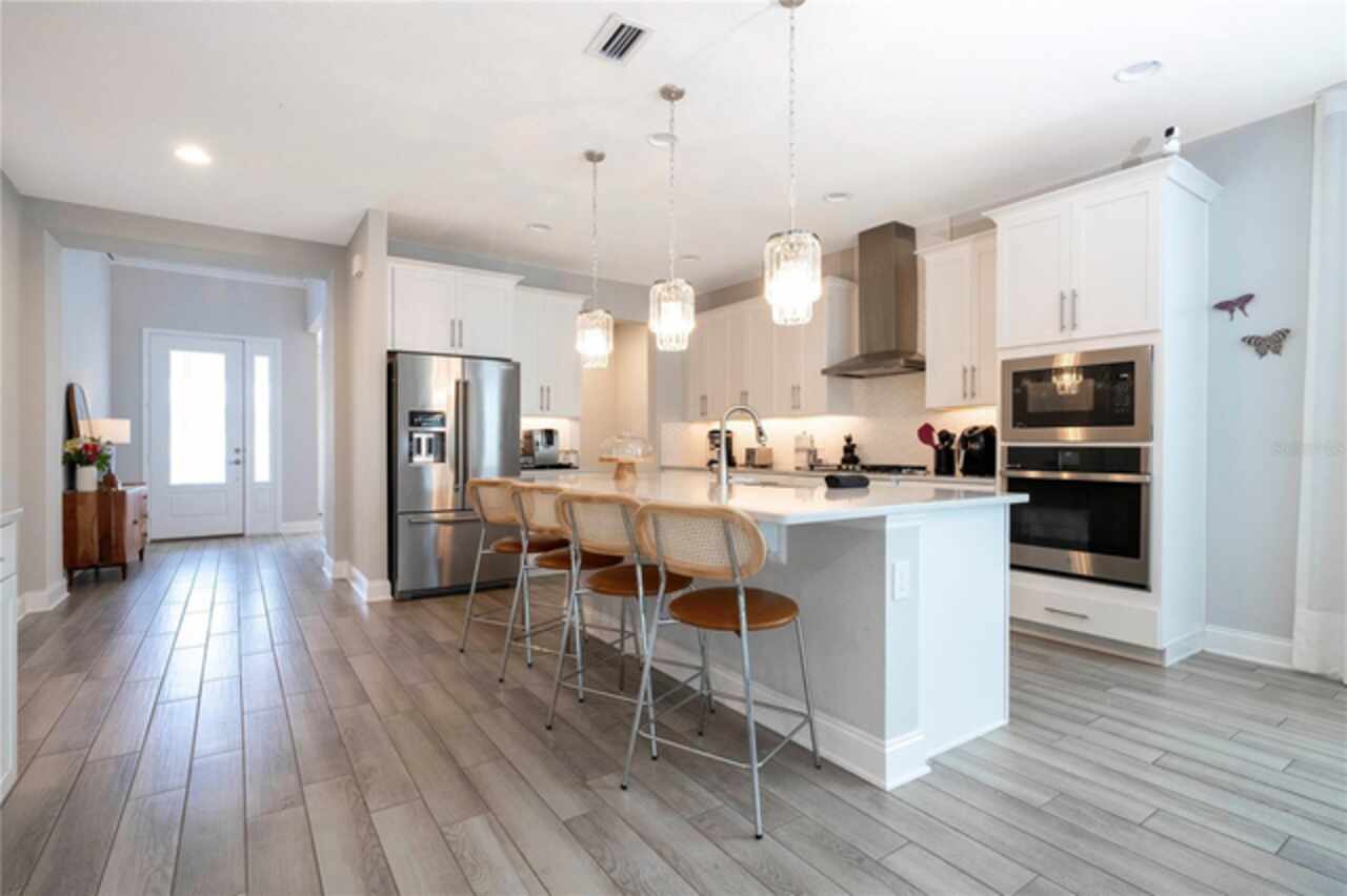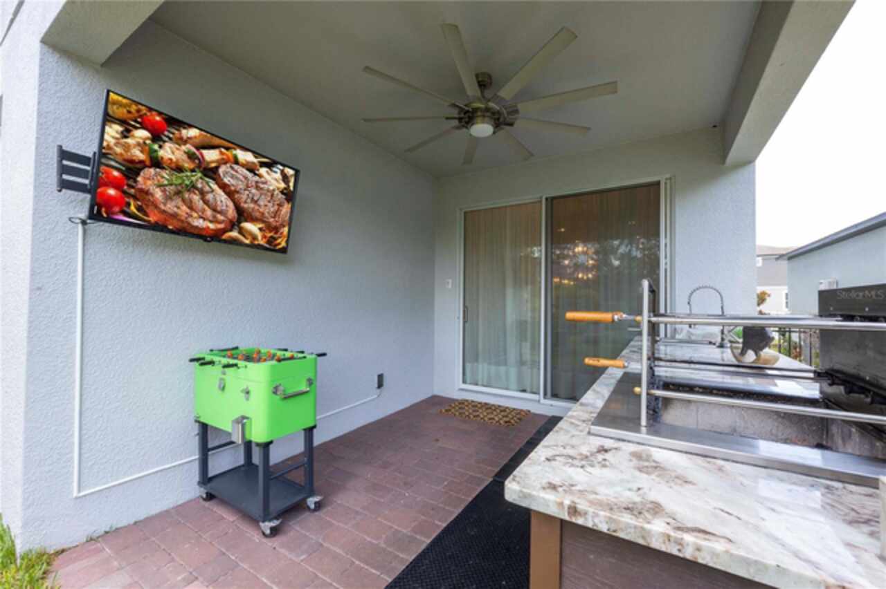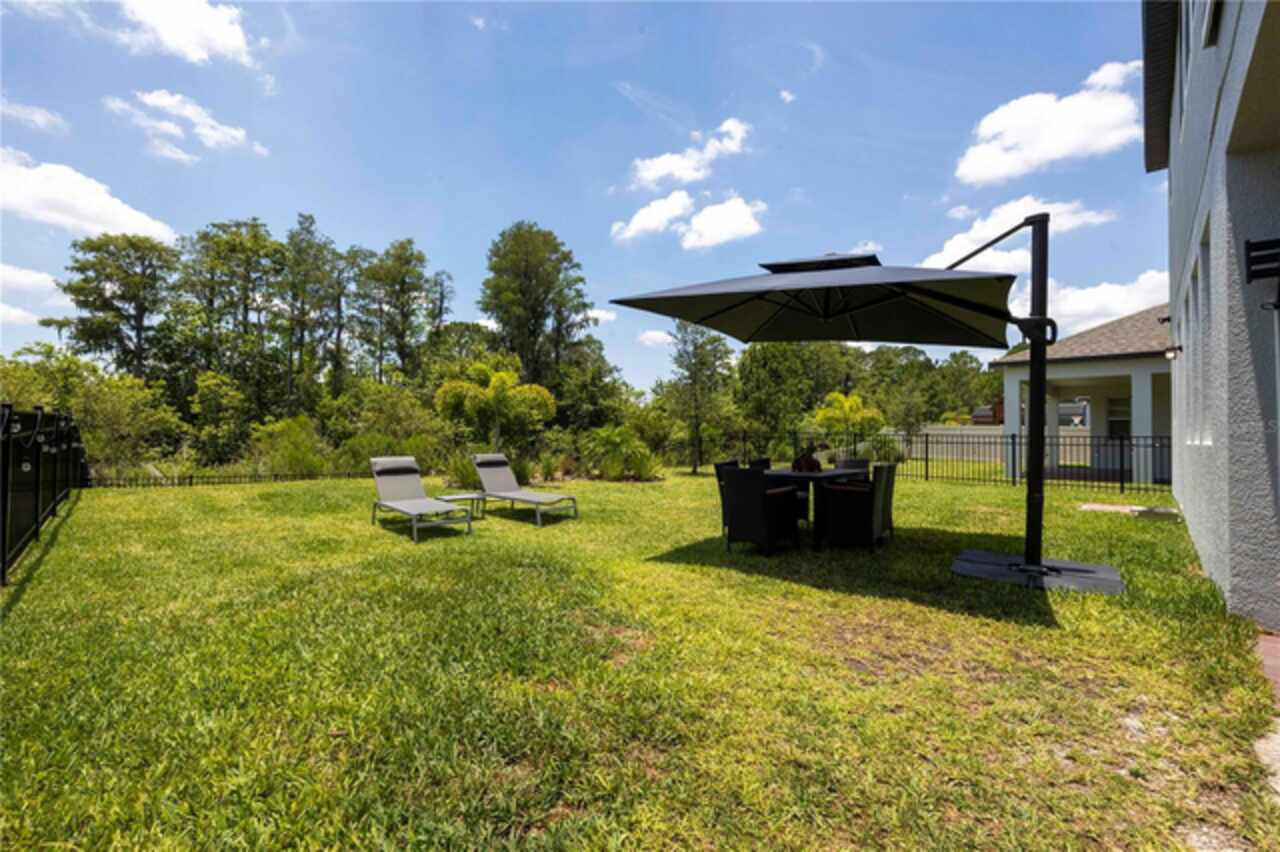 One or more photo(s) has been virtually staged. Step into your dream residence! Perfect for those who cherish ample outdoor space for entertainment and future landscaping projects, this exquisite property boasts a sprawling backyard, complete with a summer kitchen ideal for barbecues. The home features an expansive layout with 5 bedrooms and 4 full bathrooms, ensuring ample space for both family and guests. The heart of the home, a spacious kitchen, is perfect for gatherings. A vast loft on the second floor adds to the home's charm. Elegance is key, with each room adorned with curtains and the first floor shining with stunning crystal chandeliers. Enjoy serene conservation views from your backyard, adding a touch of tranquility to your living experience. Eco-friendly living is at your fingertips with an efficiently installed solar panel system, reducing energy costs. The property also includes a three-car garage with an attractive epoxy floor. Don't miss the opportunity to make this your forever home!