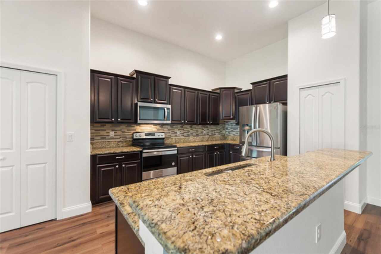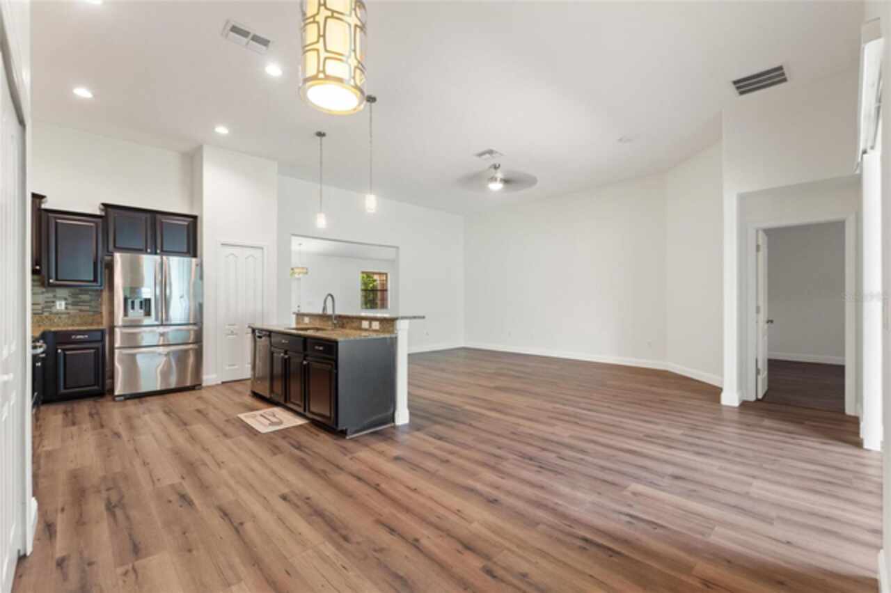 LIVE LIKE A CHAMPION! FULL GOLF AND TENNIS MEMBERSHIP INCLUDED IN HOA! Welcome to this move-in ready home in the exclusive gated community of ChampionsGate! This 4-bedroom, 3-bath, 3-car garage residence is nestled in the highly sought-after Phase 1. Walk to the neighborhood restaurant and pool! Relax on your private west-facing rear lanai, your own personal oasis, or take in views of fireworks, hot air balloons, and shuttle/rocket launches right from your driveway. Inside, enjoy upgrades like fresh interior paint, stainless steel appliances and granite countertops. The primary suite boasts a spacious walk-in shower and dual sinks. The professionally designed corner-lot features lush, meticulously maintained greenery and a sweeping front porch that exudes curb appeal. This luxury, gated, resort-style community revolves around the Oasis Club, a 14, 000 sq ft clubhouse with a restaurant, movie theater, fitness center, game room, tiki bar, lazy river, cabanas, and more! The newly completed Retreat waterpark will elevate family fun, while “The Plaza” offers a resident-only clubhouse with a restaurant, bar, fitness center, game room, and pool. The HOA includes access to the Oasis Club/Plaza amenities, full golf/tennis membership, $75 food credit, gated security, complete lawn care, security monitoring, cable, phone, and internet. CDD and trash are conveniently rolled into the taxes. ChampionsGate is the ultimate location to enjoy Orlando’s theme parks, golf, shopping, and dining!