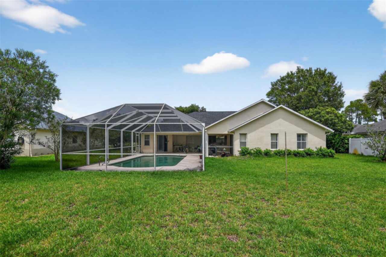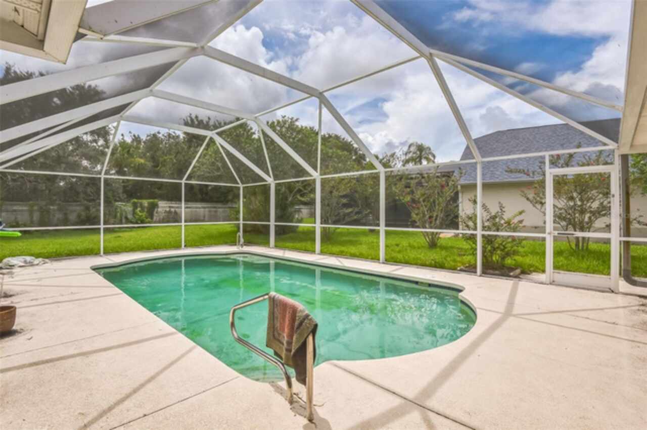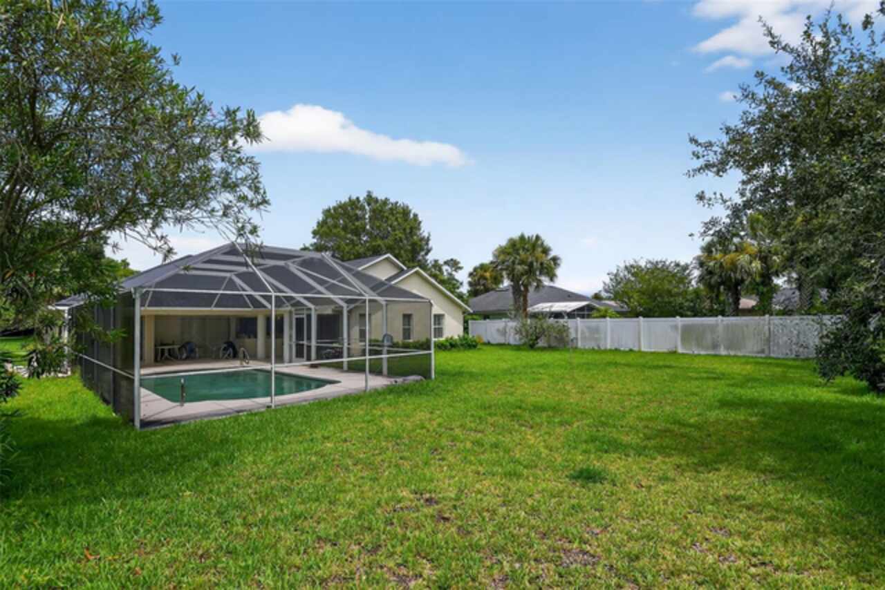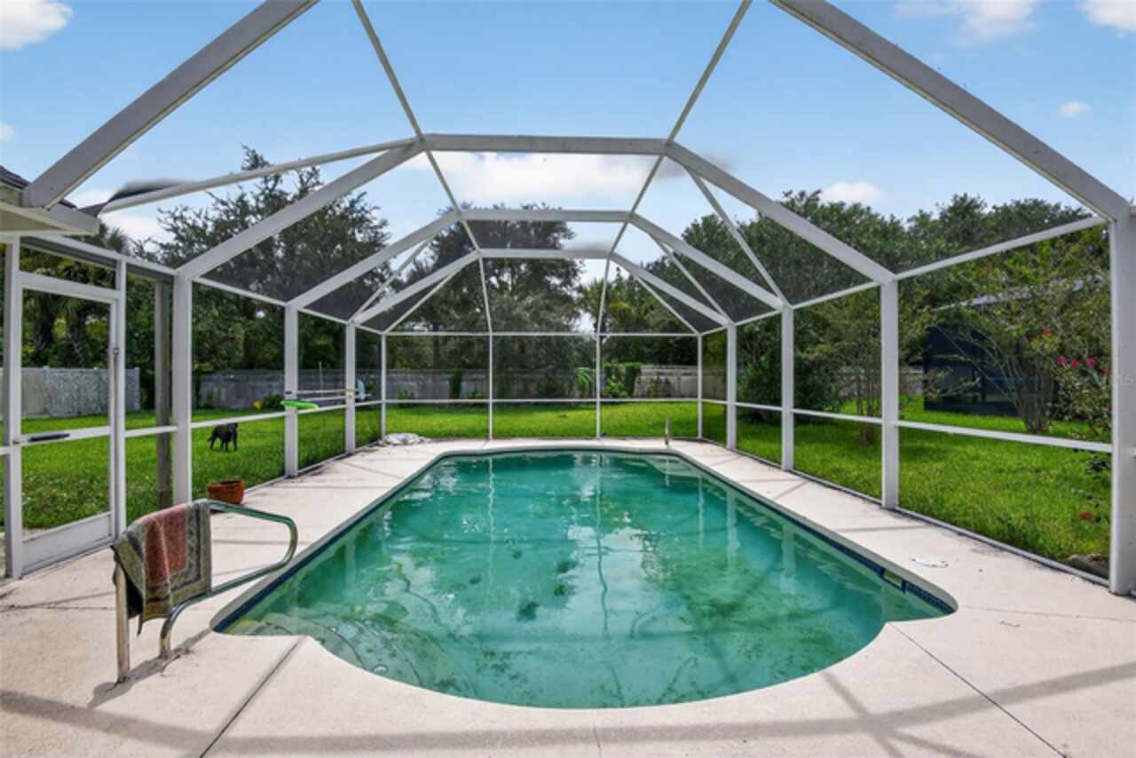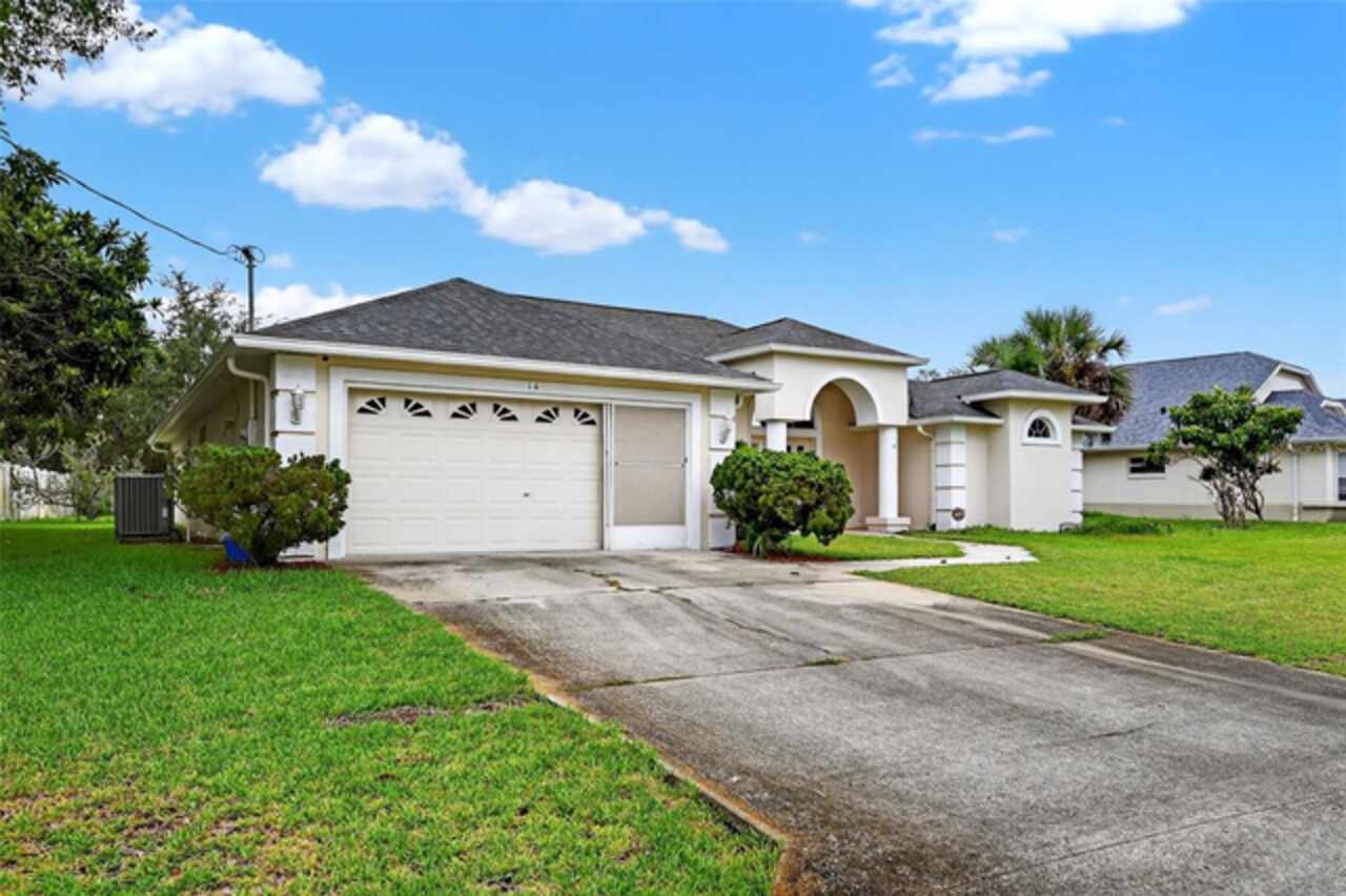 This 3 bedroom/2 bath home features 2, 033 sq. ft. of living space. The home sits on a large 0.29-acre lot. The kitchen offers wooden cabinets, a pantry, and granite countertops. The living room is carpeted while bedrooms feature walk-in closets. Bathrooms include double sinks, wooden cabinets, and an extra storage closet. The front yard is landscaped with a 1-car garage while the backyard offers a covered patio connected to a screened swimming pool with a spacious yard. Subdivision: Palm Coast Sec 16
