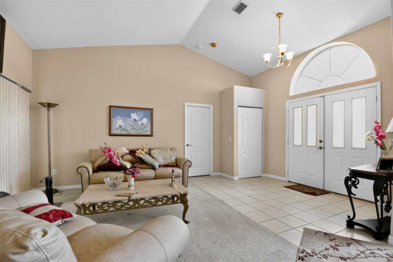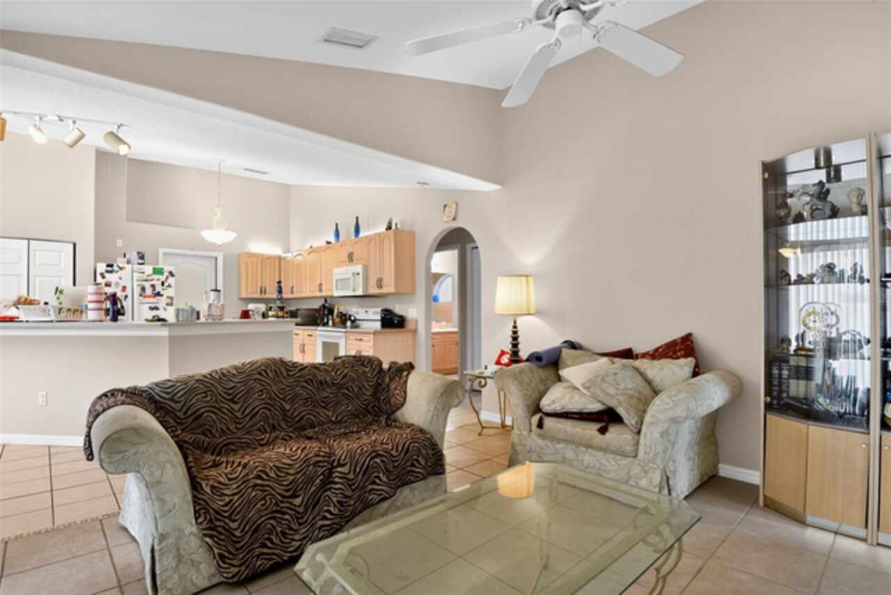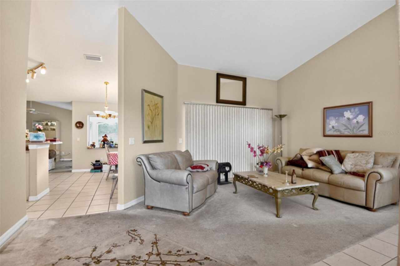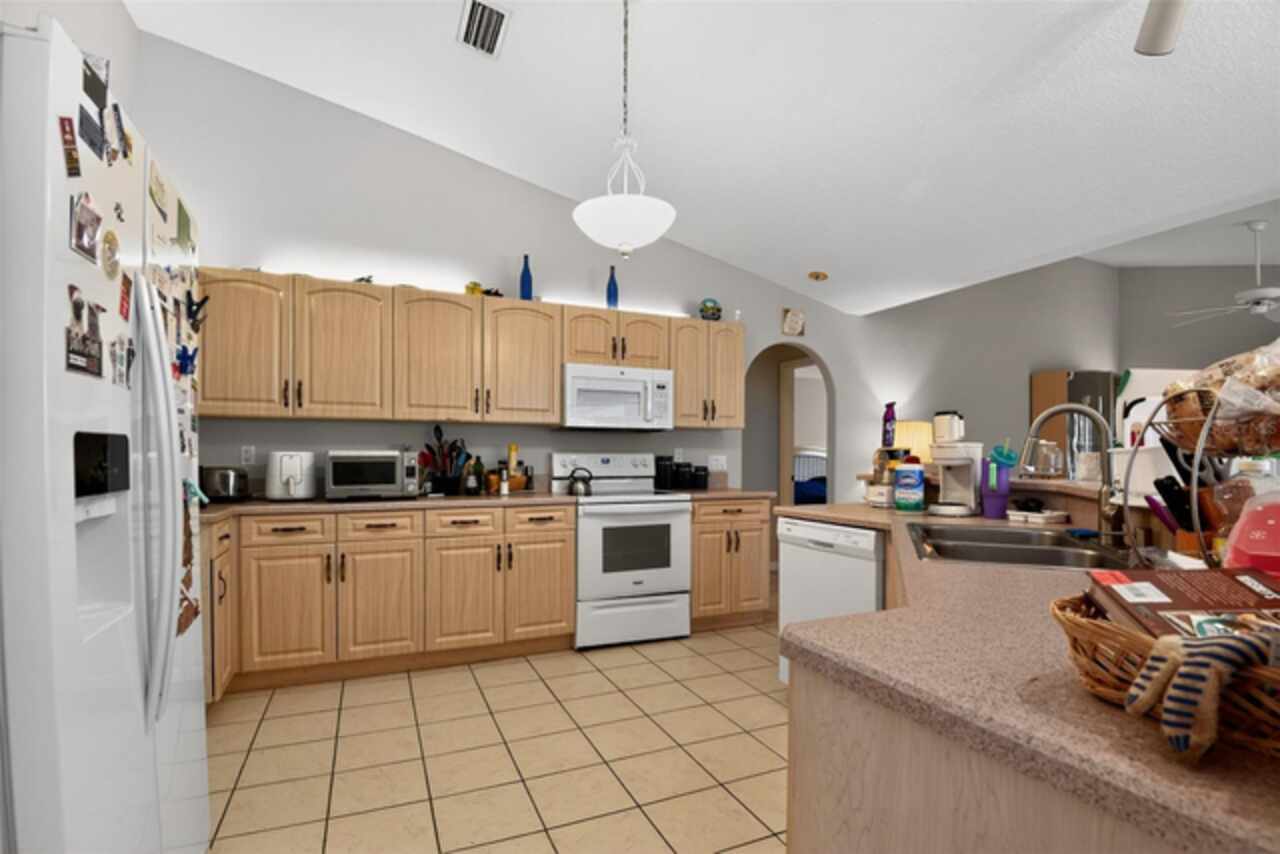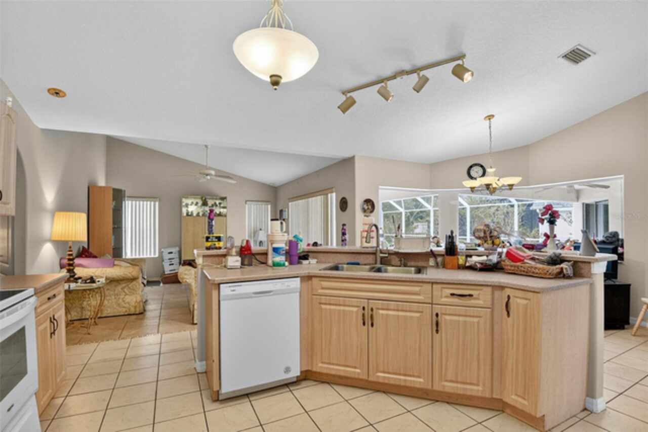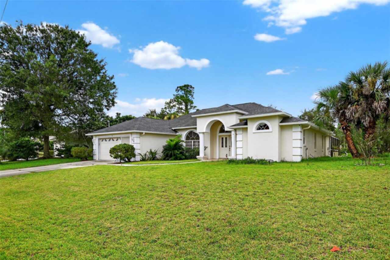This 3 bedroom/2 bath home features 2, 033 sq. ft. of living space. The home sits on a large 0.29-acre lot. The kitchen offers wooden cabinets, a pantry, and granite countertops. The living room is carpeted while bedrooms feature walk-in closets. Bathrooms include double sinks, wooden cabinets, and an extra storage closet. The front yard is landscaped with a 1-car garage while the backyard offers a covered patio connected to a screened swimming pool with a spacious yard. Subdivision: Palm Coast Sec 16