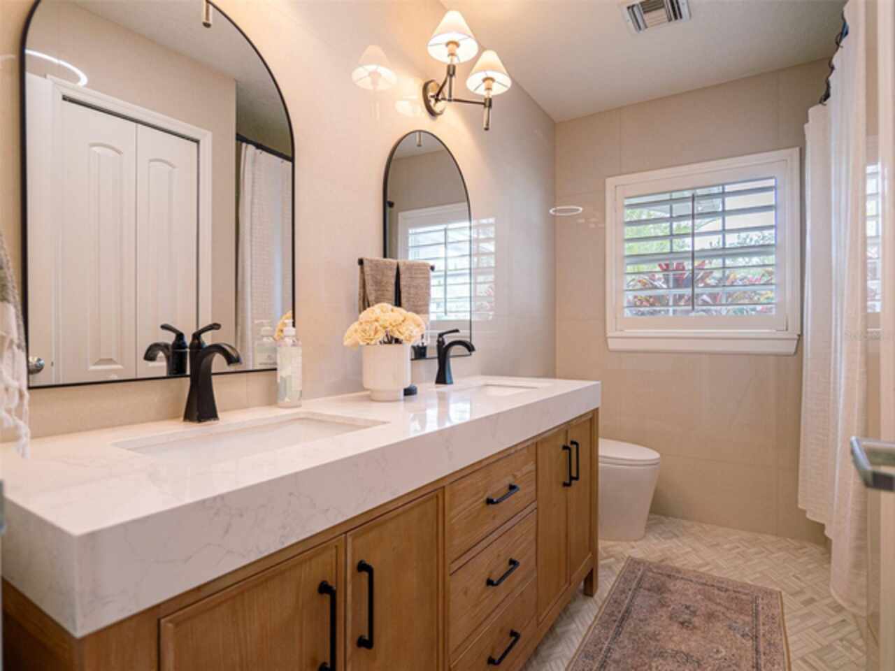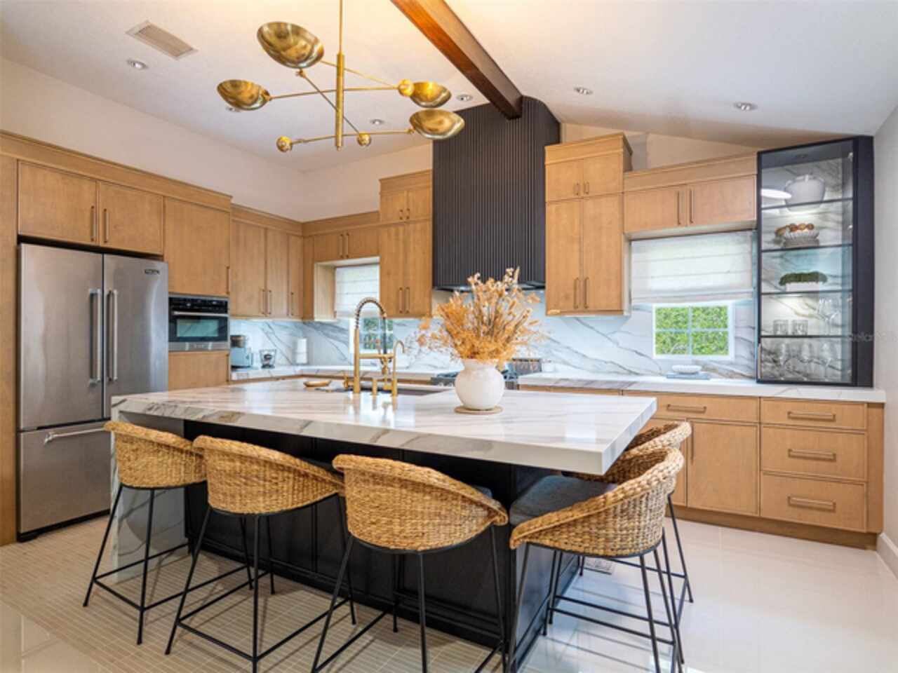Look at this rare opportunity to own a chic and trendy residence in winter park in an incredible location. You will be amazed at this fully remodeled one level four bedroom home on a fenced corner lot. This home has amazing curb appeal, with its wide half circle paved driveway, with plenty of parking flanked with lush mature landscaping. The open floor plan offers today's contemporary living and entertaining with designers porcelain tile, trendy light fixtures, plantation shutters and a family room with high vaulted ceilings. The designer kitchen has just been totally remodeled with Custom cabinets, Viking stainless steel appliances, custom vented hood and breakfast bar seating. To beautiful for words. A must see!! The spacious master bedroom suite boasts wood floors, 2 walk in closets duel vanities, a completely remodeled bathroom with a tiled shower and a separate soaking tub. The secondary bathroom, has been completely remodeled with marble flooring, double vanity sinks. The guest bedroom is its own en-suite. You will feel like you're on vacation when stepping out through the sliding glass doors leading to your private oasis with trex composite decking. The backyard was designed for entertaining and gathering around the wood burning fire pit, the summer kitchen with DCS gas grill, or just relaxing under the aluminum gazebo equip with fans. The entire home was remodeled in 2024. Short distance to Rollins College, Winter Park High school, Park Ave, Lake Virginia, the best restaurants, shopping and more. Don't miss out on this extraordinary property. Be sure and schedule a viewing.