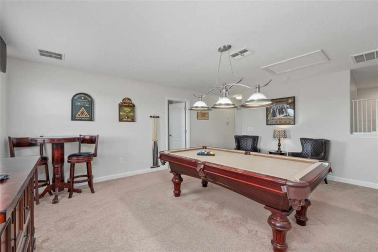 Let's talk about why this property actually makes sense as an investment. While other Champions Gate homes sit on the market overpriced, this one's priced to move—and it's legitimately one of the best price-per-square-foot deals you'll find for this caliber of property in the area. 3, 909 square feet, 6 bedrooms, 6 full bathrooms, with the ability to easily convert to 7-8 bedrooms if you want to maximize rental income. Here's what makes this different: It's previously owner-occupied, not a tired short-term rental that's been beat up by hundreds of guests. It's rental-ready today—no waiting, no renovations, just immediate cash flow potential. And it's sitting on an oversized lot with no rear neighbors and walking distance to the clubhouse, which is the kind of premium combo that lets you charge more per night. The layout is designed for groups. Open-concept main level that feels spacious, not cramped. A bonus entertainment loft with a pool table and TV. A garage game room with ping pong, air hockey, and video games. The private owner's suite has a sitting area and spa-like ensuite—the kind of space that shows well in photos and gets great reviews. Outside, the heated pool and spa sit on that private lot with no one behind you. The fully screened lanai gives you resort-style outdoor living. Fresh exterior paint means it shows beautifully. Inside, the chef's kitchen has granite counters and stainless appliances, large format tile throughout the common areas for easy maintenance, and two newer AC units so you're not dealing with comfort complaints. It comes fully furnished and decorator-ready. You could literally start taking bookings tomorrow. Champions Gate is one of the few communities that actually delivers on the amenity promise. You're 20 minutes to Disney and Celebration. Walking distance to the $16 million Oasis Clubhouse with multiple pools, lazy river, two-story waterslide, restaurant, and bars. 24/7 gated security. And your HOA handles landscaping, cable, internet, and security—which means less hassle for you and happier guests. Properties with this combination—size, location, privacy, income potential, and actual value pricing—don't sit around. The vacation rental market is crowded with mediocre properties. This one stands out. **If you're looking at Champions Gate for investment, you should see this one. Contact us for rental projections and virtual tour access.**
