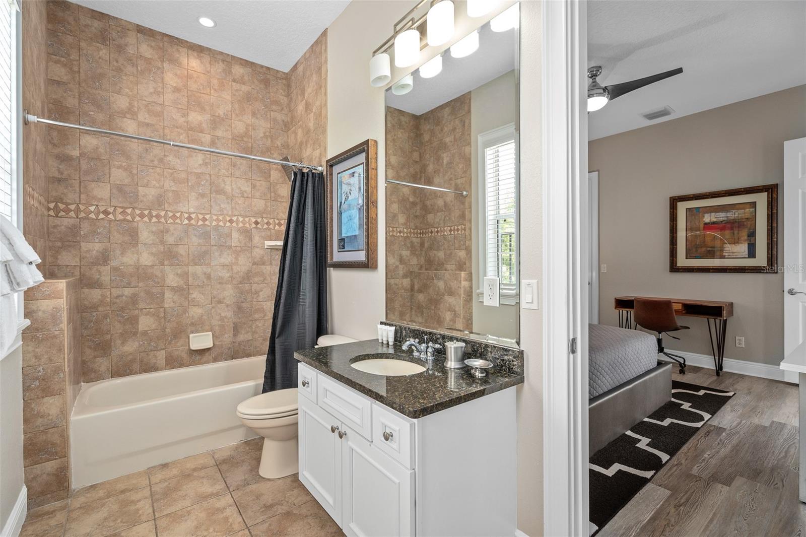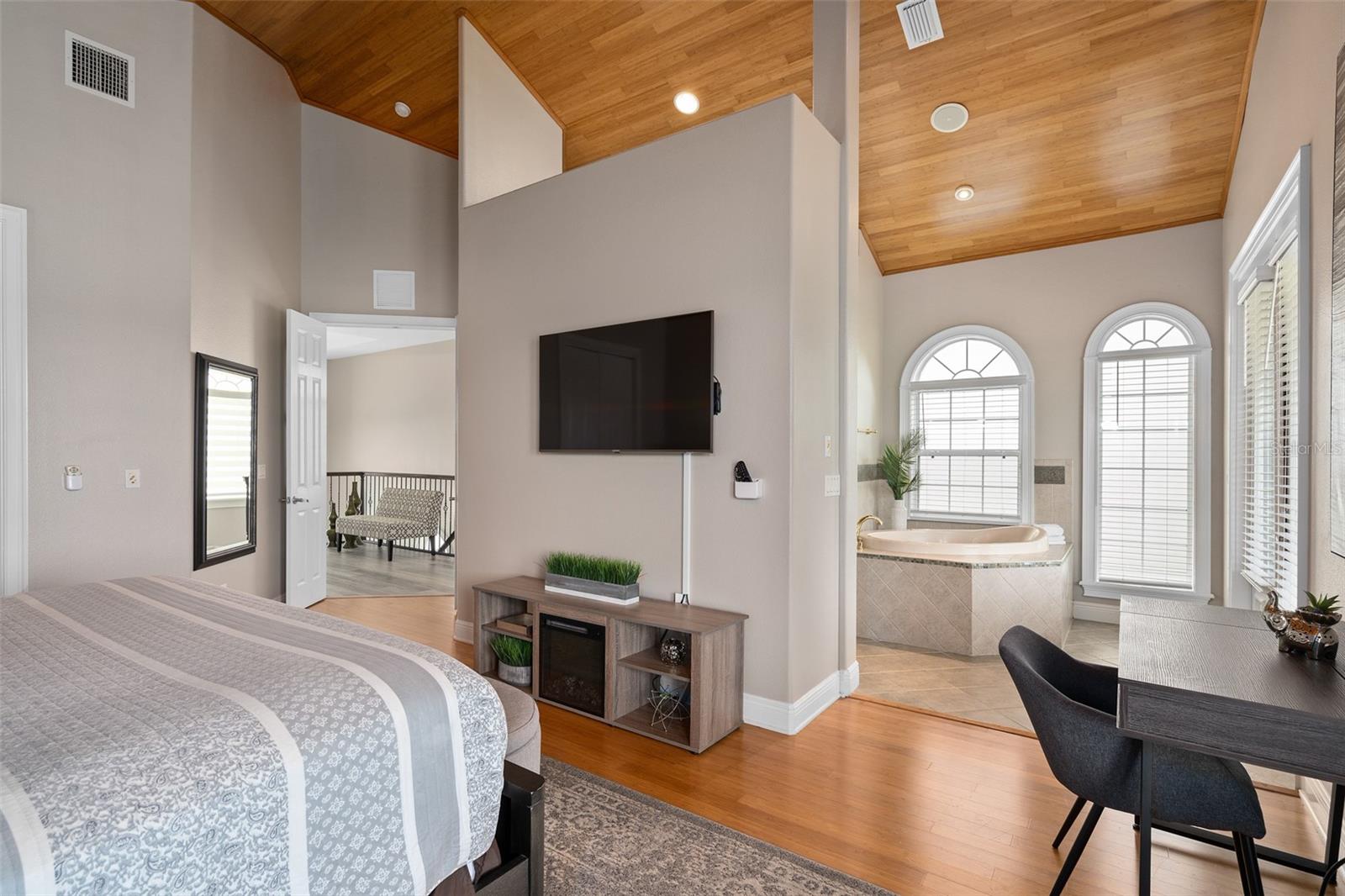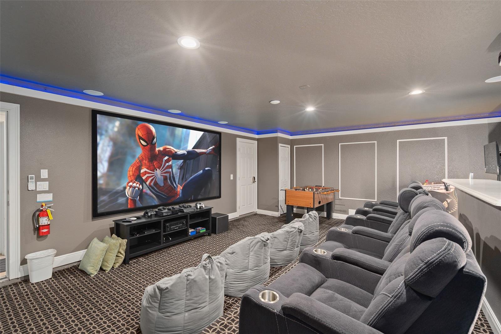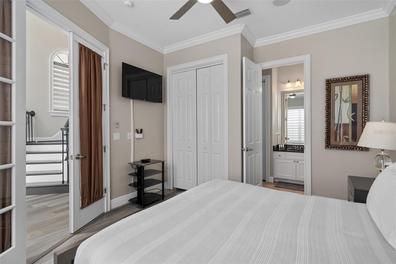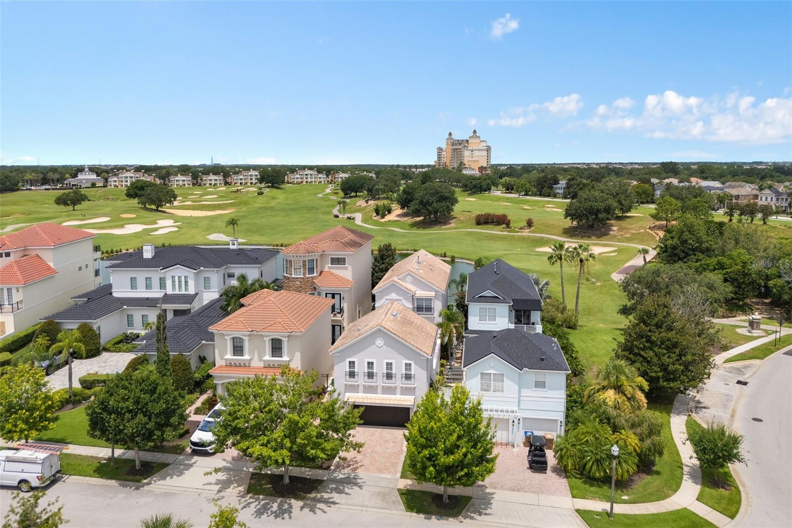 Active Club Membership! Offered fully furnished and turnkey! Positioned along the Arnold Palmer Legacy Golf Course, this 5-bedroom, 4.5-bathroom home offers panoramic water and golf views from multiple vantage points. Located near the center of Reunion Resort, the property provides quick access to the community’s restaurants and signature amenities. At the center of the home is a private courtyard featuring a heated pool, spa, summer kitchen, and outdoor shower. The main entry opens to a two-story foyer that leads to the kitchen, living and dining rooms, a powder room, and one bedroom suite with its own bathroom. Upstairs, the primary suite includes a cathedral ceiling, dual vanity, separate shower, soaking tub, and a private balcony overlooking the golf and water views. A third ensuite bedroom is also upstairs. The detached garage apartment, accessed from the courtyard, includes a kitchenette, two bedrooms, and a shared full bathroom, providing a private retreat. The 2-car garage has been converted into a media and game room, providing an additional 625 square feet of functional living space. Spanning 2, 300 acres just 7 miles south of Walt Disney World, Reunion Resort is the only destination in the world featuring 3 signature golf courses designed by Jack Nicklaus, Arnold Palmer and Tom Watson. Reunion is also home to the Leadbetter Golf Academy. Onsite dining options include Eleven, 7593 Chophouse, Traditions, Grande Lobby Sushi Bar, the Clubhouse, the Cove, and Drifters at the waterpark. The water park features a lazy river, slides, outdoor games, and an aquatic playground. The gift shop in the Grande offers sundries and Starbucks coffee. Complimentary shuttles to the Disney transportation and ticket center leave from the Grande daily. Additional amenities include Camp Reunion, the tennis and pickle ball center, bocce ball, miniature golf, foot golf, fitness center, playgrounds, dog park, various community pools including a roof top pool on the 11th floor of the Grande, and more. Zoning for short term rentals allows homeowners to rent their property by the night providing a great opportunity for investors. Reunion also works great as a primary residence or a private vacation retreat. The resort offers three separate 24 hour guard gated entries and one owner/resident only entry.