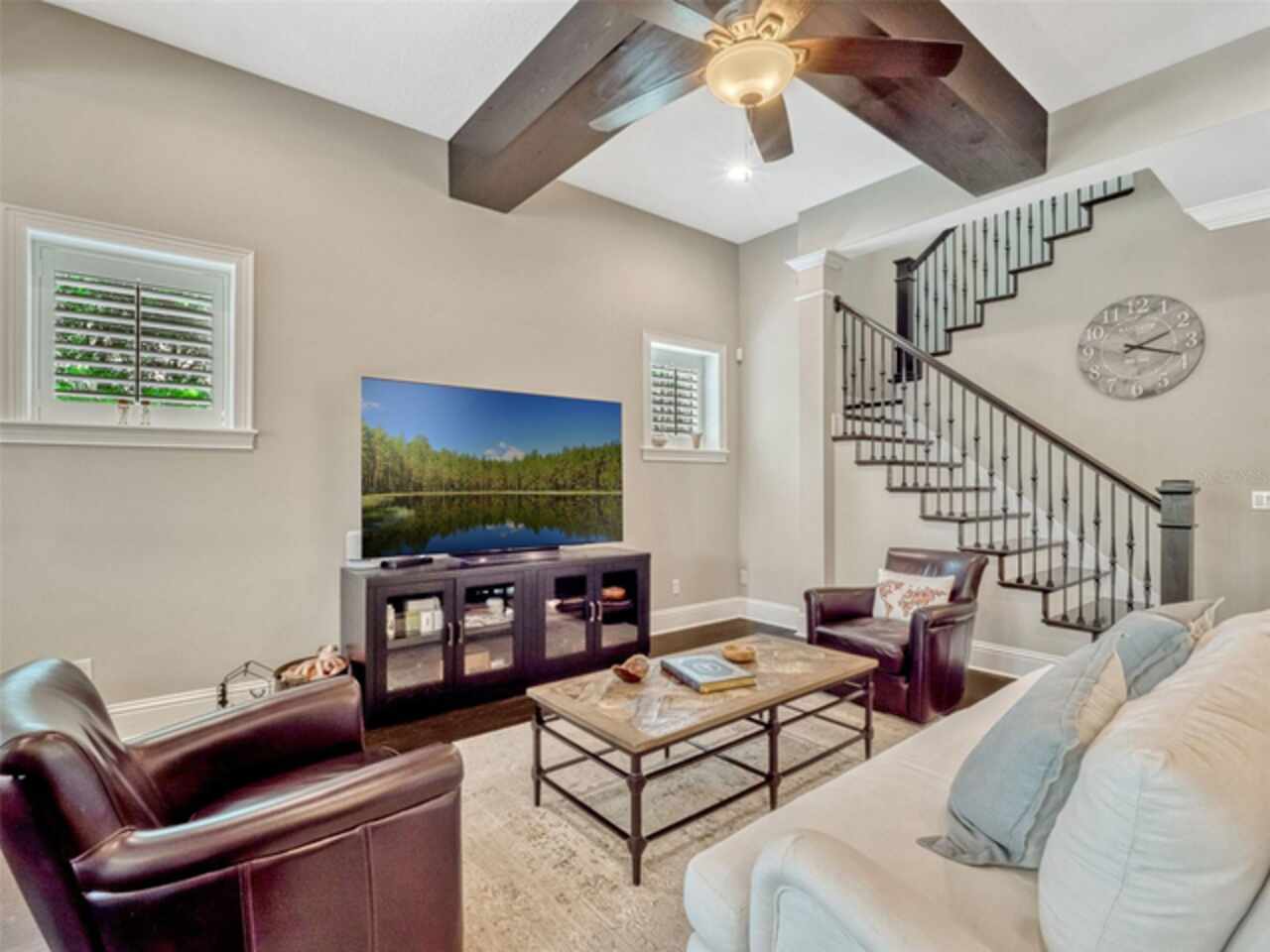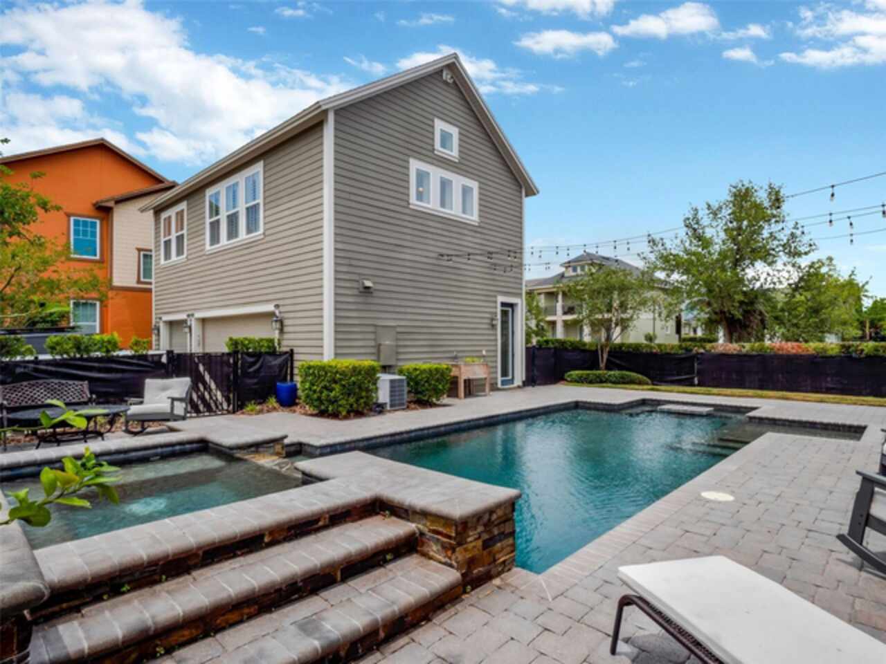 SELLER SAYS SELL! This home is a MUST See! You are walking distance to the highly sought after Laureate Park Elementary- No carpool lines!! This Reef model built by David Weekley offers a highly desired floor plan for the main house and a detached garage apartment. Situated on a Mew in Laureate Park, this home has a serene front view. Upon entry, you will adore the front wrap around side porch. As you enter the home you will appreciate the dedicated office space with detail trim work and a storage closet. Craftsman style built, this home features tall 12ft ceilings and stunning wood ceiling beamsThe kitchen, dining and family room are open concept and is excellent for entertaining and gathering. Your kitchen provides ample storage space, double stacked cabinets and a large center island. Gas cooktop, built in oven and microwave as well as a walk in pantry. The dining room features built in cabinetry for buffet storage and space that flows seamlessly from the kitchen. The family room is spacious and provides views out to your private pool. The primary suite is on the main floor and is large and your en-suite provides a very spacious and custom built out walk in closet. Noted is a large walk in shower with rain head shower and a dual sink vanity with great storage. The laundry room is on the main floor and offers more storage and a utility sink. Upstairs you will retreat to your secondary rooms which offer great natural light and space. The bonus loft area is ideal for a gym, extra office, play space or movie room. If you are looking for extra income, the garage apartment can be rented out of used for guest. This apartment is so spacious and features a kitchen, studio style bedroom and en-suite. This is one of the nicest apartments I have seen in Laureate Park! Your guest will enjoy private entry access as well! The swimming pool and spa are gorgeous! You have space for an outdoor chiminea or fireplace, great lounging space and the back yard is fully fenced in. 3 car garage is detached and has updated electrical which is great for a workshop space and also features EV charging outlet. The home has been well maintained and offers upgrades such as Plantation Shutters, Crown Molding and Engineered Wood Flooring. This home is walkable to the Laureate Park Elementary, convenient to the Nona Adventure Park and easy access to the dog park and community garden. HOA amenities include fitness center, aquatic center, basketball and tennis court, high speed internet is included as well! You can enjoy Boxi Park, Canvas and the small businesses in Laureate Park. Nemours Children's Hospital, UCF Medical School, The VA Hospital and the USTA is less than 5 minutes away. You will enjoy plenty of walking paths and bike trails. Easy access to the 417 and the 528, you are less than 20 minutes to MCO (Orlando International Airport). Nature lovers will enjoy being minutes to Moss State Park and plenty of lakes for fishing, kayaking and paddle boarding. Golfers will enjoy the choices of local and private courses in the immediate area. Downtown Orlando is approximately a 25 minute drive and if you like the Coast, that is about a 45 minute drive away! Watch the walk through video for an immersive tour of this home and call for your private showing!