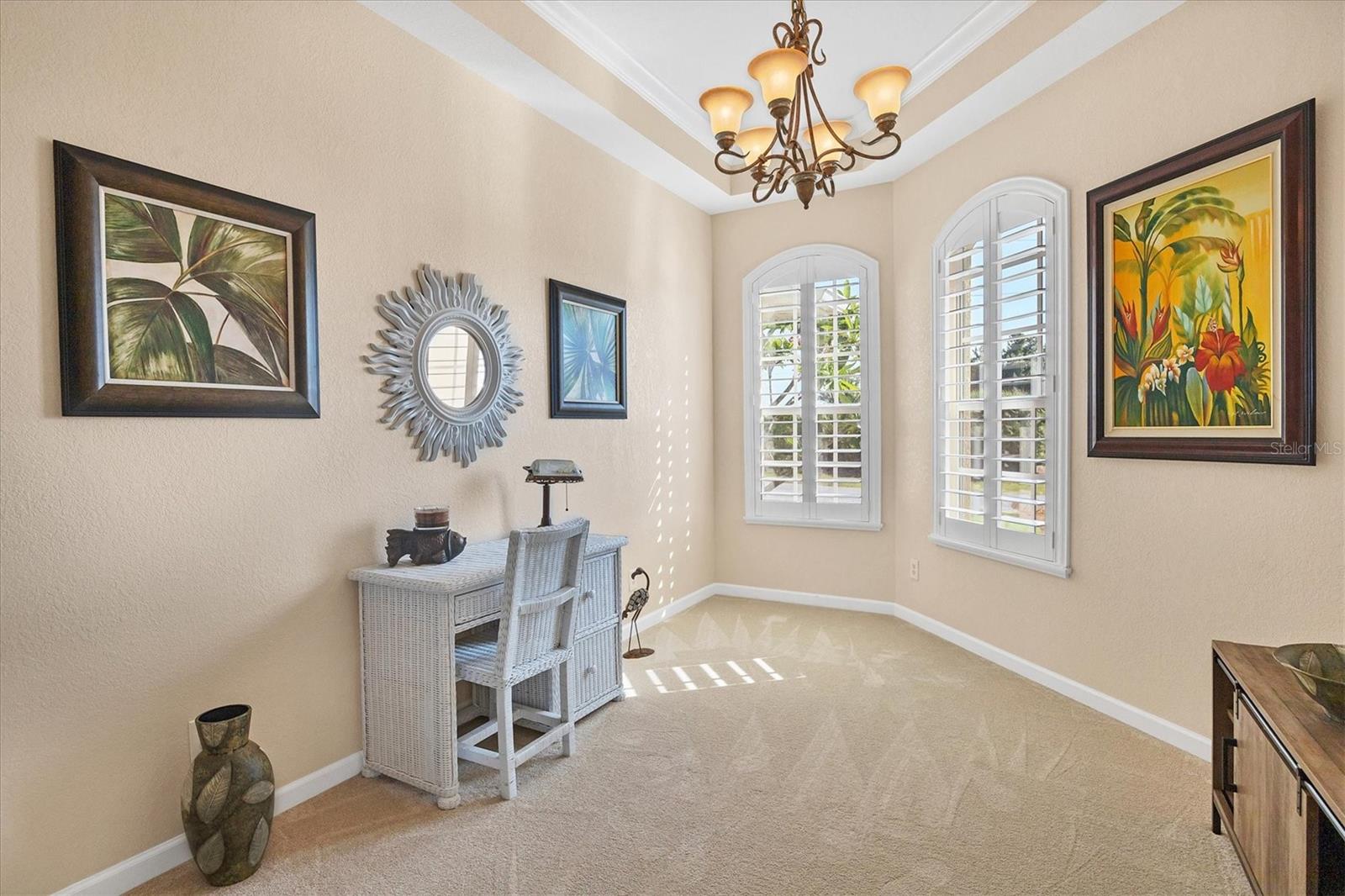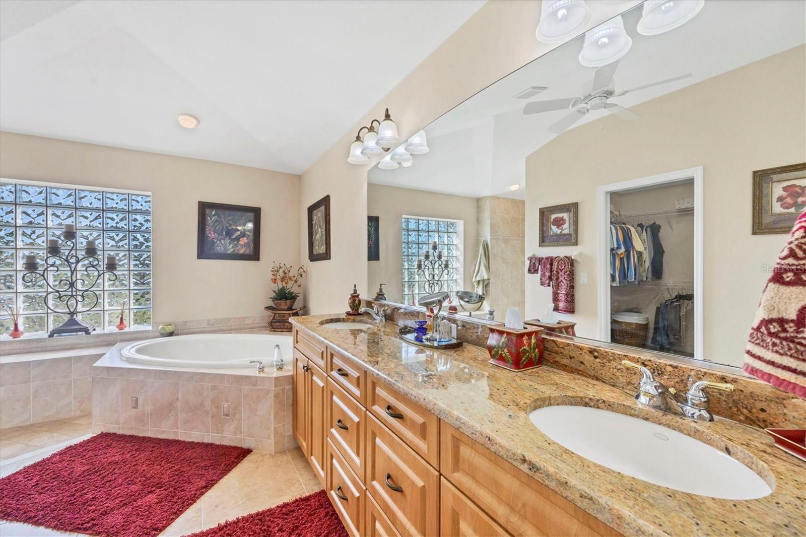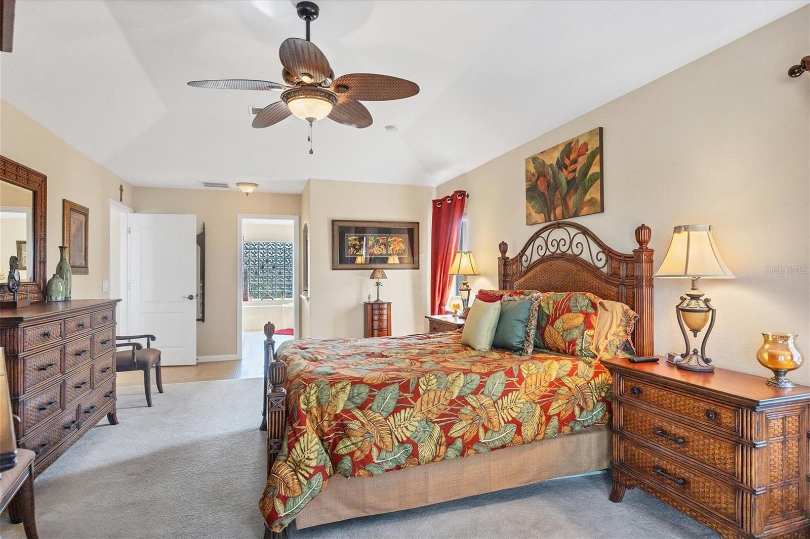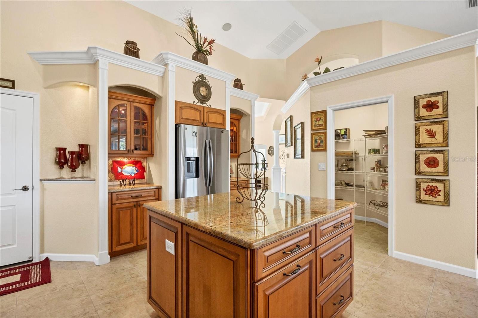 Built-in Features, Ceiling Fans(s), High Ceilings, Kitchen/Family Room Combo, Open Floorplan, Primary Bedroom Main Floor, Solid Wood Cabinets, Split Bedroom, Stone Counters, Tray Ceiling(s), Vaulted Ceiling(s), Walk-In Closet(s), Window Treatments