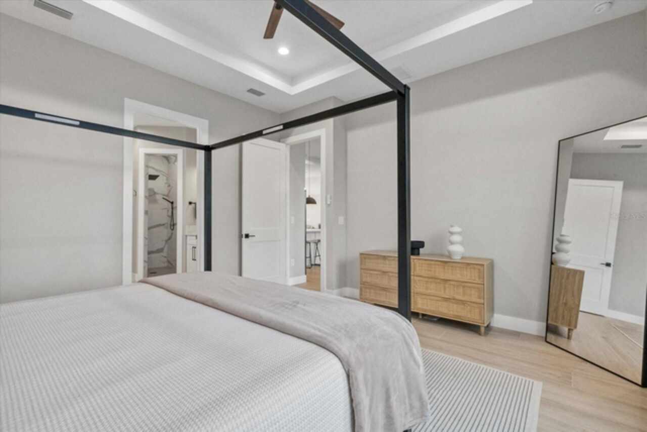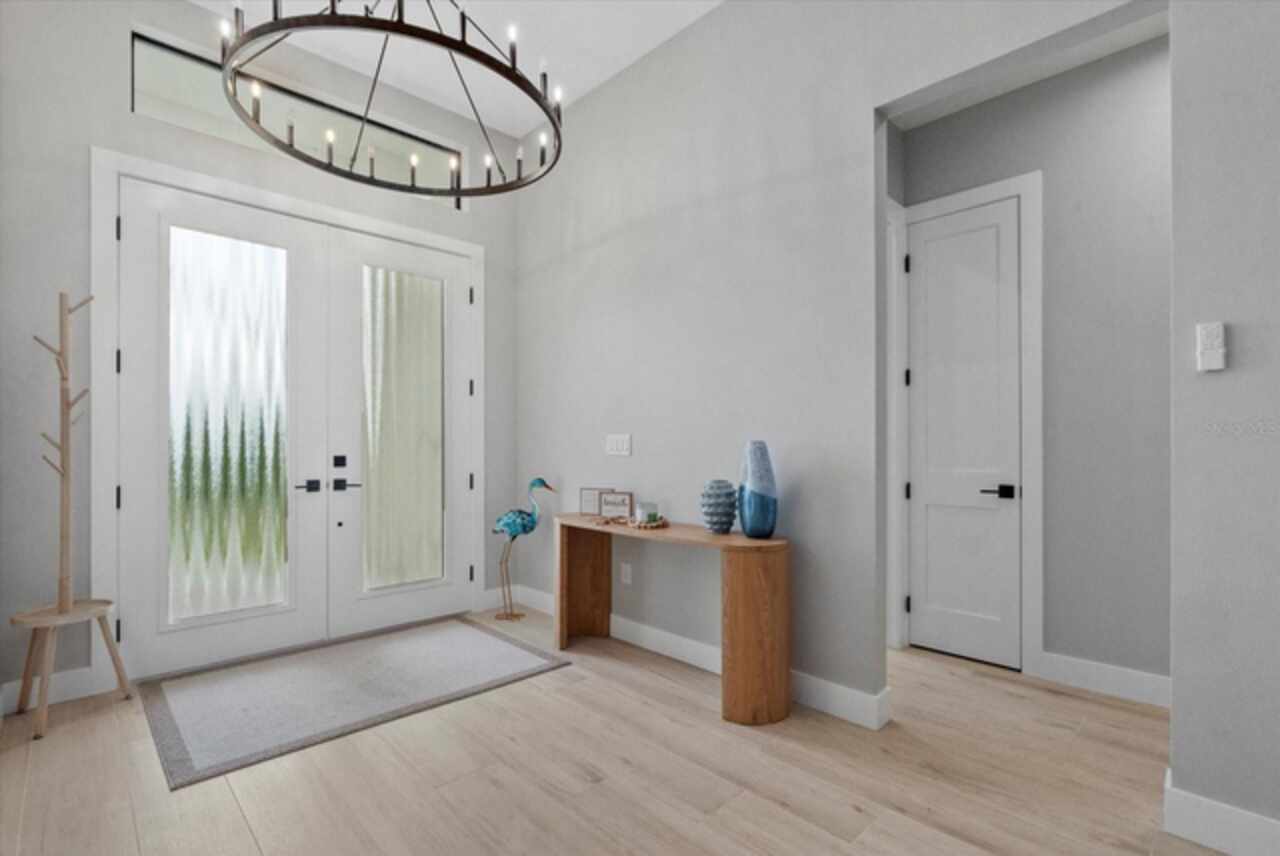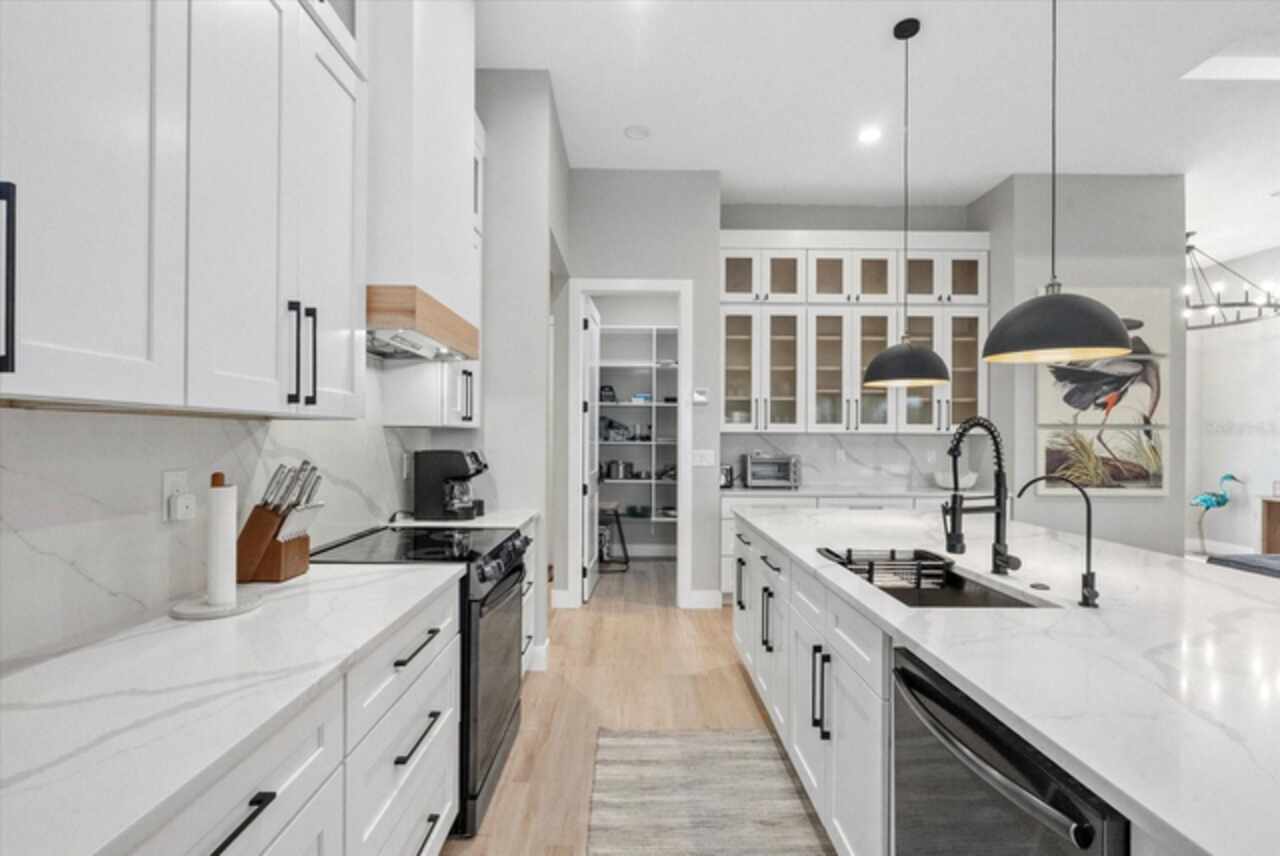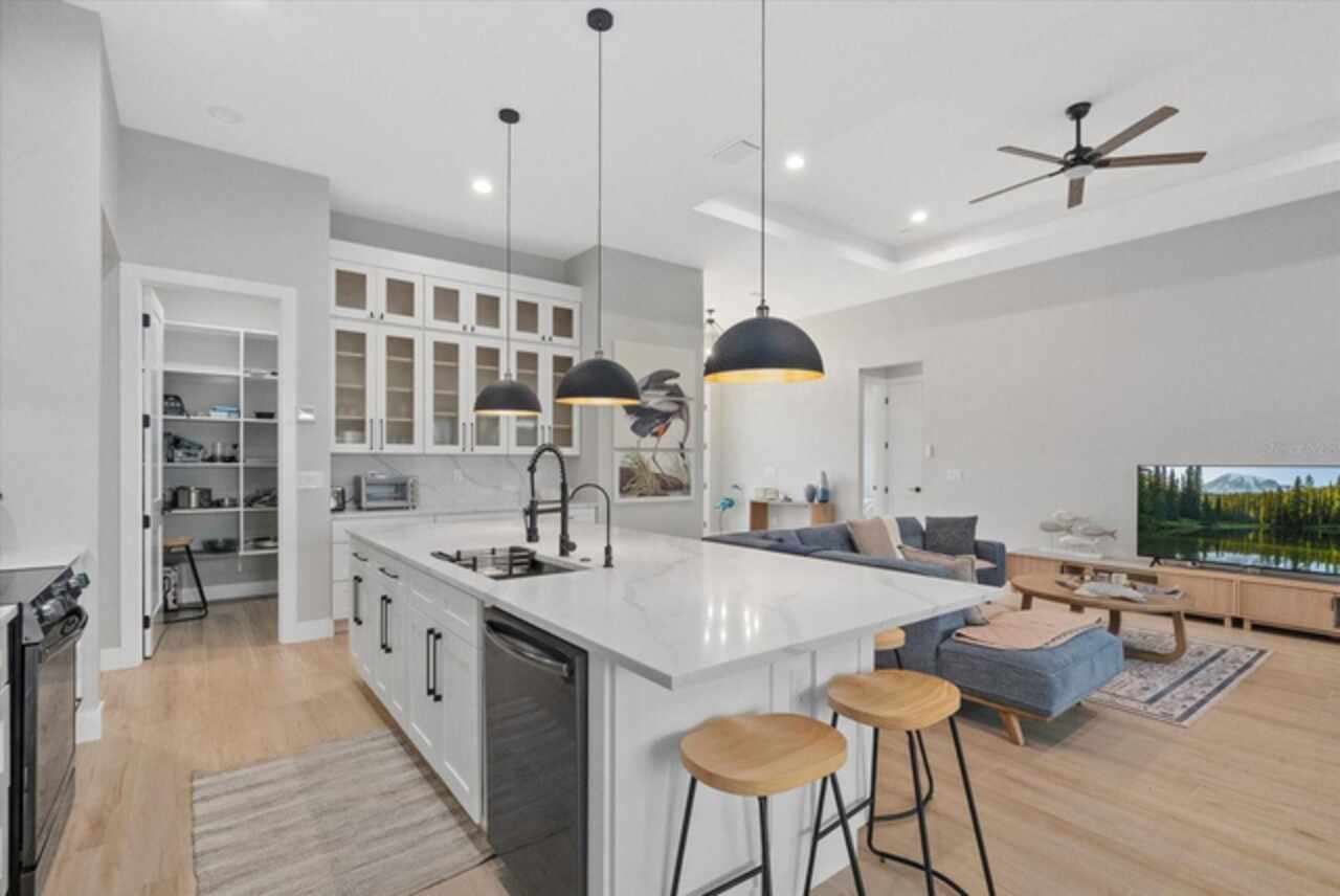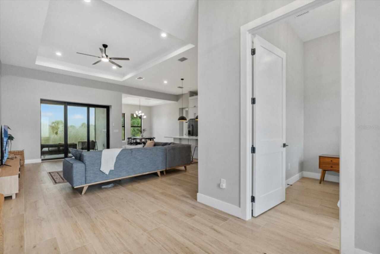 Newly built in 2024 and move-in ready! This stunning WATERFRONT home with GULF ACCESS is packed with high-end features and modern coastal charm. Offering 3 bedrooms + a den, 3 bathrooms, and 2, 166 sq ft of living space, the home is built on a 4-course stem wall for added elevation and features IMPACT WINDOWS AND DOORS throughout. A grand entrance welcomes you with modern GLASS DOUBLE DOORS, leading into a bright and airy space with SOARING CEILINGS, 8’ INTERIOR DOORS, and wood-look plank TILE flooring that flows seamlessly throughout. The chef’s kitchen is a showstopper, featuring QUARTZ COUNTERTOPS with a WATERFALL feature on the island, soft-close cabinetry, and a WALK IN PANTRY with built-in shelving—perfect for both function and style. The primary suite is a true retreat, featuring spacious walk-in closets and a spa-inspired en-suite bathroom with designer tile, a DOUBLE VANITY, and a luxurious walk-in TILED shower. The split floor plan ensures privacy, with two additional bedrooms located on the opposite side of the home—one of which includes its own private en-suite bath, ideal for guests or multigenerational living.The home also features a pavered driveway, pavered walkway all around the home, canal-fed irrigation system, and gutters all around the home for added function and curb appeal. Step outside to take in breathtaking canal views and embrace the best of Florida living—boating, fishing, kayaking, or simply relaxing in the peace and privacy of your own turnkey waterfront retreat. Nestled in the sought-after boating community of South Gulf Cove, this location offers direct access to the Gulf and is just minutes from world-class beaches, top-rated golf courses, and some of the best fishing in Southwest Florida. With an optional HOA of just $120/ year, South Gulf Cove combines relaxed coastal living with unbeatable convenience—a true hidden gem for waterfront lifestyle seekers.