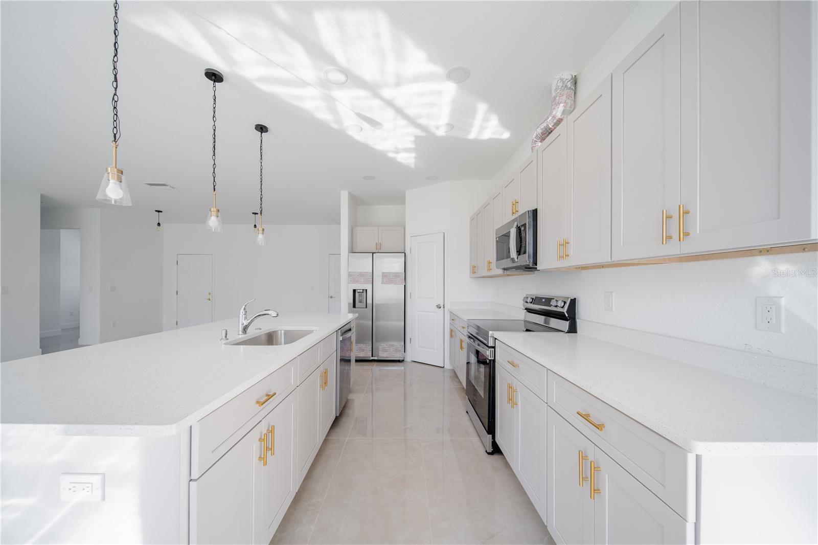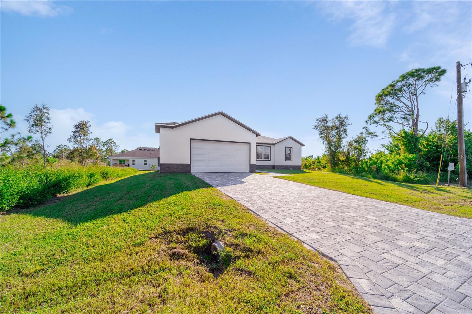 Welcome to 14191 Onslow, a stunning custom-built 4-bedroom, 2-bath home that blends contemporary design with comfort and durability. Featuring 9’4” ceilings throughout, this residence feels spacious and bright from the moment you step inside. The open-concept layout showcases premium 48x24 porcelain tile flooring that flows seamlessly through the entire home, including both bathrooms with elegant porcelain-tiled showers. The chef’s kitchen impresses with premium quartz countertops, a large sink, and Samsung stainless steel appliances, offering both functionality and modern flair. Every detail has been carefully crafted — from the vinyl impact windows and doors that provide peace of mind and energy efficiency, to the paver driveway and porcelain-tiled front porch that enhance the home’s curb appeal. Built with a high elevation to protect against flooding, this property also features a two-car garage, ensuring ample space for vehicles and storage. With 1, 750 sq. ft. of living area (2, 188 total sq. ft.), this home offers the perfect balance of style, space, and quality craftsmanship. Don’t miss your chance to own this exceptional home designed for modern living in one of the most desirable areas of Southwest Florida.
