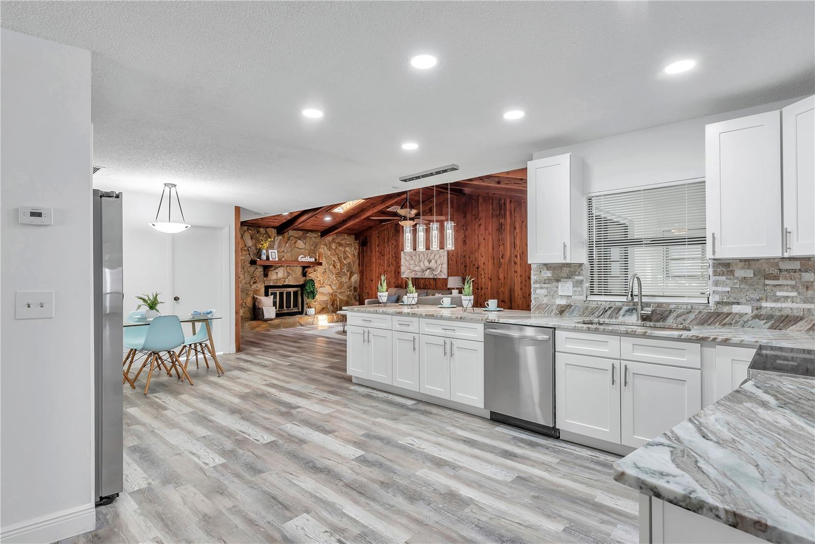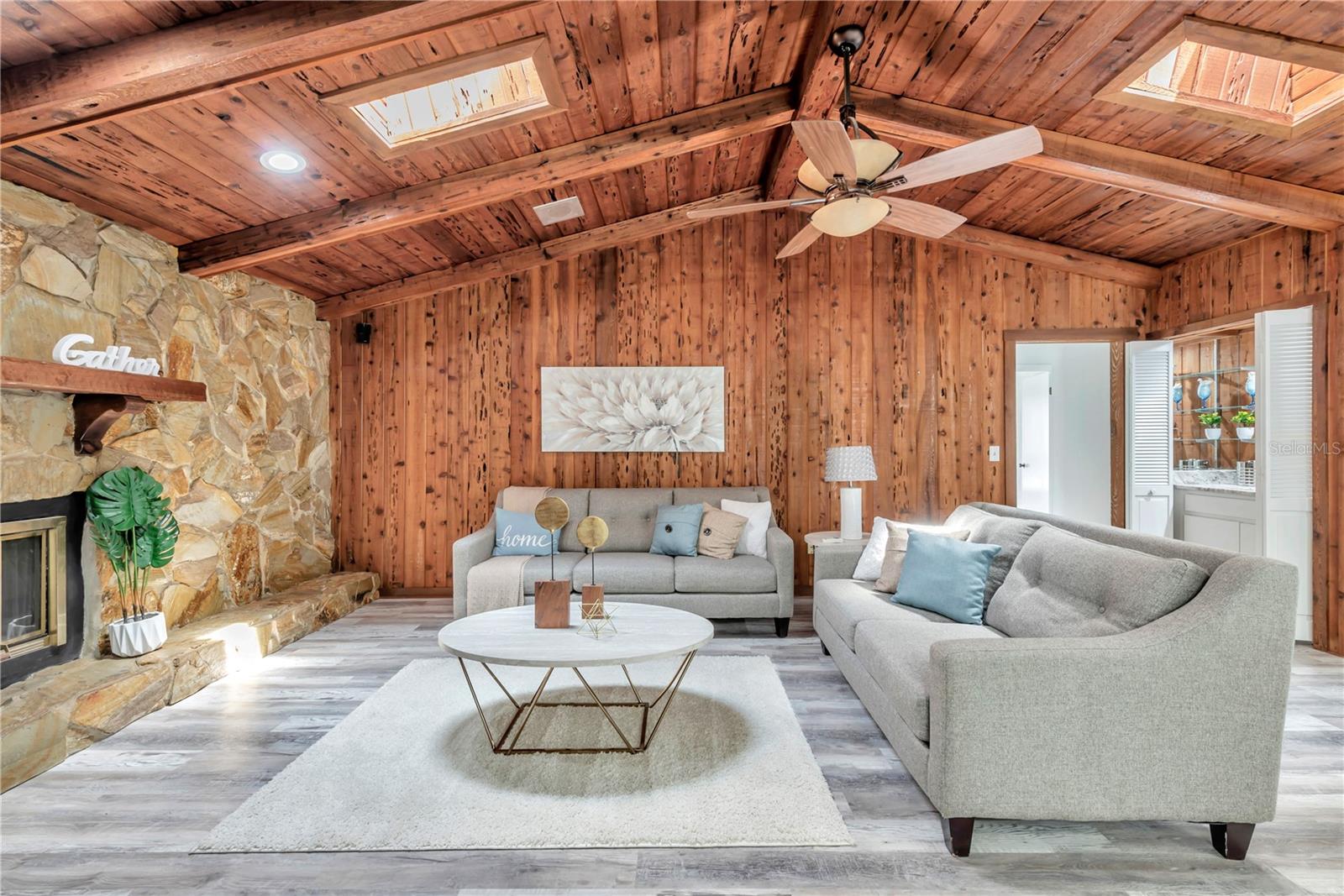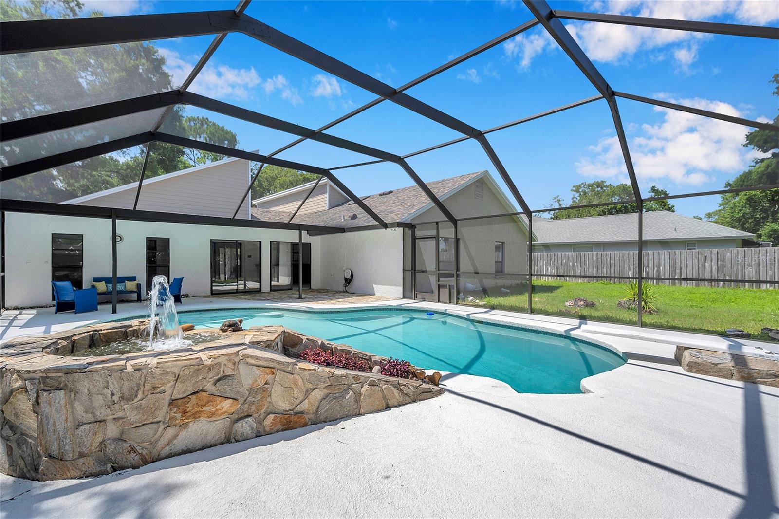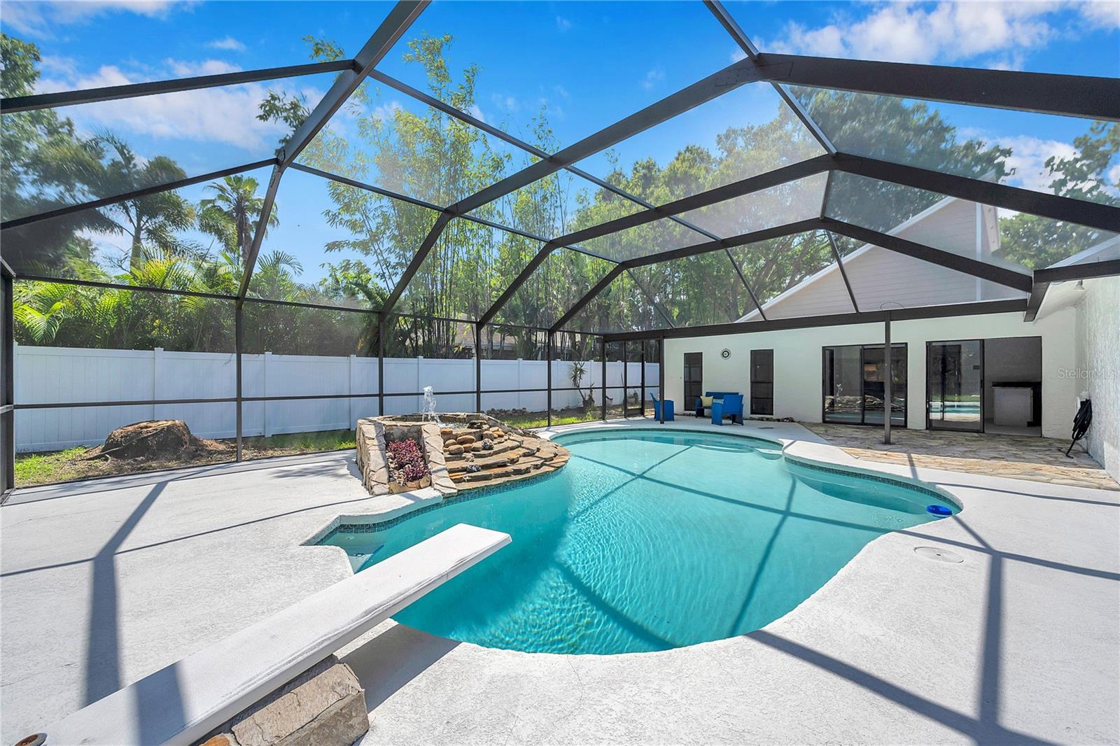 Welcome to this newly renovated BLOCK construction POOL home in the well desired Golfing community of Carrollwood Village. Arriving at the home you first notice the great curb appeal featuring beautiful landscaping. Next you'll notice the new roof (June 2022) fresh coat of paint and new hardie board siding. Once inside you'll appreciate the new flooring throughout complimenting the large split floorplan. The kitchen is also new with wood cabinets, granite, breakfast bar, decorative backsplash and appliances. Off the side of the kitchen is the great room with a wood burning fireplace, wet bar and vaulted peaked ceilings with the perfect amount of natural sunlight from the new skylights. Also located on this side of the home you will find additional bedrooms, the guest bathroom and utility room with storage. On the other side of the home you will enjoy the family room and master suite. The master suite has an inground spa easily accessed from the sliding glass door. The en suite features dual vanities, granite countertops, shower stall and walk in closet with built ins. The outdoor kitchen and pool are centrally located outside the home with access points from multiple points of the home. The outdoor kitchen is the perfect spot for outdoor grilling, entertaining or just relaxing. When its time to cool off from the Florida sun, the deep pool with diving board might be the best spot or even taking a minute to listen to the rock fountain. Not only do you get a great pool to cool off, you also get a large mostly fenced yard. The communities amazing park has exercise stations, walking/jogging paths, dog parks, splash area, pavilions, and restrooms all begging to be used. Close to Busch Gardens, Adventure Island, shopping, many restaurants, good schools, The Tampa Grand Prix as well as easy access to I-275, Veterans expressway, under 15 min to Tampa International Airport, and 30 minutes from the beaches! Schedule your showing today and book your movers as this home is move in ready.