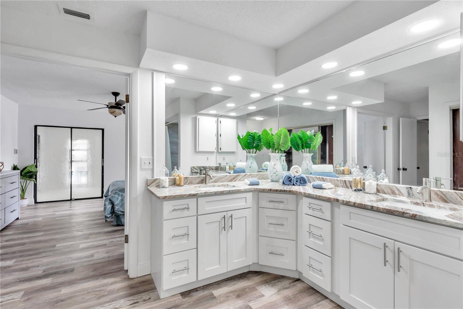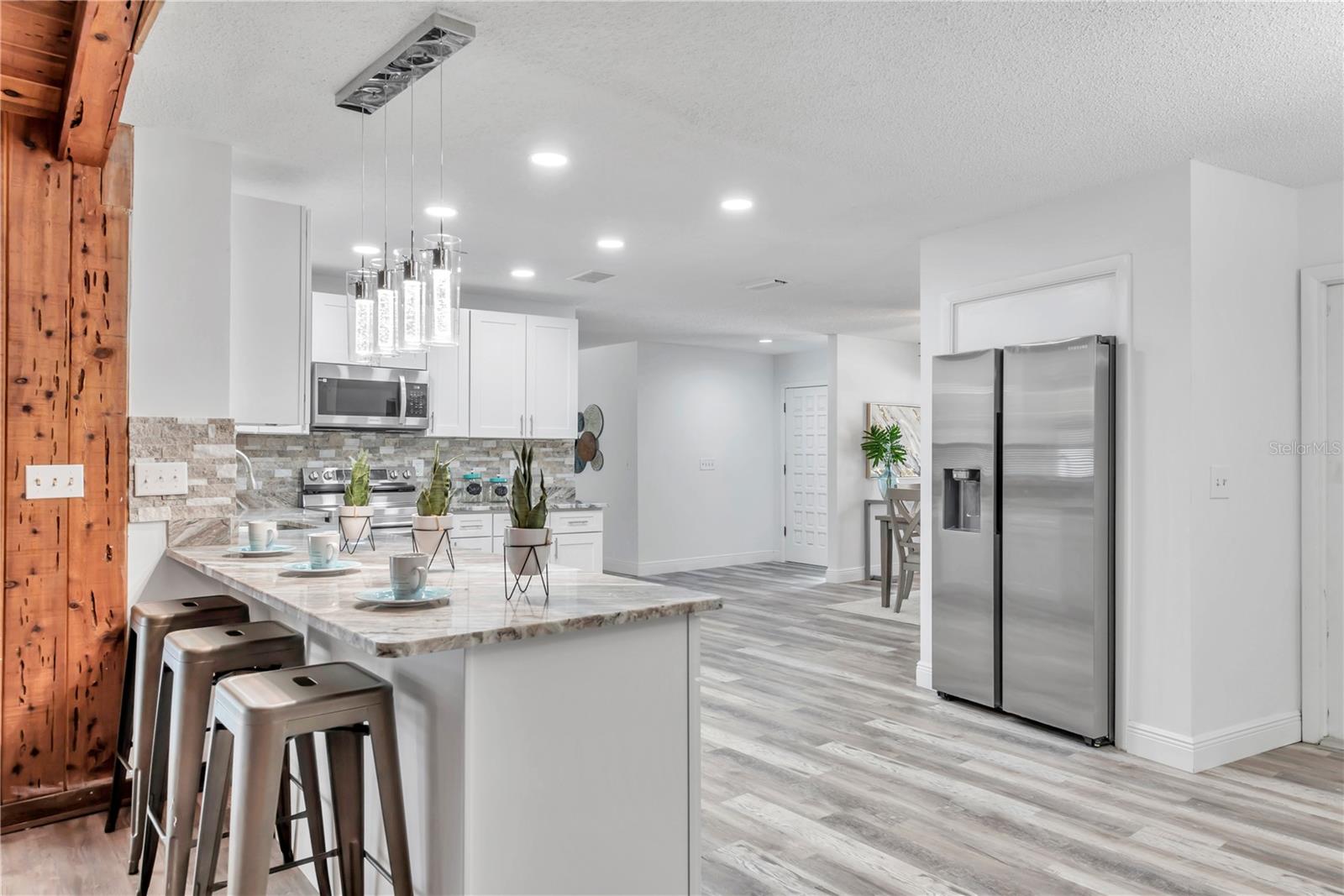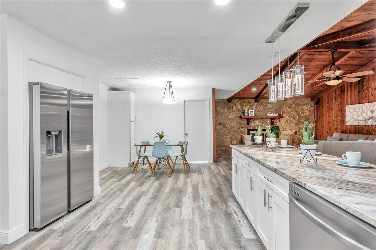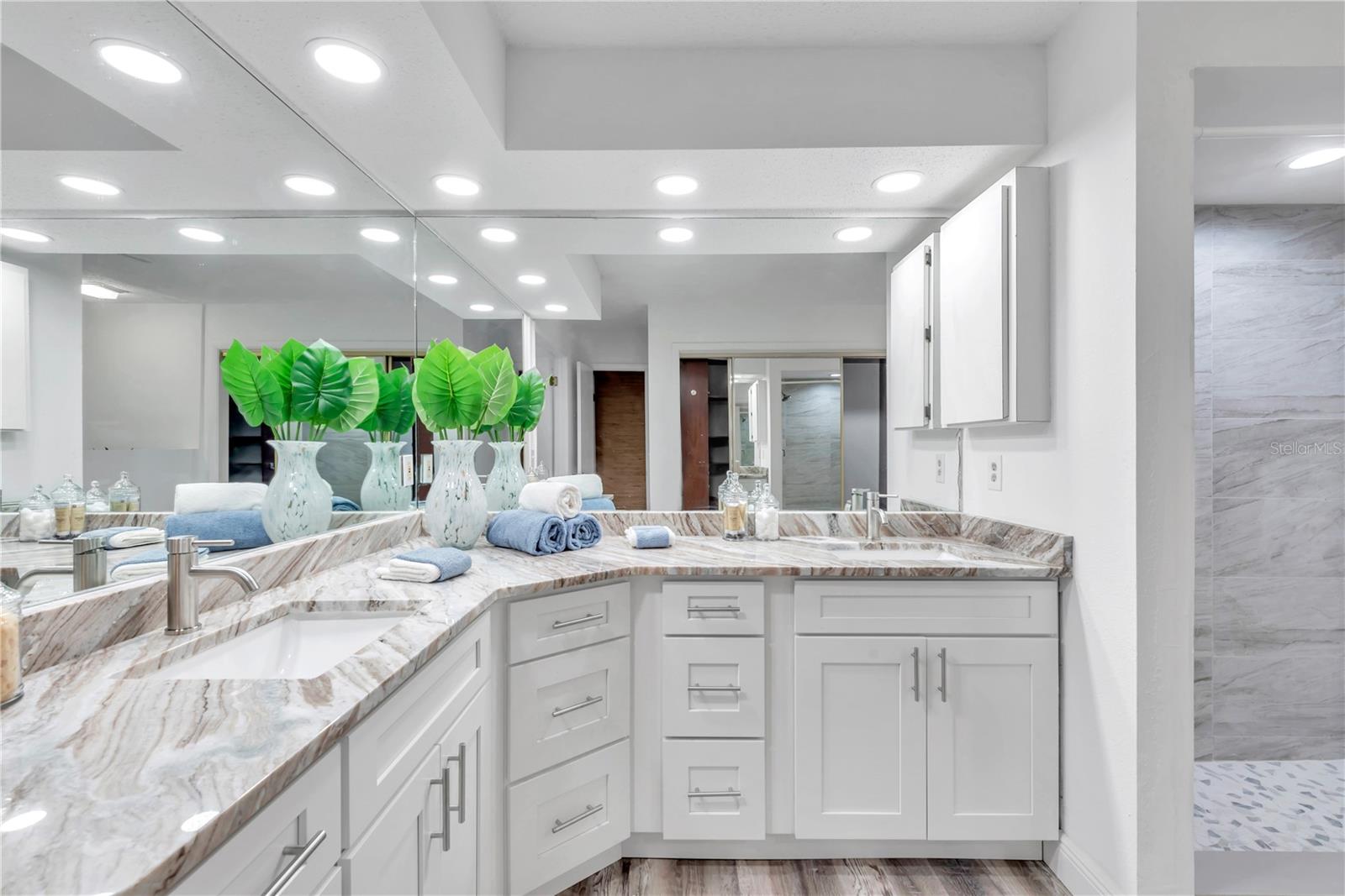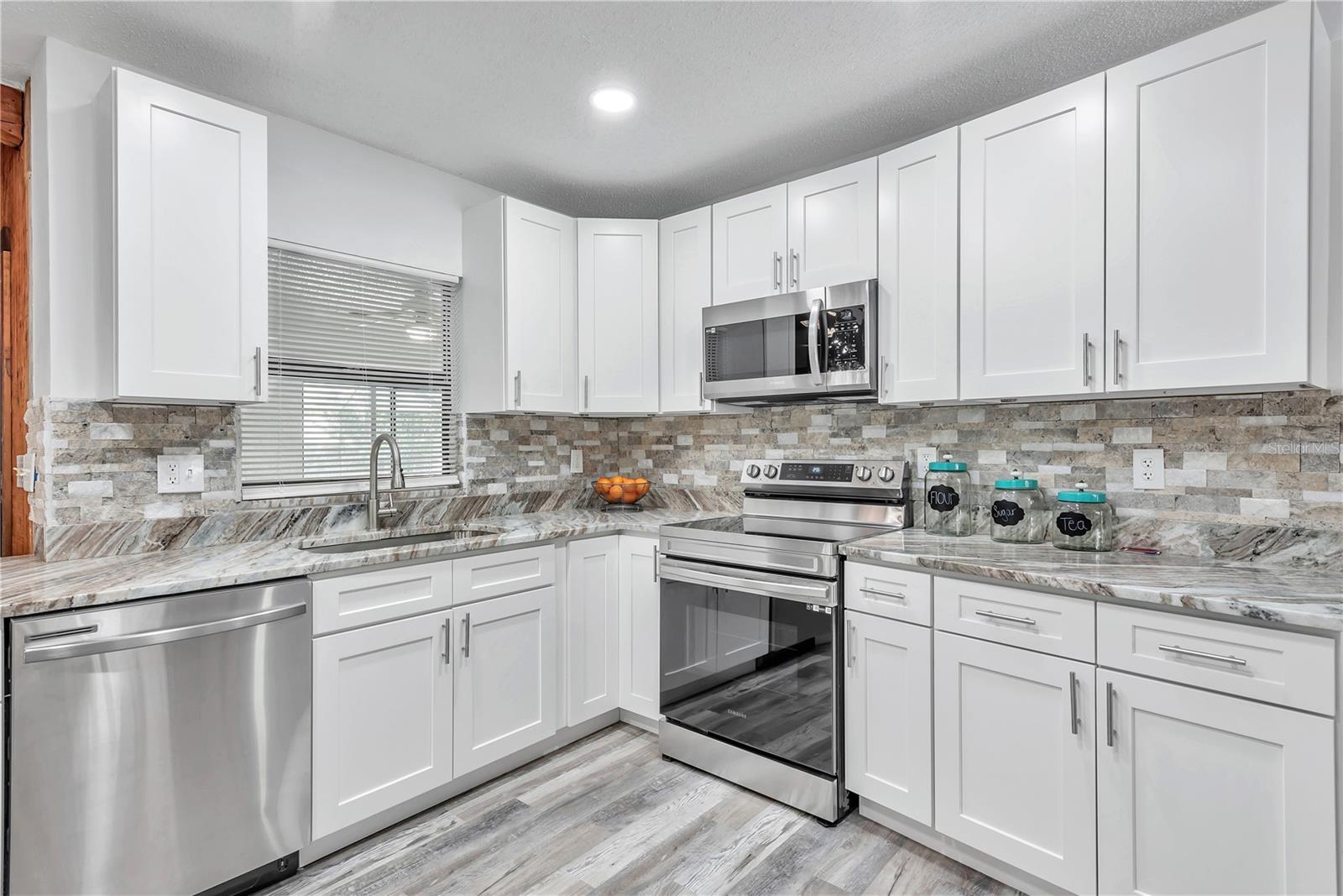 Welcome to this newly renovated BLOCK construction POOL home in the well desired Golfing community of Carrollwood Village. Arriving at the home you first notice the great curb appeal featuring beautiful landscaping. Next you'll notice the new roof (June 2022) fresh coat of paint and new hardie board siding. Once inside you'll appreciate the new flooring throughout complimenting the large split floorplan. The kitchen is also new with wood cabinets, granite, breakfast bar, decorative backsplash and appliances. Off the side of the kitchen is the great room with a wood burning fireplace, wet bar and vaulted peaked ceilings with the perfect amount of natural sunlight from the new skylights. Also located on this side of the home you will find additional bedrooms, the guest bathroom and utility room with storage. On the other side of the home you will enjoy the family room and master suite. The master suite has an inground spa easily accessed from the sliding glass door. The en suite features dual vanities, granite countertops, shower stall and walk in closet with built ins. The outdoor kitchen and pool are centrally located outside the home with access points from multiple points of the home. The outdoor kitchen is the perfect spot for outdoor grilling, entertaining or just relaxing. When its time to cool off from the Florida sun, the deep pool with diving board might be the best spot or even taking a minute to listen to the rock fountain. Not only do you get a great pool to cool off, you also get a large mostly fenced yard. The communities amazing park has exercise stations, walking/jogging paths, dog parks, splash area, pavilions, and restrooms all begging to be used. Close to Busch Gardens, Adventure Island, shopping, many restaurants, good schools, The Tampa Grand Prix as well as easy access to I-275, Veterans expressway, under 15 min to Tampa International Airport, and 30 minutes from the beaches! Schedule your showing today and book your movers as this home is move in ready.