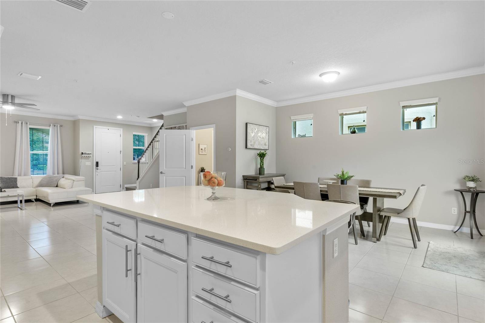 Welcome to your new home in Lakeview Pointe – Horizon West! Built in 2016, this beautifully maintained 3-bedroom, 2.5-bath home offers modern finishes, a functional floor plan, and a highly desirable location in Winter Garden. The open-concept main living area features a bright kitchen with quartz countertops, shaker-style cabinets, stainless steel appliances, a spacious island, and a walk-in pantry – perfect for entertaining and everyday living. Upstairs, you’ll find three spacious bedrooms including the owner’s suite with double closets, a private ensuite bath with dual sinks, and plenty of natural light. Enjoy Florida living year-round in the covered lanai overlooking the private backyard – ideal for relaxing or hosting gatherings. Additional highlights include a 2-car garage, central AC, and a low-maintenance lifestyle with lawn care included in the HOA. Lakeview Pointe offers resort-style amenities including a sparkling community pool, splash pad, playground, fitness center, and dock access to Lake Huckleberry. Conveniently located near Hamlin Town Center, shopping, dining, SR-429, and just minutes to Disney. Zoned for top-rated schools. This home combines style, comfort, and location – ready for its new owner. Don’t miss this opportunity to live in one of Winter Garden’s most sought-after communities!