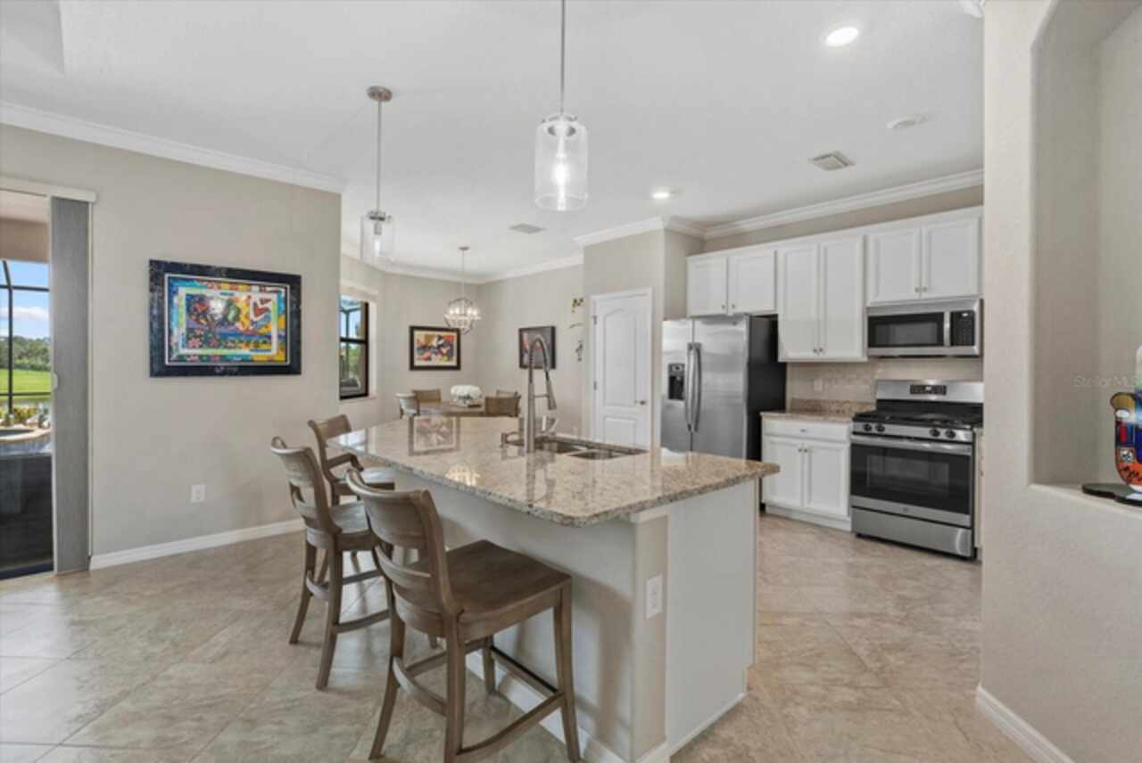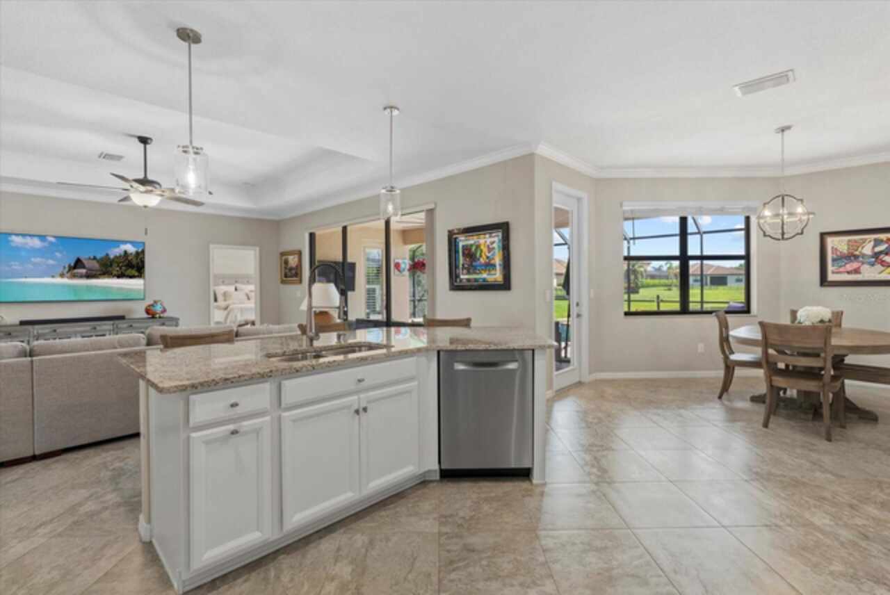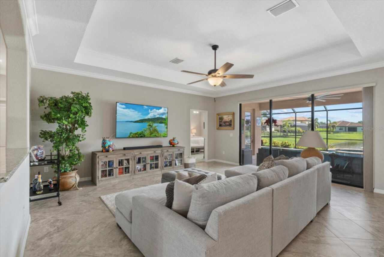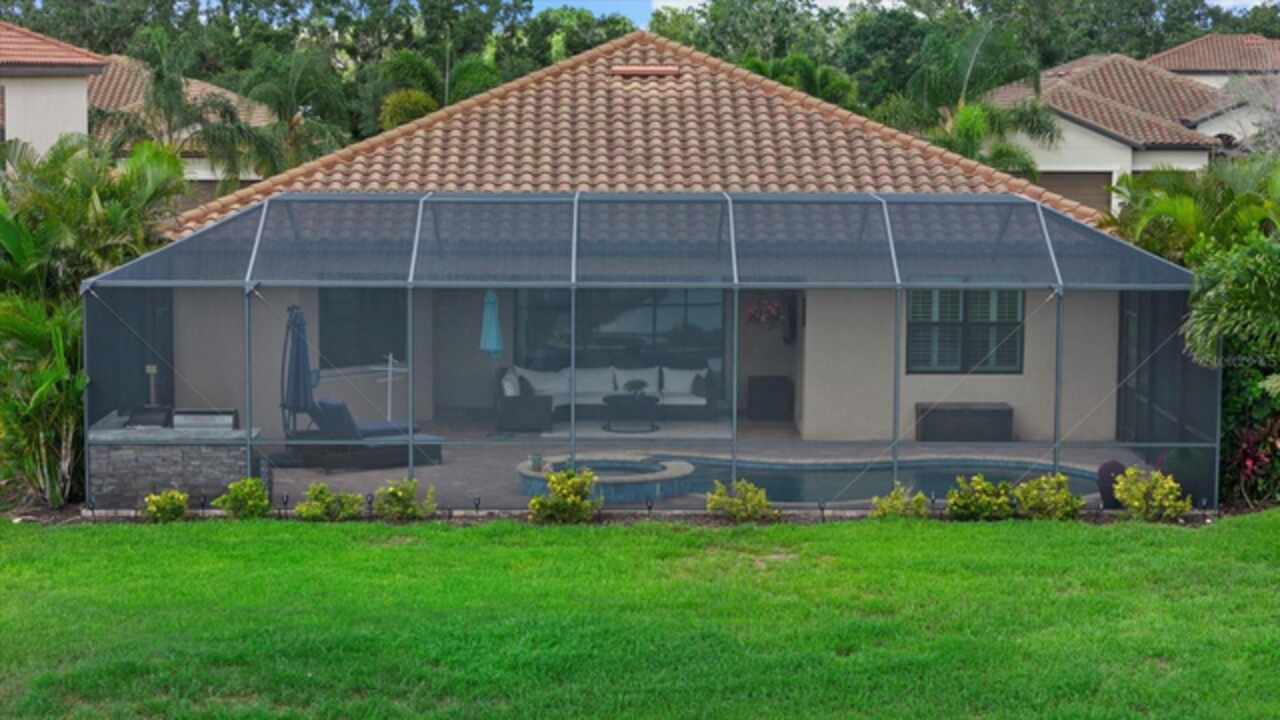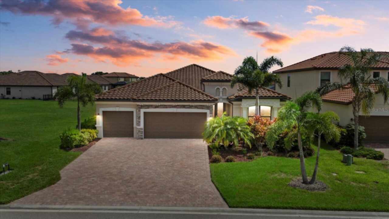 Welcome to the Beautifully Appointed Lennar Princeton II in Savanna at Lakewood Ranch. This highly desirable model offers the perfect blend of comfort, design, and functionality. With 4 bedrooms and 2 baths arranged as a split floor plan, you’ll enjoy privacy and quiet separation between the primary suite and guest rooms, ideal for families or hosting visitors. The modern kitchen features solid wood cabinetry, granite countertops, and a layout that’s perfect for preparing meals or entertaining guests. Elegant design details throughout the home include tray ceilings in the living room, architectural niches, and a formal dining space enhanced by classic columns, creating a comfortable and inviting atmosphere. From the kitchen and breakfast nook, your view opens up to the sparkling pool, large paver patio, and screened lanai, all set against a backdrop of gleaming lake views and breathtaking tropical sunsets. As you arrive, the stacked stone accents on the upgraded front elevation, along with the three-car garage, immediately make a strong impression. The approach to the home is equally appealing, with lush landscaping and a perfectly manicured lawn—all maintained by the community for low-maintenance living. Located in the gated neighborhood of Savanna at Lakewood Ranch, you’ll be just minutes from everything this vibrant master-planned community has to offer—including Waterside, Lakewood Ranch Country Club, top-rated schools, and everyday conveniences. This newer construction home provides added peace of mind, knowing the structural and mechanical components are in excellent condition. Don’t miss this opportunity to own a piece of paradise in one of the most sought-after neighborhoods in Lakewood Ranch. Schedule your private showing today.