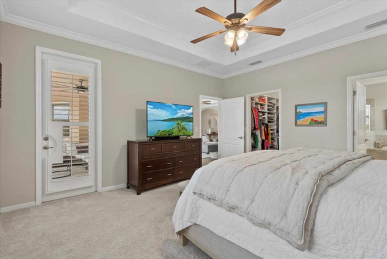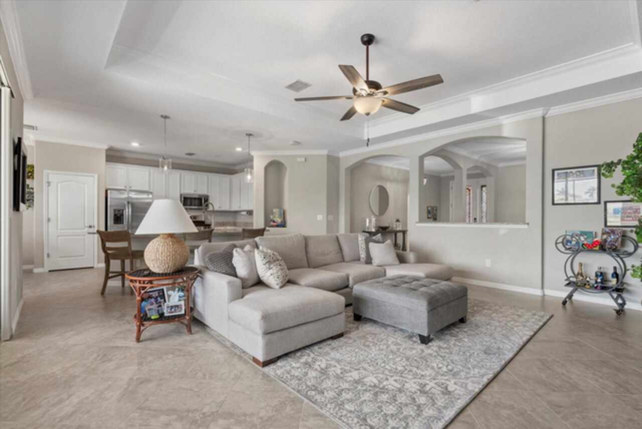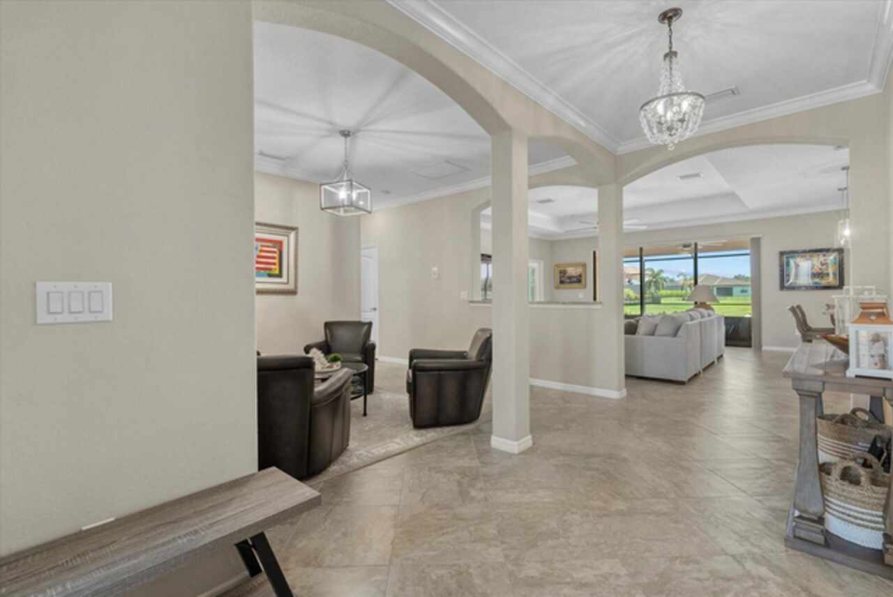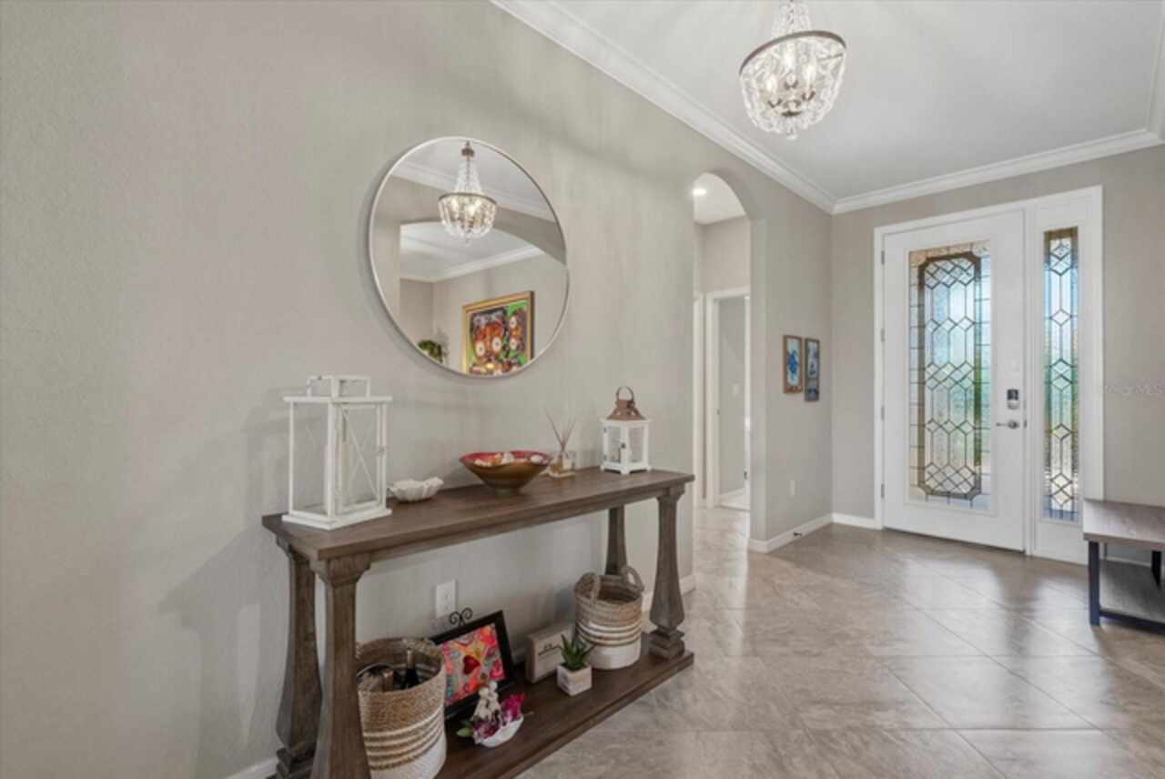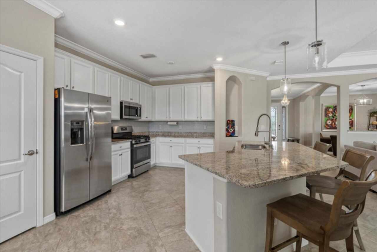 Welcome to the Beautifully Appointed Lennar Princeton II in Savanna at Lakewood Ranch. This highly desirable model offers the perfect blend of comfort, design, and functionality. With 4 bedrooms and 2 baths arranged as a split floor plan, you’ll enjoy privacy and quiet separation between the primary suite and guest rooms, ideal for families or hosting visitors. The modern kitchen features solid wood cabinetry, granite countertops, and a layout that’s perfect for preparing meals or entertaining guests. Elegant design details throughout the home include tray ceilings in the living room, architectural niches, and a formal dining space enhanced by classic columns, creating a comfortable and inviting atmosphere. From the kitchen and breakfast nook, your view opens up to the sparkling pool, large paver patio, and screened lanai, all set against a backdrop of gleaming lake views and breathtaking tropical sunsets. As you arrive, the stacked stone accents on the upgraded front elevation, along with the three-car garage, immediately make a strong impression. The approach to the home is equally appealing, with lush landscaping and a perfectly manicured lawn—all maintained by the community for low-maintenance living. Located in the gated neighborhood of Savanna at Lakewood Ranch, you’ll be just minutes from everything this vibrant master-planned community has to offer—including Waterside, Lakewood Ranch Country Club, top-rated schools, and everyday conveniences. This newer construction home provides added peace of mind, knowing the structural and mechanical components are in excellent condition. Don’t miss this opportunity to own a piece of paradise in one of the most sought-after neighborhoods in Lakewood Ranch. Schedule your private showing today.