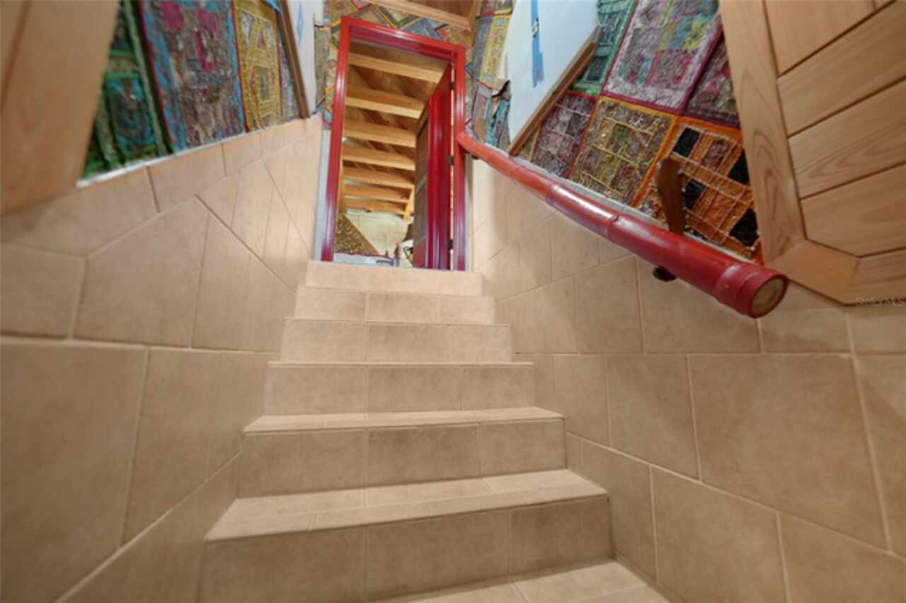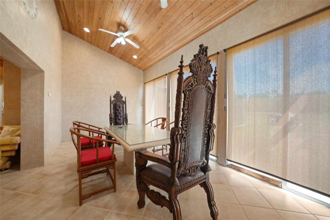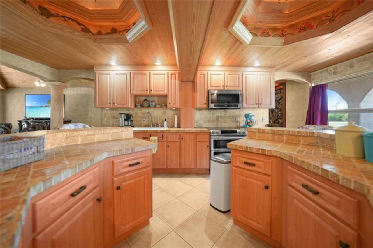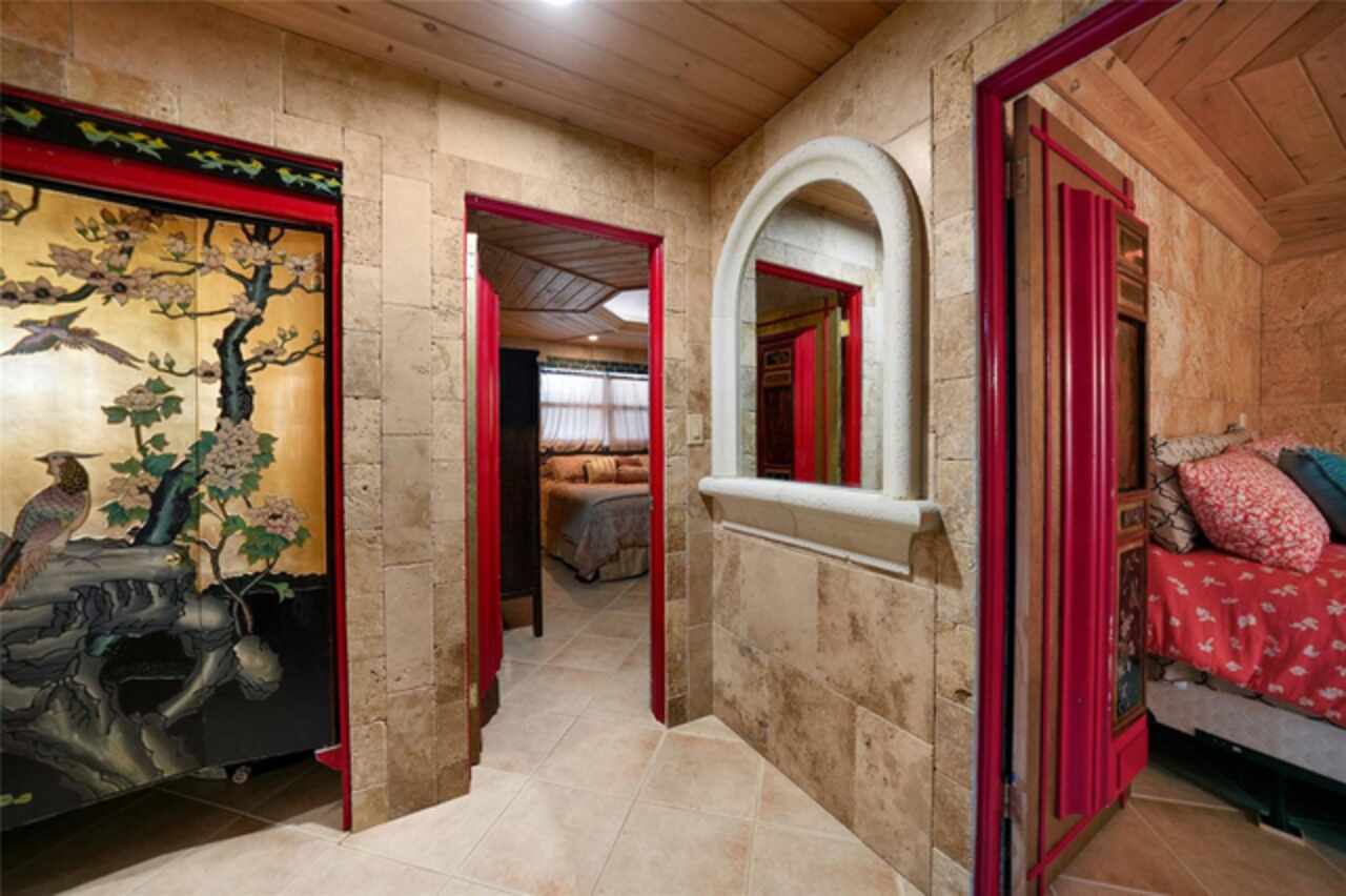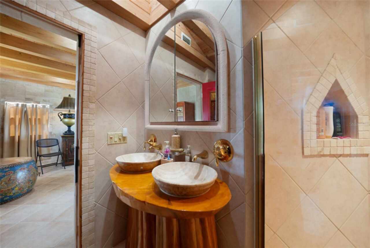 Unique is an understatement in describing this 4 bedroom, 3 bathroom Myakka River front home that its exterior and interior walls, along with floors, are Travertine. This gives the home a castle-like feel. The intricately handpainted, handcarved doors and ceiling panels brought in from various parts of the world, are found in every room in the home, along with a circular mosaic as a common theme. The kitchen is a great set-up for friends and family to cook and gather. The home is long and easily flows from each room. The 3 guest rooms and 2 bathrooms are located down a short hallway from the kitchen and family room. The caged pool and spa were added in 2019, and is conveniently accessible through sliding glass doors off of the family room. Beyond this room is an expansive more formal living room. On one end is a built in wall shelving unit that lights up. There are many nooks within the home that light up to add to the serene feel of the evening hours. Off of the formal living room is a formal dining room with wood caved table and chairs. As you move through the home, you will come to a laundry room, a door to the garage with its newly painted epoxy floor. A little way past this area is a bonus room that could be a den, or execise room. Before the laundry room is a stairway to the primary suite and upper deck that overlooks the river. There is an area off the kitchen that opens out to a staircase that also leads to the upper deck. Currently the sellers are getting quotes to fix this area. There is 200 feet of Myakka River water front and a dock that is 230 feet long with a 20, 000 lbs boat lift with a canvas cover. The El Jobean Fishing Pier is down the road. And though you can see the El Jobean bridge, you do not hear the traffic. It is nicely serene, but close to other attractions such as golf, Gulf beaches, dining and shopping, hiking, and of course boating. The home is being sold turnkey. A few art pieces may not convey. Neiher will the John Deere mower, ATV nor jet ski. They will be removed. This home is a must see to appreciate its uniqueness and location on 1.46 acres of Myakka River frontage. Paradise awaits!