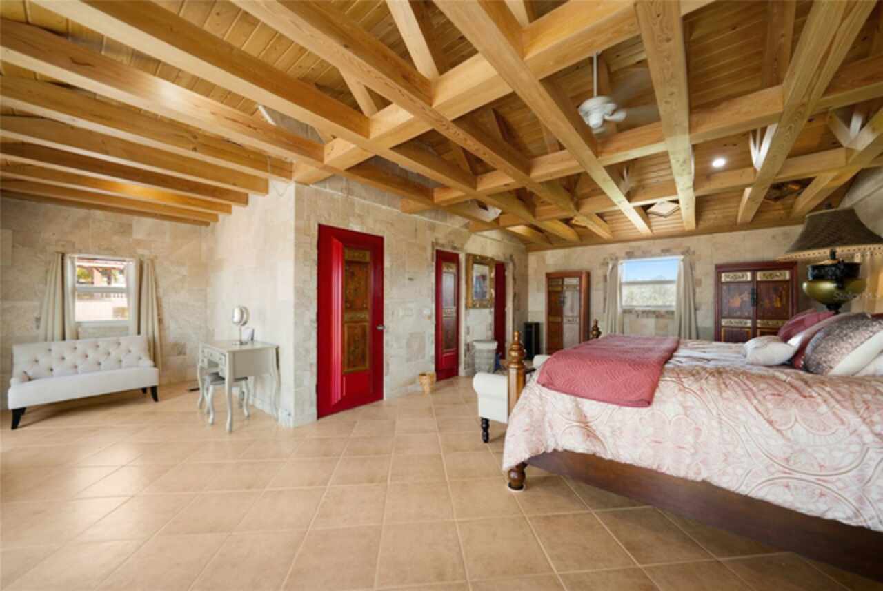 Cathedral Ceiling(s), Ceiling Fans(s), Eat-in Kitchen, High Ceilings, Kitchen/Family Room Combo, Open Floorplan, PrimaryBedroom Upstairs, Solid Wood Cabinets, Stone Counters, Thermostat, Tray Ceiling(s), Walk-In Closet(s)
