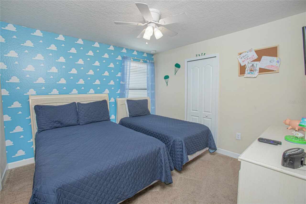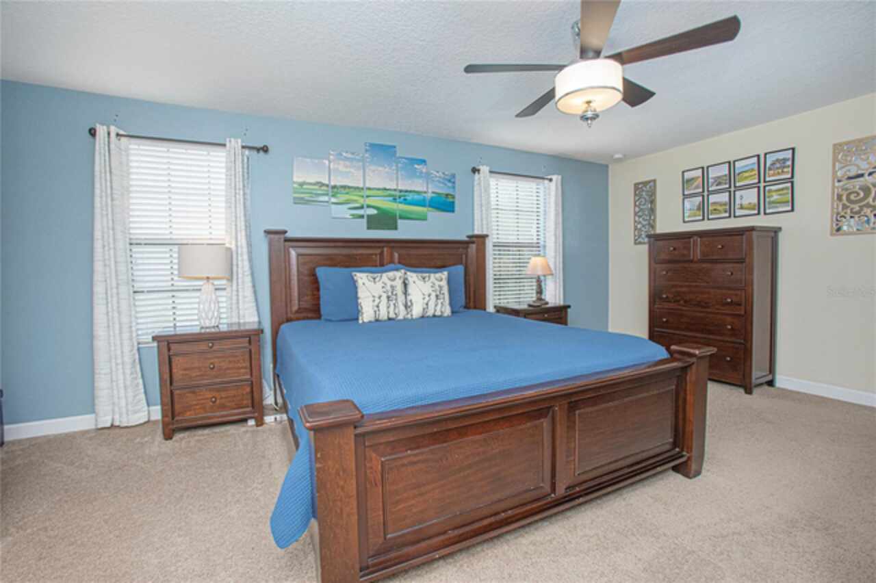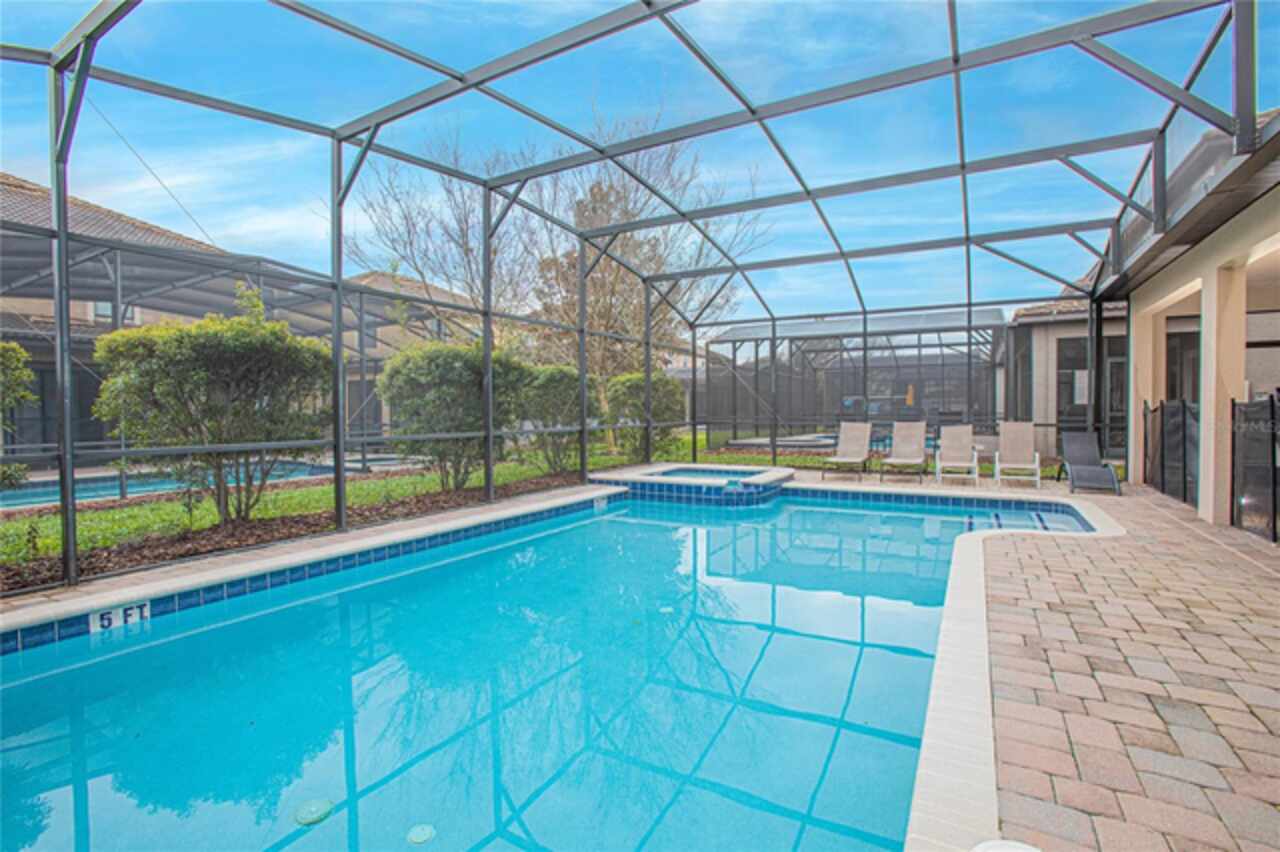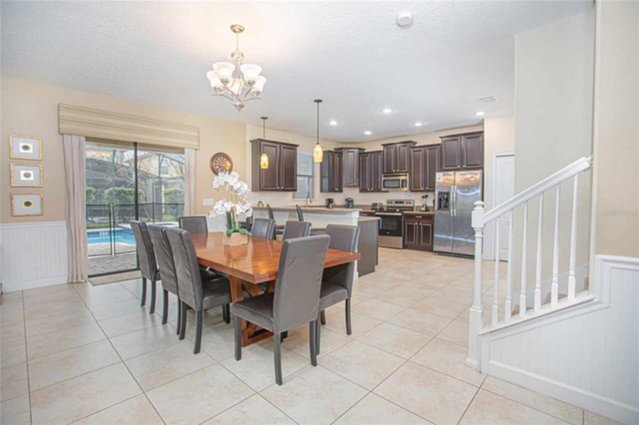 Enjoy resort living at the gorgeous ChampionsGate Resort! Owner has kept this extremely well-maintained. This remarkable home boasts a gourmet kitchen, two junior primary suites, two game rooms and a brand-new Harry Potter-themed, spacious loft. As you enter, the custom wainscoting on the first level catches your eye immediately. The first floor features extensive tile flooring for easy upkeep, with a junior primary bedroom offering an attached en-suite bathroom. The open-concept floor plan allows a seamless flow from the kitchen, family room and dining area. The chef's kitchen is fully equipped with upgraded 42-inch espresso cabinets, stainless steel appliances and ample granite countertop space. The formal dining area doubles as an entertaining game room with a billiards table and arcade game. Convenient indoor/outdoor Florida living with sliders that open to huge private pool with heated spa, screen enclosure and new pool pump with a pool bath with private access. Beautifully paved outdoor lanai. Upstairs, discover five bedrooms with a huge loft, perfect for movie nights. Brand-new themed bedrooms. Bedrooms two and three share a Jack-and-Jill bathroom, while the fourth bedroom utilizes the hall bath. The fifth bedroom serves as another private primary suite with an attached bathroom. The main primary bedroom features a spacious closet and an en-suite bath with granite countertops, double sinks, a large shower and a separate garden tub. ChampionsGate Resort is a 24-hour guard-gated community resort with amenities that include a clubhouse called The Oasis, which offers a 130, 000-gallon heated pool, lazy river, fitness center, arcade room, movie theater, full-service tiki bar, on-site golf course and much more. Home is currently listed as short-term rental. Qualified buyers may receive a 1-year interest rate buydown for the first year paid for by the Seller's preferred lender when financing this home (subject to credit approval and program availability) - call today for details.