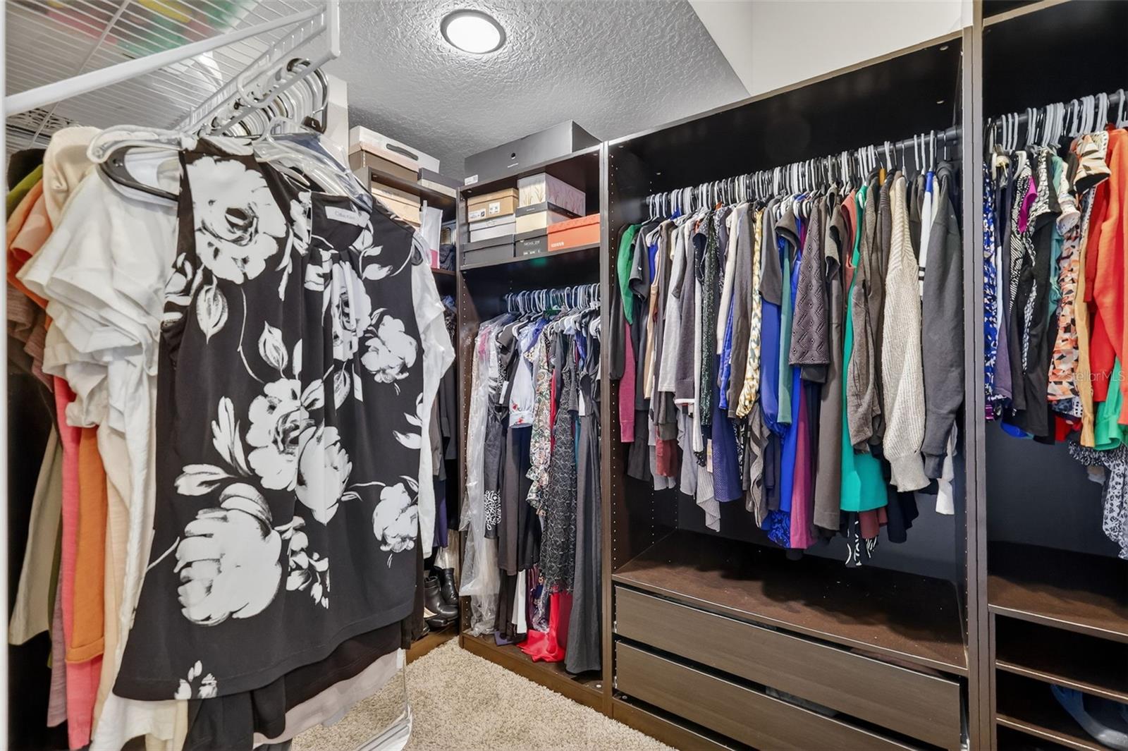 Ceiling Fans(s), Coffered Ceiling(s), Crown Molding, Eat-in Kitchen, High Ceilings, Kitchen/Family Room Combo, L Dining, Primary Bedroom Main Floor, Tray Ceiling(s), Walk-In Closet(s), Window Treatments
