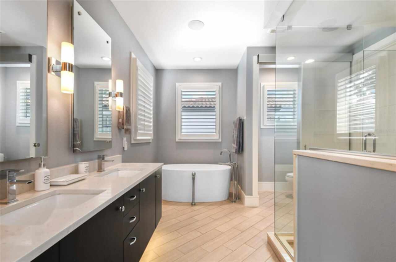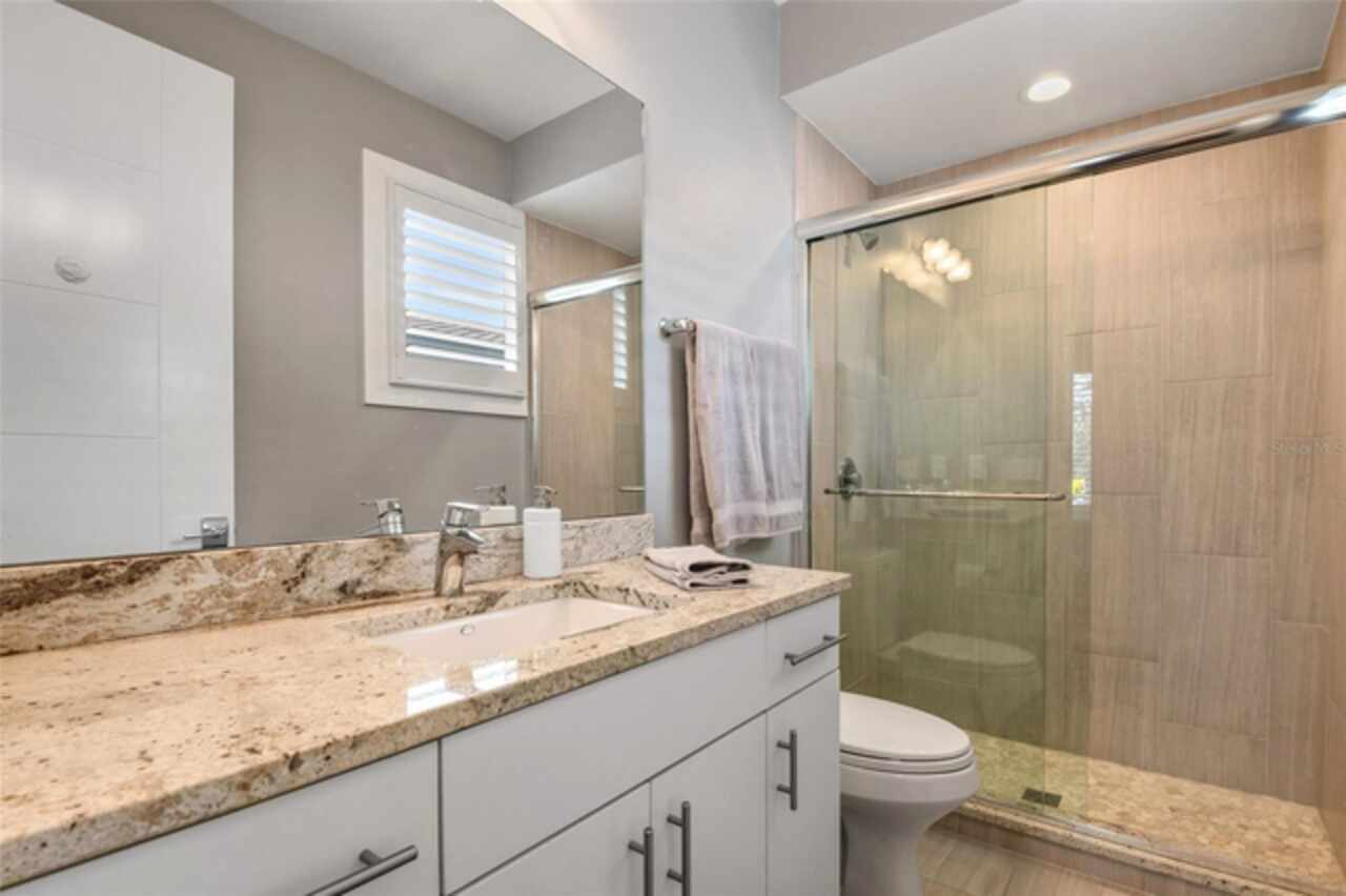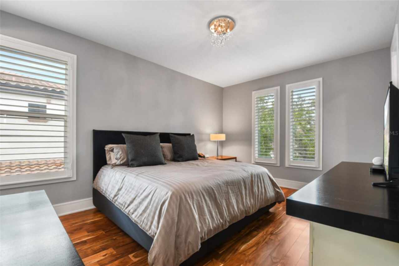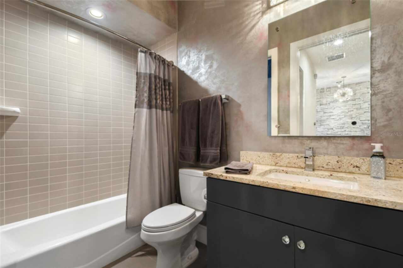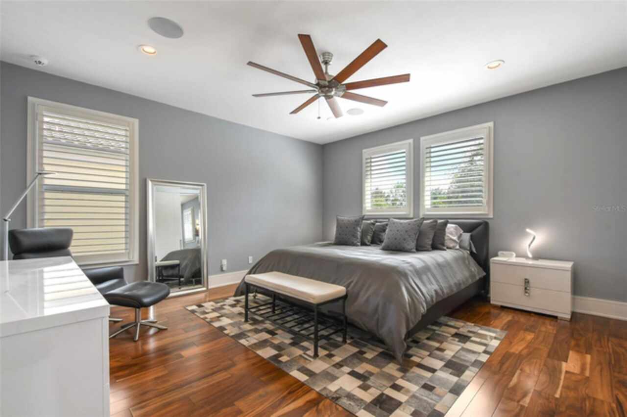 Exceptional Phil Kean-designed contemporary masterpiece in Winter Park's prestigious Windsong community. This sophisticated 4-bedroom, 4-bathroom residence seamlessly blends modern luxury with practical living across two thoughtfully planned levels. The striking exterior features geometric lines, stacked stone accents, and dramatic double entry doors, setting the tone for the remarkable interior. A grand foyer with continuing stone elements welcomes you into an open-concept main level, perfect for both entertaining and daily living. Walls of 8-foot sliding glass doors blur the lines between indoor and outdoor spaces, opening to a covered 12' x 25' lanai. The showstopping gourmet kitchen serves as the heart of the home, featuring a commanding 6' x 6' granite island, KitchenAid stainless steel appliances including a professional 6-burner gas cooktop, generous walk-in pantry, and sleek dark cabinetry contrasting with the subway tile backsplash and white countertops. A sophisticated blue ceiling detail and sunburst light fixture add artistic flair to this culinary haven. The main level includes a private en-suite guest room, while the upper level houses the primary suite, two additional en-suite bedrooms, a versatile loft workspace, and laundry facilities. Recent premium upgrades include a whole-home generator, surge protection system, EV charging outlet, hardwood flooring in upstairs guest rooms, home theater electronics, whole-home audio, and security system with integrated smoke detection. Located in the amenity-rich Windsong community, residents enjoy chain of lakes access, multiple community pools, and playground facilities. Minutes from the vibrant dining scenes of Audubon Park Garden District, Mills 50, and Winter Park's renowned Park Avenue. This masterfully designed residence offers the perfect balance of sophisticated style, modern convenience, and prime location.