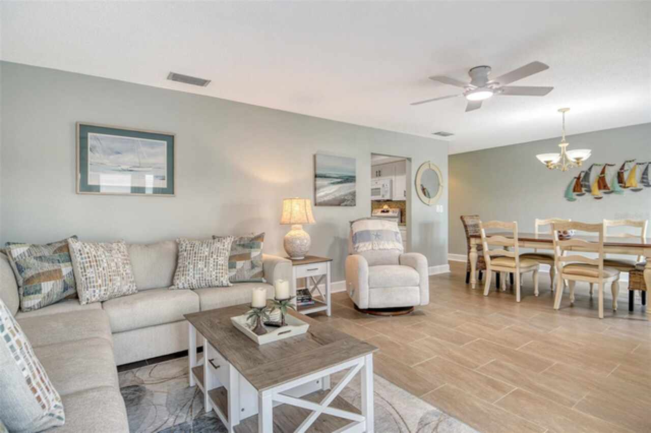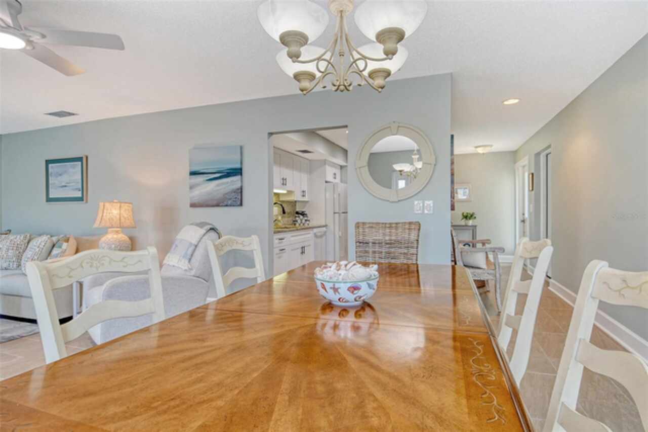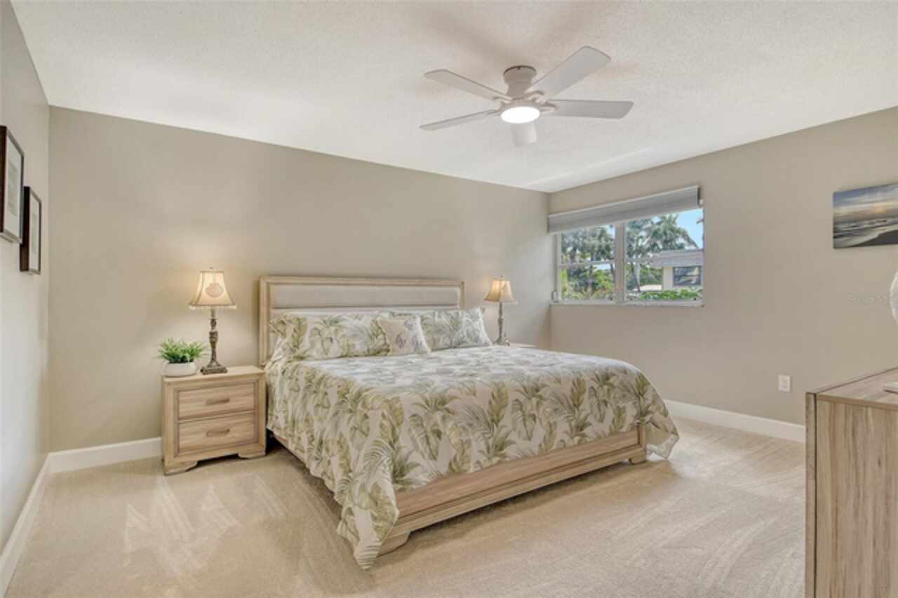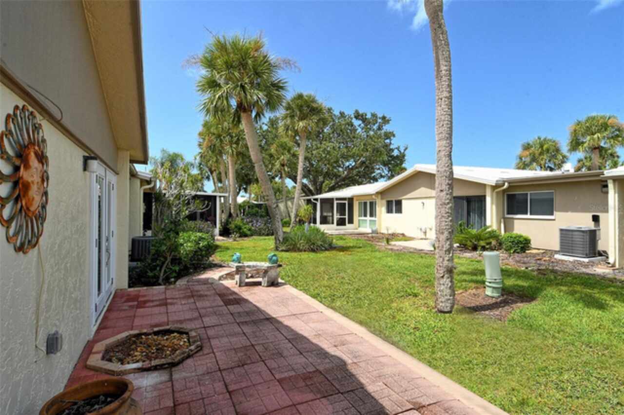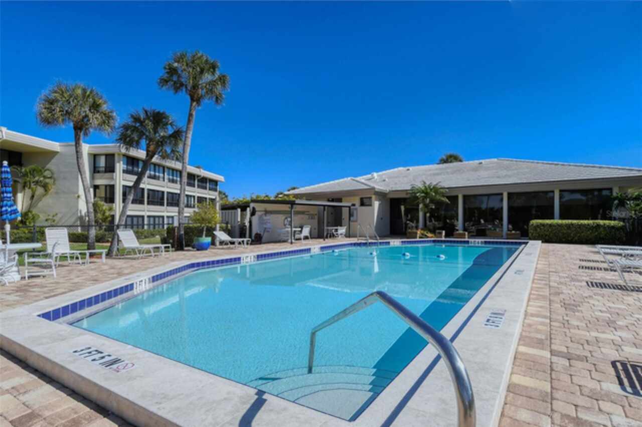 PERFECTION! Enjoy effortless coastal living in this beautifully REMODELED, 2 bed/2 bath GULFSIDE villa with GARAGE, offered TURNKEY FURNISHED - with BRAND NEW 2025 furniture and furnishings! From the moment you arrive, you'll appreciate the thoughtful updates and fresh cohesive coastal decor that make this residence a stunner - and completely move-in ready. The all NEW galley kitchen boasts white custom cabinetry, granite countertops & backsplash, recessed lighting, and brand new GE appliances - perfect for preparing easy meals after a day at the beach. The well appointed, open concept living and dining areas flow seamlessly to the open air patio through two sets of French doors, creating an inviting indoor/outdoor feel. NEW porcelain tile floors throughout the main living areas add a touch of sophistication, while the bedrooms offer comfort with NEW plush carpeting. Both bathrooms have been stylishly remodeled with new cabinets, granite counters, and modern fixtures. The ensuite primary bathroom provides a bit of luxury with dual sinks, granite counters, a separate vanity, a spacious walk-in closet, and a linen storage closet. A NEW full-sized washer & dryer adds convenience, and the attached ONE CAR GARAGE also offers extra storage for your bikes or beach essentials. NEW 2025 VILLA ROOF. Located just around the corner from the beautiful clubhouse pool and only a short stroll to 800’ of your own PRIVATE quartz sand beach on the GULF and a second, beachside pool. And with Siesta Key Village’s vibrant shops and restaurants right next door, this villa is also perfectly positioned for enjoying the best of Siesta Key. Whispering Sands is a premier 55+ GULF FRONT complex offering its own private beach, 2 pools, clubhouse (currently being remodeled), canoe/kayak storage, shuffleboard, onsite management & maintenance staff, and security. Whether you're seeking a serene full-time residence or a seasonal retreat, this exceptional, well priced villa offers the ultimate in island living!