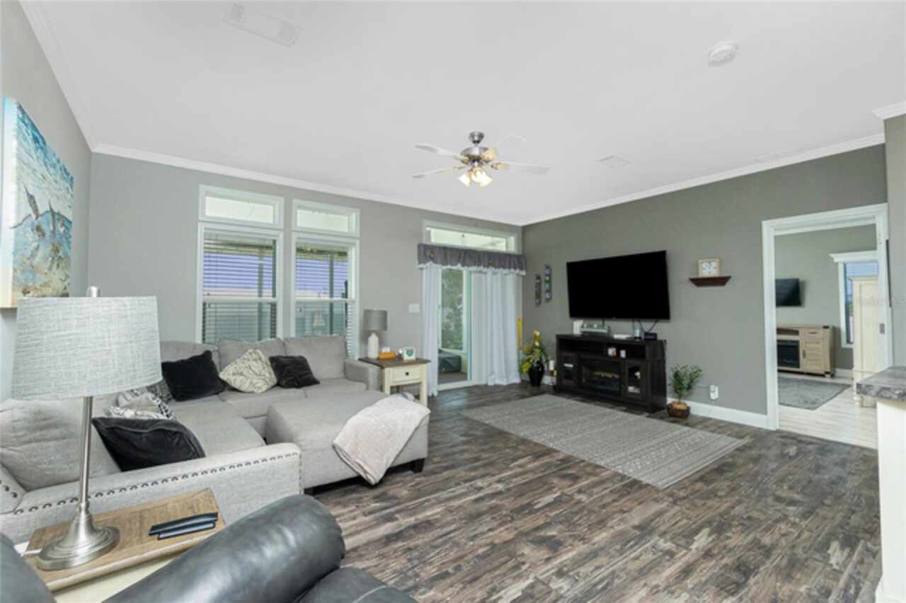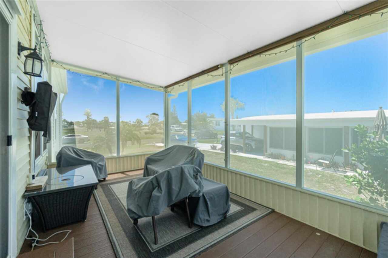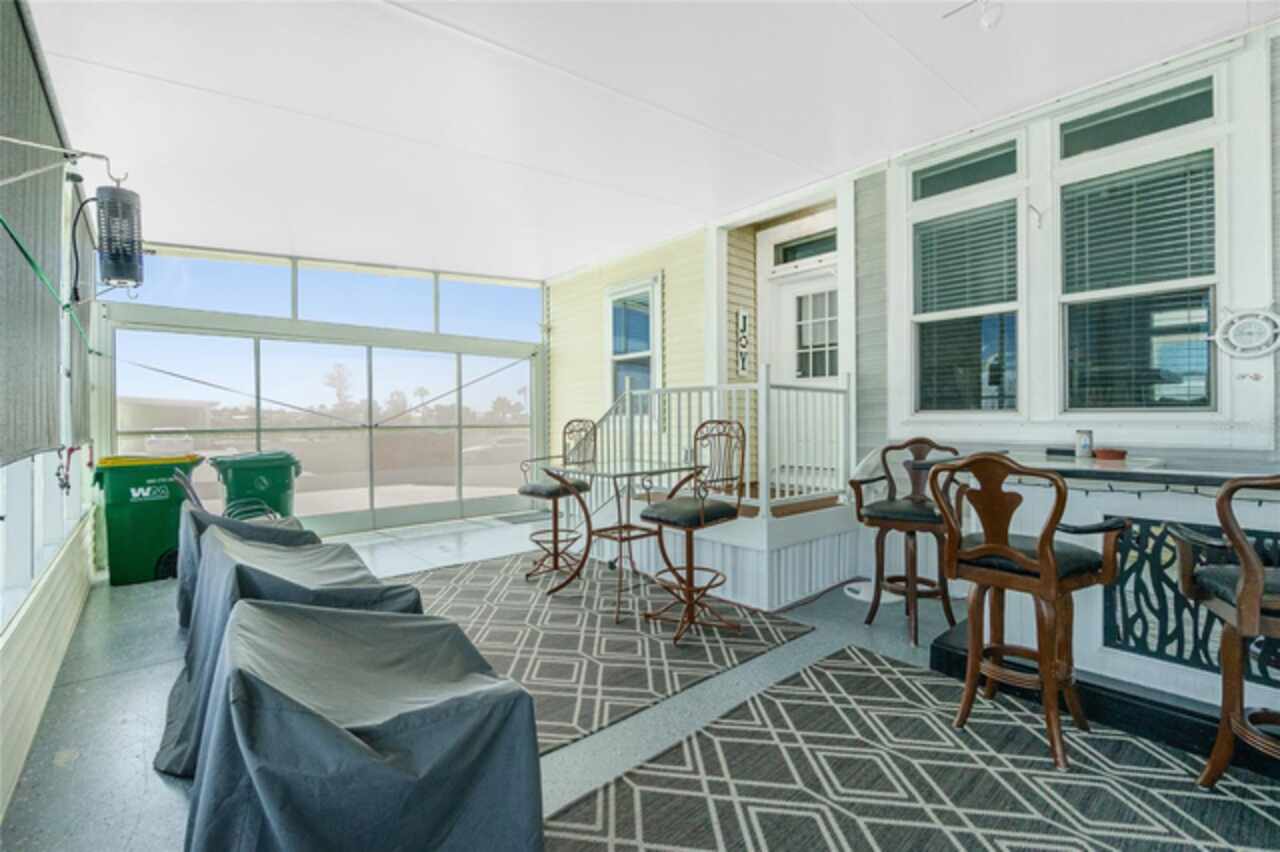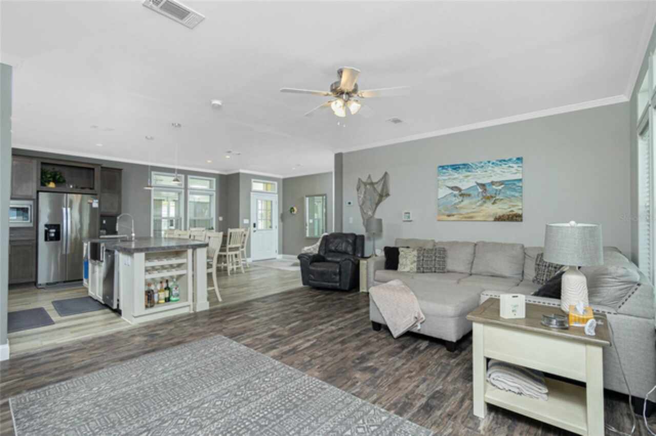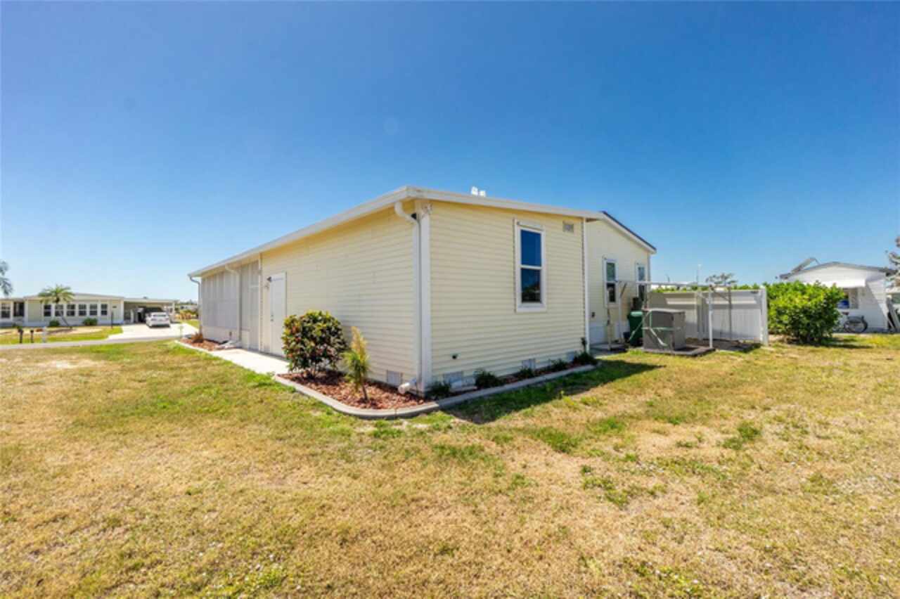 This gem is a 2019 Palm Harbor home with 1581 square feet under air and a total of 2823 square feet offering an exquisite blend of comfort, style, and convenience. Here you will find 3 bedrooms, 2 baths, 2 car garage, and 2 lanais. The high ceilings create a sense of spaciousness, making your home feel grand and open. The KITCHEN OFFERS MODERN UPGRADES that enhance both style and functionality which include An ISLAND BREAKFAST BAR, farmers sink, lots of counter space and cabinets for storage and STAINLESS STEEL APPLIANCES. The large master suite has a WALKIN CLOSET and an ensuite bathroom with DOUBLE SINKS and a WALKIN SHOWER. The second bedroom has a walk-in closet and bedroom number 3 has a MURPHY BED and built in closet both are sure to please visiting friends and family. The guest bath has a vanity with ample counter space and a combination tub/shower. This home also has a separate laundry room with a full utility closet and cabinets. Experience unparalleled peace and privacy in this one-of-a-kind lanai space featuring a PRIVATE BAR making entertaining more fun for both you and your guests. In the back part of the garage, you will find a section currently being used as a shed but the POSSIBILITIES ARE ENDLESS whether you’re looking for a workshop, craft room or storage, here you will find PLENTY OF OPTIONS TO MAKE IT YOUR OWN SPACE. Exit the sliders to the lanai on the left side or home which also offers an exit to your private back PATIO FEATURES A GAS FIREPIT. UPDATES INCLUDE: ROOF (2024), HWH, HURRICANE SHUTTERS. GOLF CART (2024 BATTERIES), FURNITURE, GENERATOR, LAWN EQUIPMENT AND TOOLS ARE NEGOTIABLE. Membership to the Edgewater Clubhouse is $350 annually offering a POOL, Tennis Courts, Shuffleboard and Bocce Ball Courts. The Homeowner's Association is $35. annually. The outdoor enthusiast in you will love the closeness of boating and fishing. You will also find 5 golf courses and several Gulf Shore Beaches close by. The foodie in you will love the local delights like Gerry’s Tiki Hut, Farlow’s on the Water and the Sandbar Tiki & Grill to name a few. Would make a great winter get away spot. Come experience the Gulf Coast of Florida at its finest!