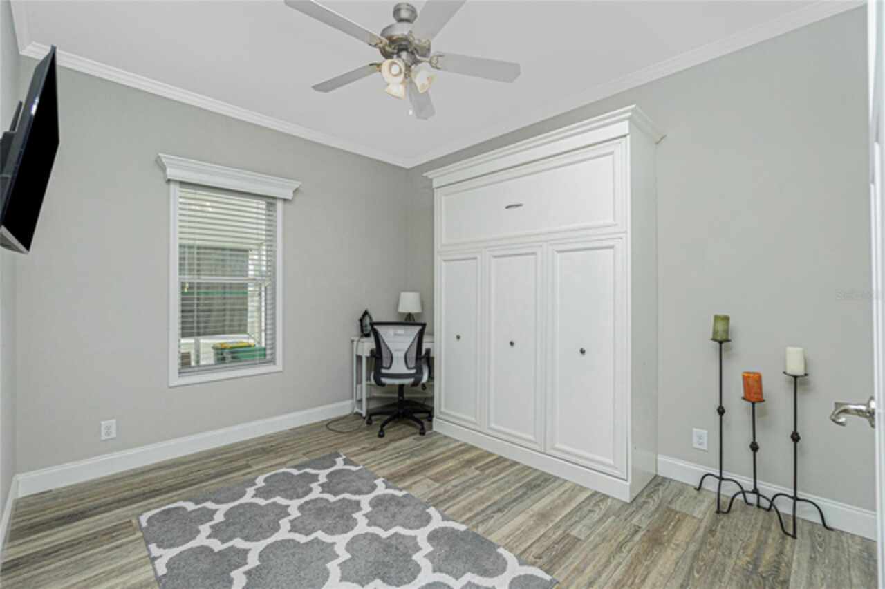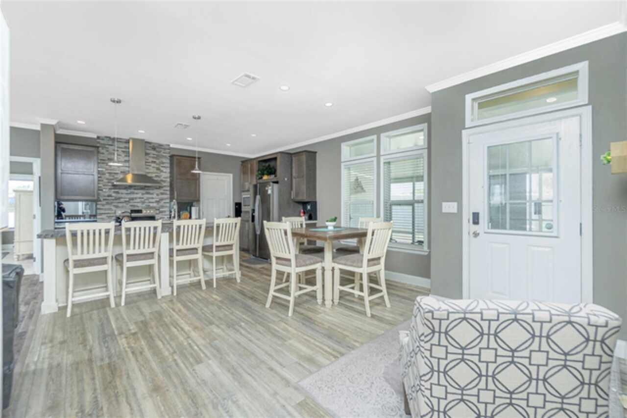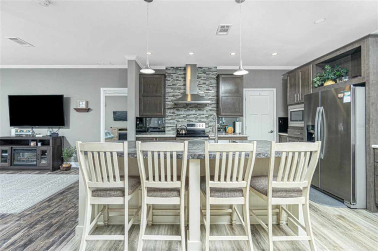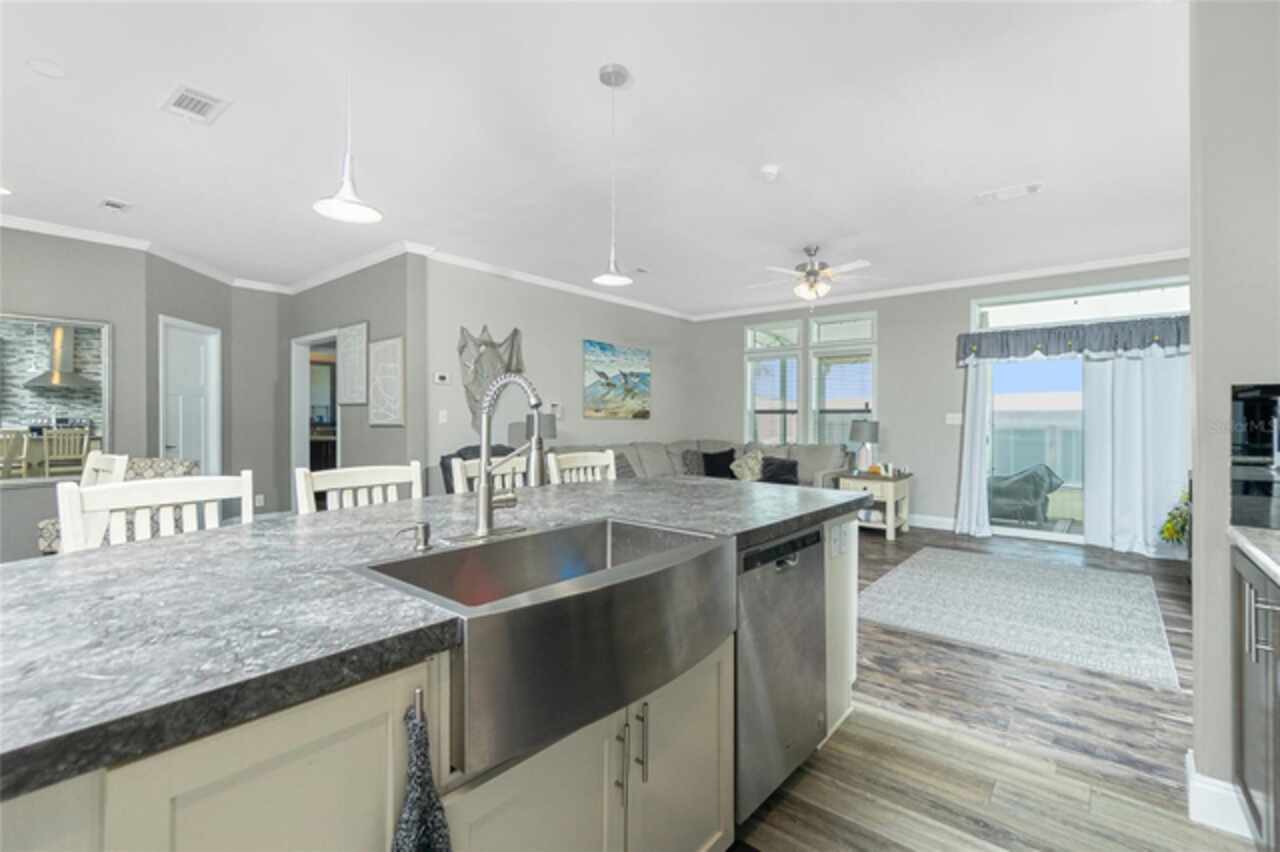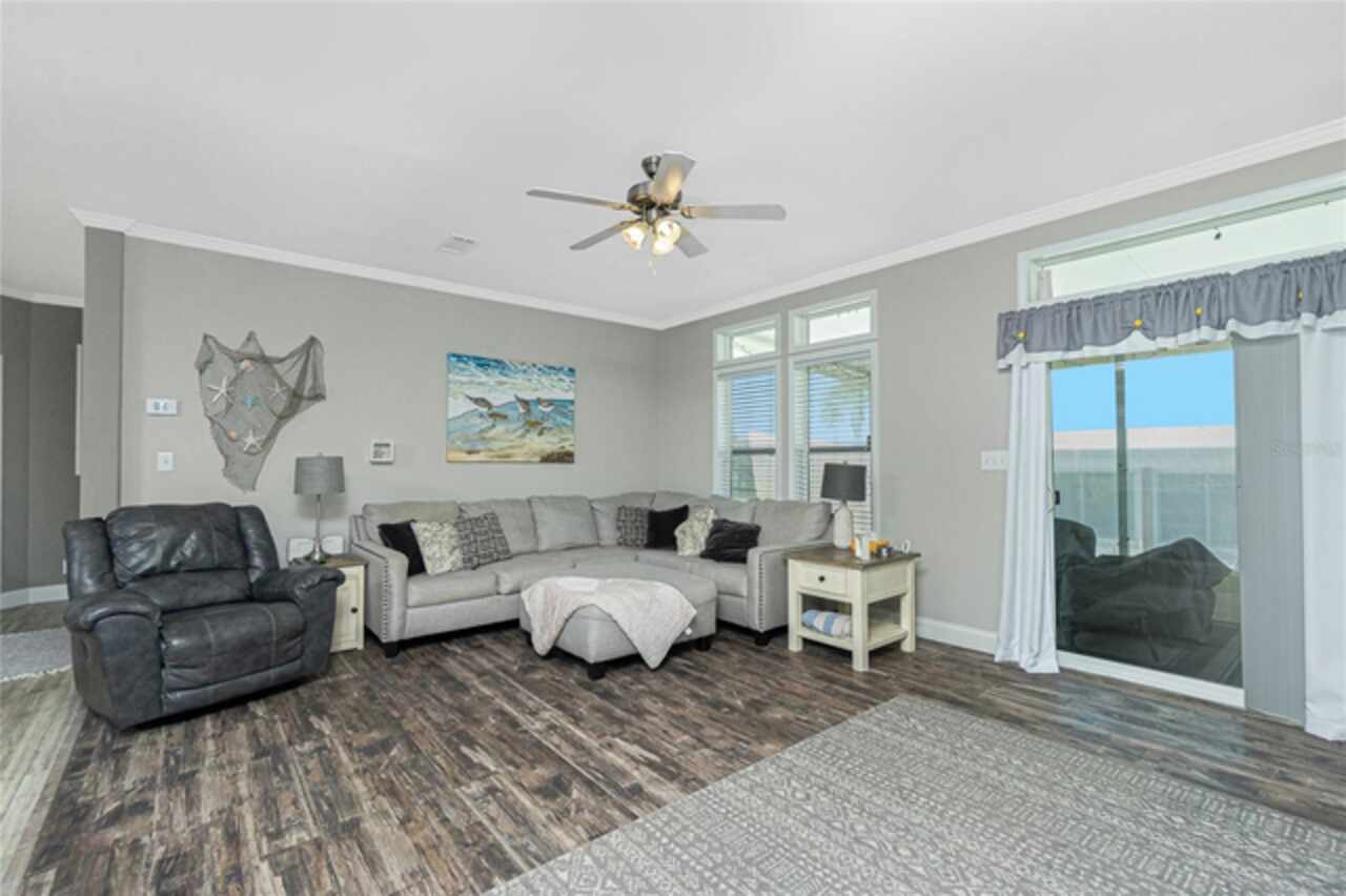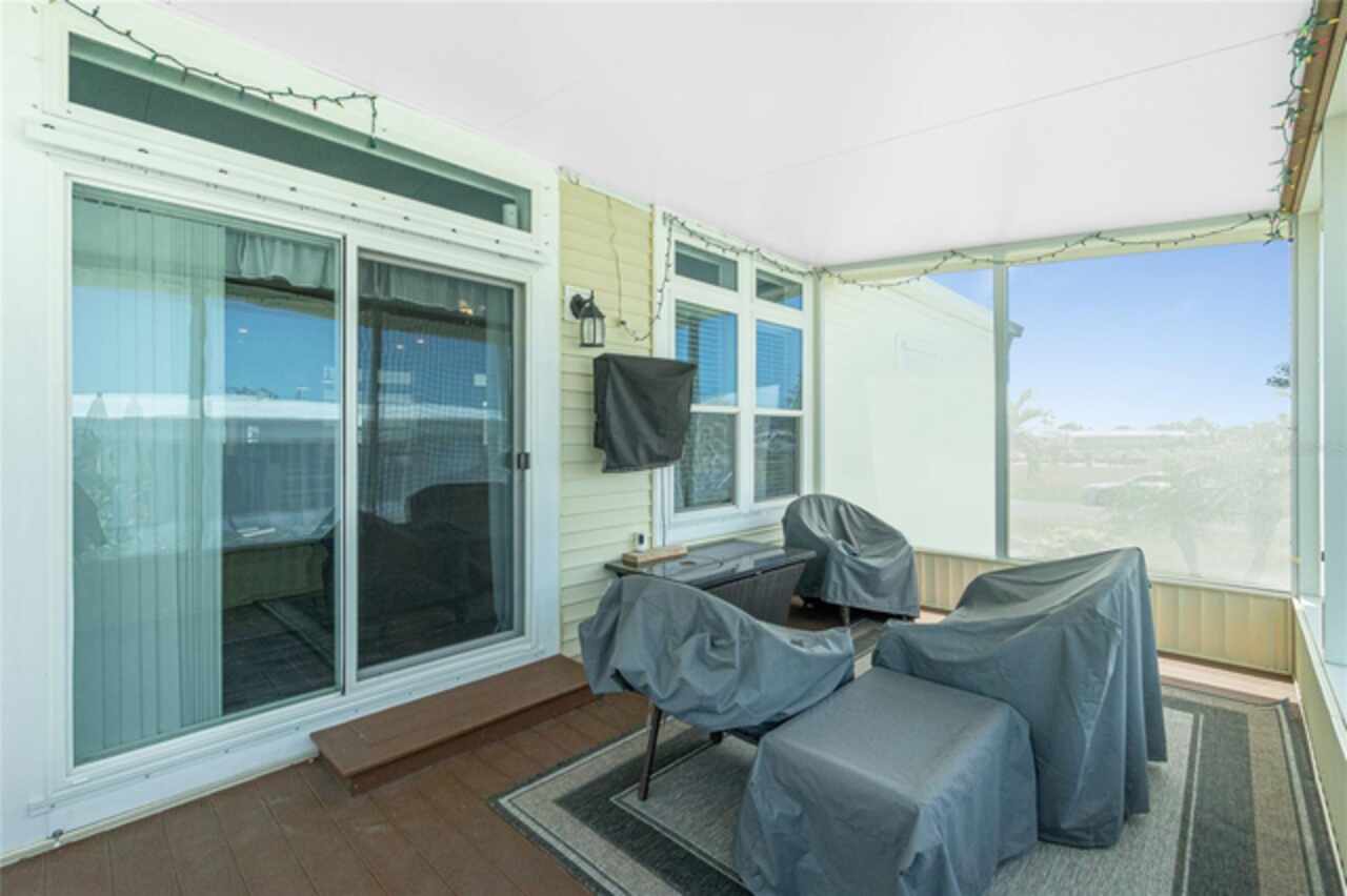 This gem is a 2019 Palm Harbor home with 1581 square feet under air and a total of 2823 square feet offering an exquisite blend of comfort, style, and convenience. Here you will find 3 bedrooms, 2 baths, 2 car garage, and 2 lanais. The high ceilings create a sense of spaciousness, making your home feel grand and open. The KITCHEN OFFERS MODERN UPGRADES that enhance both style and functionality which include An ISLAND BREAKFAST BAR, farmers sink, lots of counter space and cabinets for storage and STAINLESS STEEL APPLIANCES. The large master suite has a WALKIN CLOSET and an ensuite bathroom with DOUBLE SINKS and a WALKIN SHOWER. The second bedroom has a walk-in closet and bedroom number 3 has a MURPHY BED and built in closet both are sure to please visiting friends and family. The guest bath has a vanity with ample counter space and a combination tub/shower. This home also has a separate laundry room with a full utility closet and cabinets. Experience unparalleled peace and privacy in this one-of-a-kind lanai space featuring a PRIVATE BAR making entertaining more fun for both you and your guests. In the back part of the garage, you will find a section currently being used as a shed but the POSSIBILITIES ARE ENDLESS whether you’re looking for a workshop, craft room or storage, here you will find PLENTY OF OPTIONS TO MAKE IT YOUR OWN SPACE. Exit the sliders to the lanai on the left side or home which also offers an exit to your private back PATIO FEATURES A GAS FIREPIT. UPDATES INCLUDE: ROOF (2024), HWH, HURRICANE SHUTTERS. GOLF CART (2024 BATTERIES), FURNITURE, GENERATOR, LAWN EQUIPMENT AND TOOLS ARE NEGOTIABLE. Membership to the Edgewater Clubhouse is $350 annually offering a POOL, Tennis Courts, Shuffleboard and Bocce Ball Courts. The Homeowner's Association is $35. annually. The outdoor enthusiast in you will love the closeness of boating and fishing. You will also find 5 golf courses and several Gulf Shore Beaches close by. The foodie in you will love the local delights like Gerry’s Tiki Hut, Farlow’s on the Water and the Sandbar Tiki & Grill to name a few. Would make a great winter get away spot. Come experience the Gulf Coast of Florida at its finest!