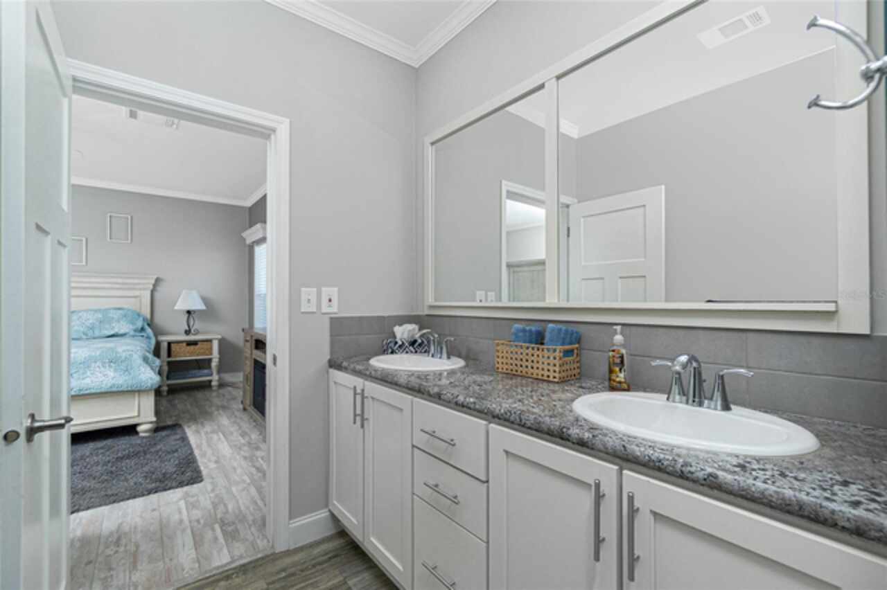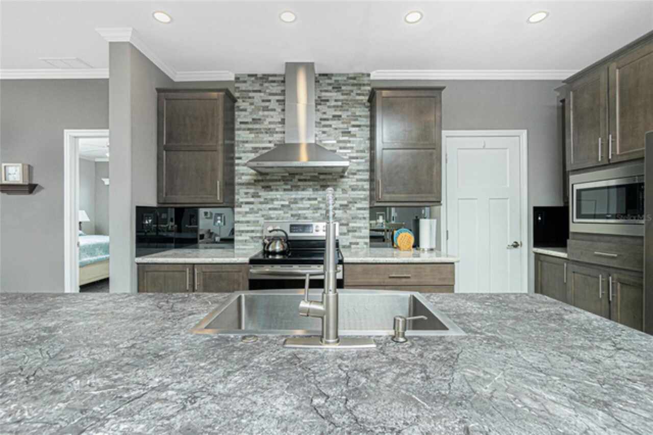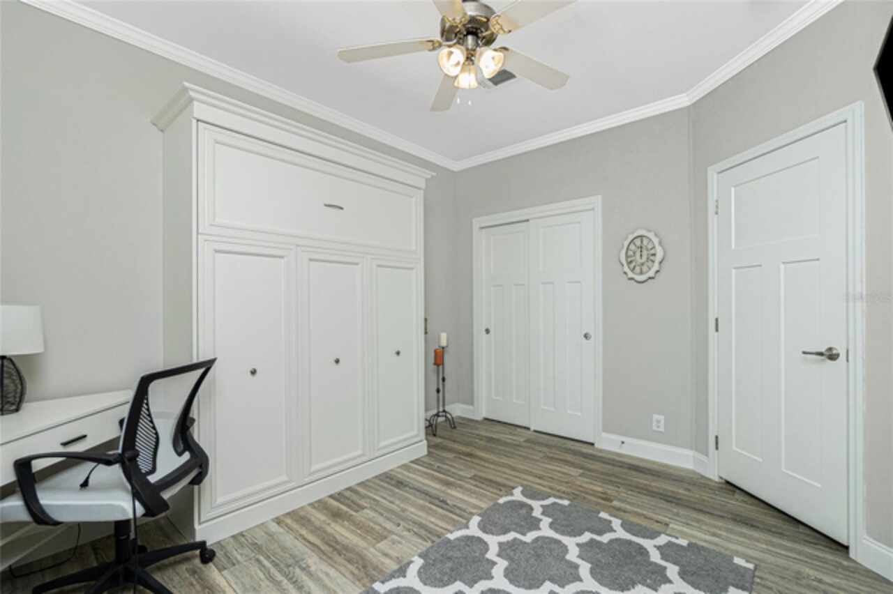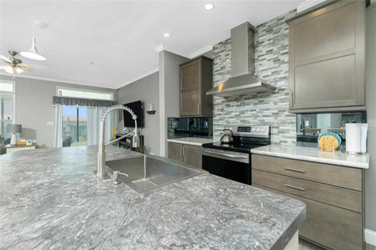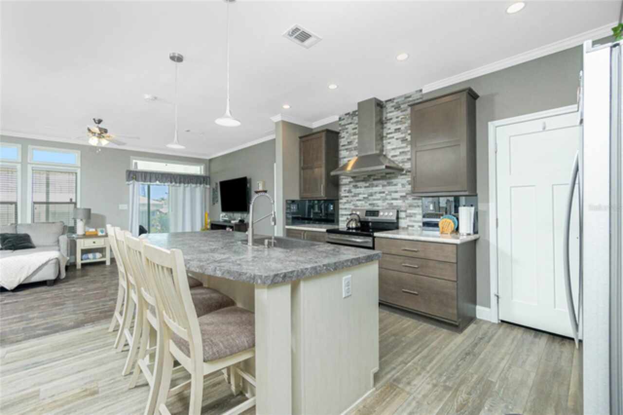 This gem is a 2019 Palm Harbor home with 1581 square feet under air and a total of 2823 square feet offering an exquisite blend of comfort, style, and convenience. Here you will find 3 bedrooms, 2 baths, 2 car garage, and 2 lanais. The high ceilings create a sense of spaciousness, making your home feel grand and open. The KITCHEN OFFERS MODERN UPGRADES that enhance both style and functionality which include An ISLAND BREAKFAST BAR, farmers sink, lots of counter space and cabinets for storage and STAINLESS STEEL APPLIANCES. The large master suite has a WALKIN CLOSET and an ensuite bathroom with DOUBLE SINKS and a WALKIN SHOWER. The second bedroom has a walk-in closet and bedroom number 3 has a MURPHY BED and built in closet both are sure to please visiting friends and family. The guest bath has a vanity with ample counter space and a combination tub/shower. This home also has a separate laundry room with a full utility closet and cabinets. Experience unparalleled peace and privacy in this one-of-a-kind lanai space featuring a PRIVATE BAR making entertaining more fun for both you and your guests. In the back part of the garage, you will find a section currently being used as a shed but the POSSIBILITIES ARE ENDLESS whether you’re looking for a workshop, craft room or storage, here you will find PLENTY OF OPTIONS TO MAKE IT YOUR OWN SPACE. Exit the sliders to the lanai on the left side or home which also offers an exit to your private back PATIO FEATURES A GAS FIREPIT. UPDATES INCLUDE: ROOF (2024), HWH, HURRICANE SHUTTERS. GOLF CART (2024 BATTERIES), FURNITURE, GENERATOR, LAWN EQUIPMENT AND TOOLS ARE NEGOTIABLE. Membership to the Edgewater Clubhouse is $350 annually offering a POOL, Tennis Courts, Shuffleboard and Bocce Ball Courts. The Homeowner's Association is $35. annually. The outdoor enthusiast in you will love the closeness of boating and fishing. You will also find 5 golf courses and several Gulf Shore Beaches close by. The foodie in you will love the local delights like Gerry’s Tiki Hut, Farlow’s on the Water and the Sandbar Tiki & Grill to name a few. Would make a great winter get away spot. Come experience the Gulf Coast of Florida at its finest!