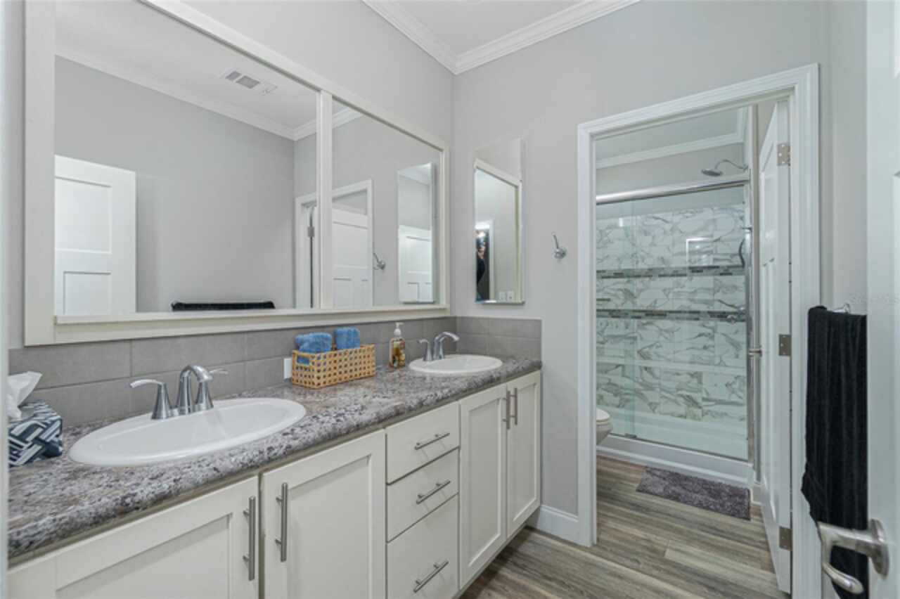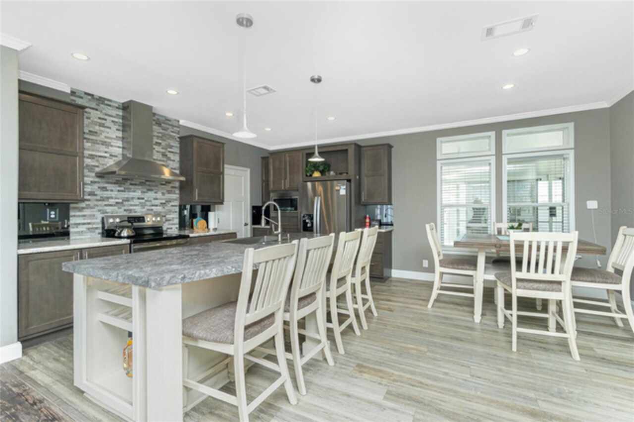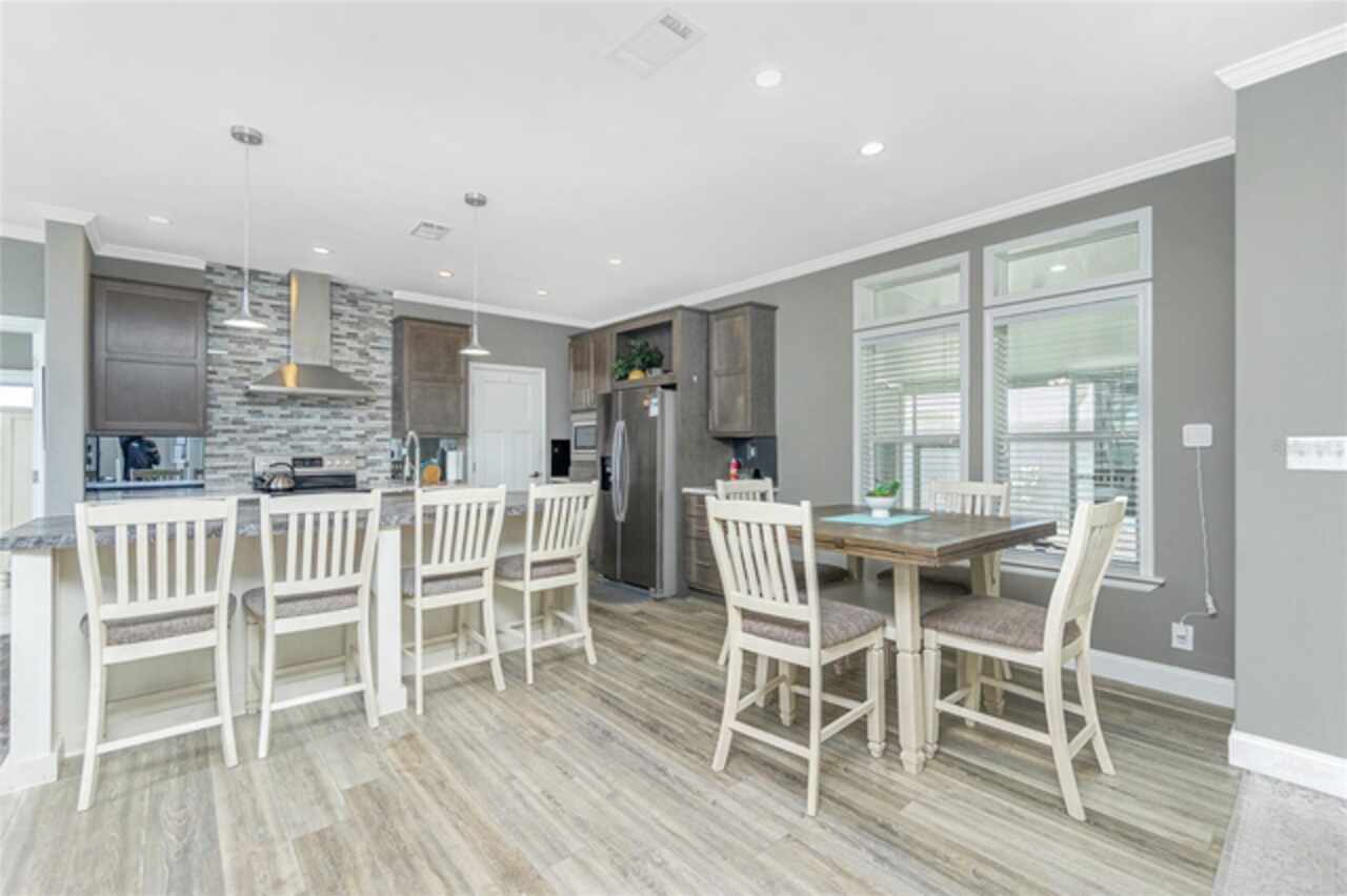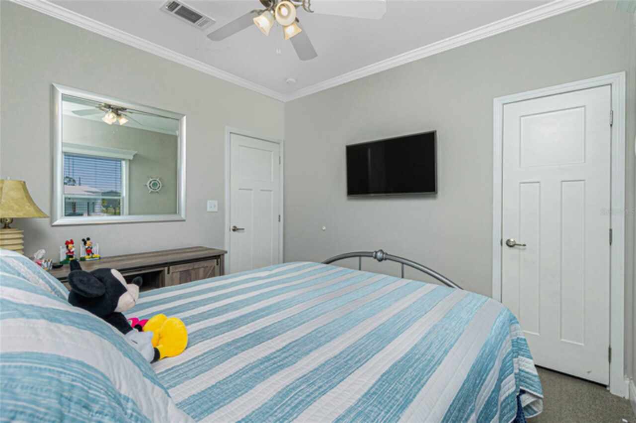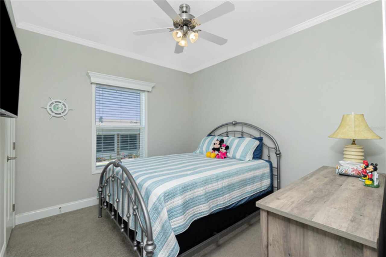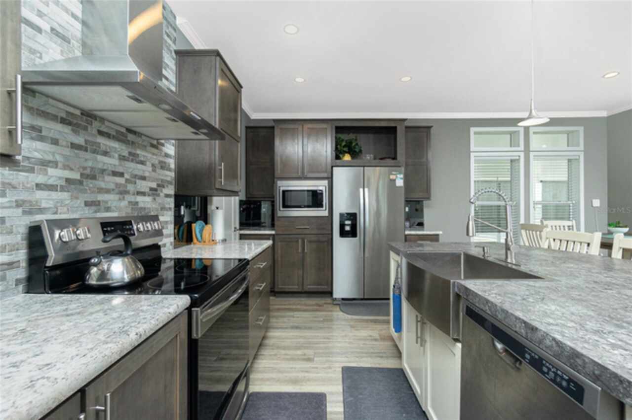 This gem is a 2019 Palm Harbor home with 1581 square feet under air and a total of 2823 square feet offering an exquisite blend of comfort, style, and convenience. Here you will find 3 bedrooms, 2 baths, 2 car garage, and 2 lanais. The high ceilings create a sense of spaciousness, making your home feel grand and open. The KITCHEN OFFERS MODERN UPGRADES that enhance both style and functionality which include An ISLAND BREAKFAST BAR, farmers sink, lots of counter space and cabinets for storage and STAINLESS STEEL APPLIANCES. The large master suite has a WALKIN CLOSET and an ensuite bathroom with DOUBLE SINKS and a WALKIN SHOWER. The second bedroom has a walk-in closet and bedroom number 3 has a MURPHY BED and built in closet both are sure to please visiting friends and family. The guest bath has a vanity with ample counter space and a combination tub/shower. This home also has a separate laundry room with a full utility closet and cabinets. Experience unparalleled peace and privacy in this one-of-a-kind lanai space featuring a PRIVATE BAR making entertaining more fun for both you and your guests. In the back part of the garage, you will find a section currently being used as a shed but the POSSIBILITIES ARE ENDLESS whether you’re looking for a workshop, craft room or storage, here you will find PLENTY OF OPTIONS TO MAKE IT YOUR OWN SPACE. Exit the sliders to the lanai on the left side or home which also offers an exit to your private back PATIO FEATURES A GAS FIREPIT. UPDATES INCLUDE: ROOF (2024), HWH, HURRICANE SHUTTERS. GOLF CART (2024 BATTERIES), FURNITURE, GENERATOR, LAWN EQUIPMENT AND TOOLS ARE NEGOTIABLE. Membership to the Edgewater Clubhouse is $350 annually offering a POOL, Tennis Courts, Shuffleboard and Bocce Ball Courts. The Homeowner's Association is $35. annually. The outdoor enthusiast in you will love the closeness of boating and fishing. You will also find 5 golf courses and several Gulf Shore Beaches close by. The foodie in you will love the local delights like Gerry’s Tiki Hut, Farlow’s on the Water and the Sandbar Tiki & Grill to name a few. Would make a great winter get away spot. Come experience the Gulf Coast of Florida at its finest!