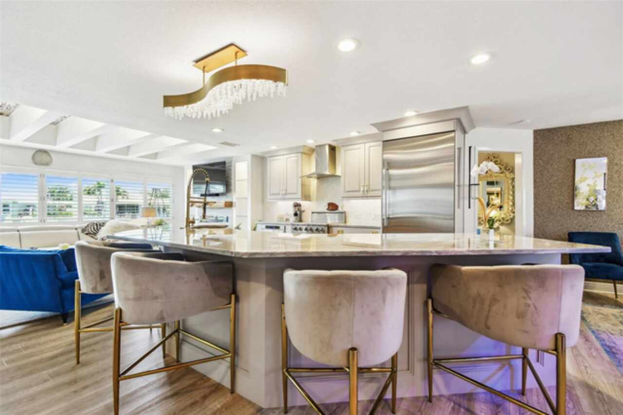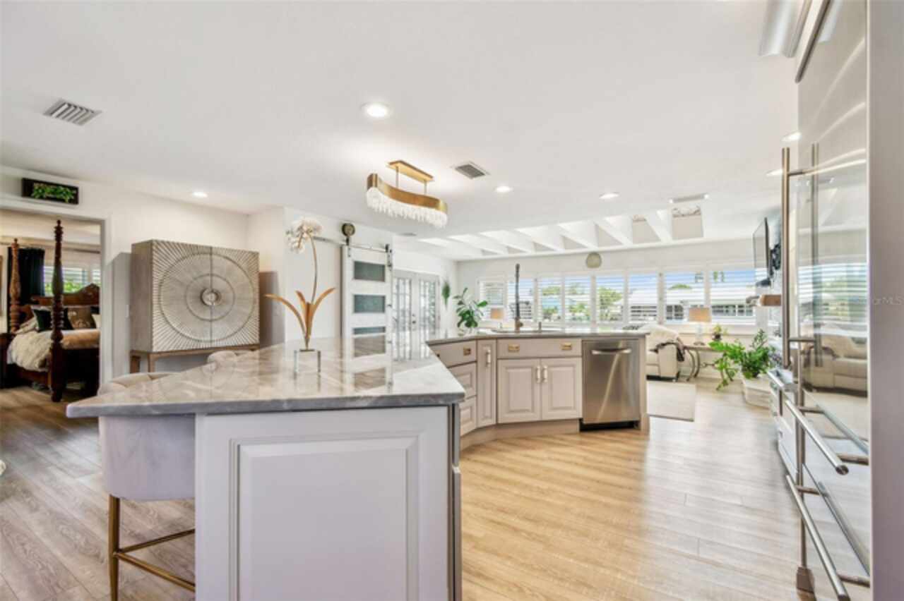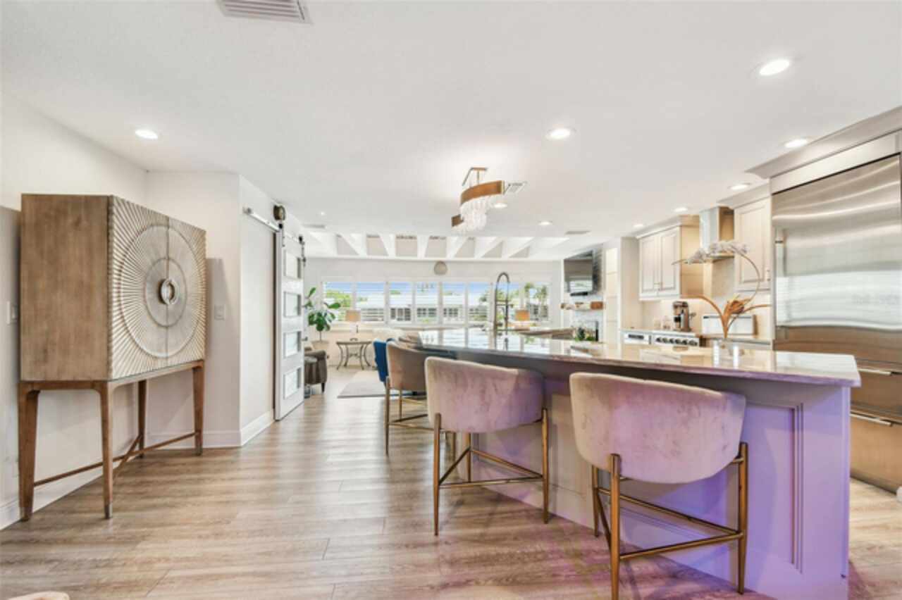 With this homes ELEVATION CERTIFICATE STATING 14.02 ft, THE HOME IS HIGH AND DRY AND HAS NEVER EXERIENCED ANY WATER INTRUSION OR FLOODING!! *ASSUMABLE FLOOD INSURANCE IS $781.00 a YEAR!!!* Welcome to this exquisitely renovated waterfront retreat in the coveted Ponderosa Shores neighborhood of St. Petersburg! This stunning concrete block home underwent a meticulous transformation beginning in 2020 blending modern luxury with timeless elegance. Ideally designed for comfort and sophistication, this residence offers an unparalleled Florida lifestyle with direct access to Tampa Bay and the Gulf. Enter to discover an open-concept layout adorned with beautiful flooring that flows seamlessly throughout. A custom-designed coffered ceiling with specialty lighting showcases the stunning pecky cypress inlays, creating a warm and inviting ambiance. The gourmet kitchen is a chef’s dream, featuring top-of-the-line cabinetry with glass and brass cabinet pulls, a VIKING convection oven/range, a built-in VIKING refrigerator, gleaming quartzite countertops and a striking Abalone tile backsplash. A newly installed pantry featuring a custom-designed barn door provides ample storage, while the thoughtfully reconfigured walls and custom California closets throughout enhance the home’s functionality and flow. The enlarged primary suite is a sanctuary boasting a spacious walk-in closet, a spa-inspired en-suite bath complete with marble flooring, a marble shower enclosure, anti-fog lighted LED mirrors and an Ariel jetted spa tub with integrated color changing lighting and sound for the ultimate relaxation experience. Additional INTERIOR UPDATES: include a NEW A/C system installed in (2018), the gas Hot Water Heater was replaced in (2020), a New Water Softener installed in (2022), and a Laundry closet was added in (2020), which was conveniently re-located inside, add to the home’s modern practicality. The EXTERIOR features allow peace of mind with a FULL ROOF REPLACEMENT in (2014), A NEW FLAT ROOF installed in (2020), NEW UPDATED PLUMBING in 2020, UPDATED WINDOWS in (2014), and thoughtfully imagined Landscaping with exterior gas lanterns added to the home in (2022). There is a 10, 000 lb Boat Lift with a NEW Electronics Control Unit and Remote (2025), the dock pilings were wrapped in (2025), and a REPLACEMENT OF THE SEA WALL that is double-capped in (2017). Every detail of this renovation reflects quality and craftsmanship, from high-end finishes to reimagined spaces tailored to accommodate the most discerning buyers. In the heart of Ponderosa Shores, this home offers serene canal views, easy boating access with no low bridge restrictions, close proximity to vibrant downtown St. Petersburg, art galleries, restaurants and the pristine Gulf beaches. Enjoy taking your Golf Cart to the many neighborhood activities including Holiday Golf Cart Parades, or through Snell Isle to the Historic 5 Star Vinoy Resort and the Vinoy Park on the busy waterfront right across the street. Don’t miss the opportunity to own this move-in-ready masterpiece in one of St. Petersburg’s desirable waterfront communities. ***As an added bonus, there is a NEW COMMUNITY REC CENTER featuring pickleball, basketball, a large POOL, waterslides, fitness, and a lot more! *** Schedule your private tour today and experience coastal luxury at its finest.