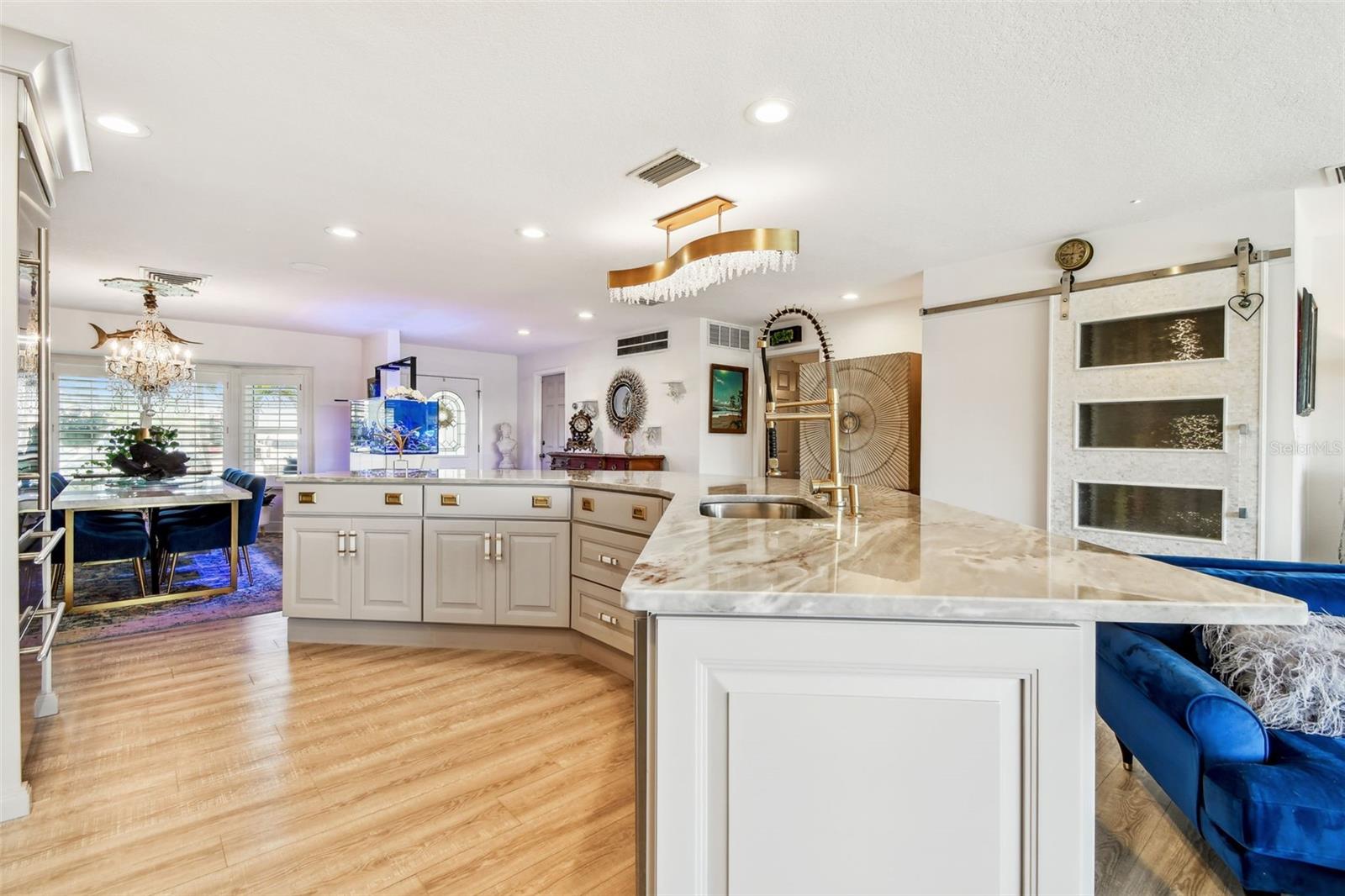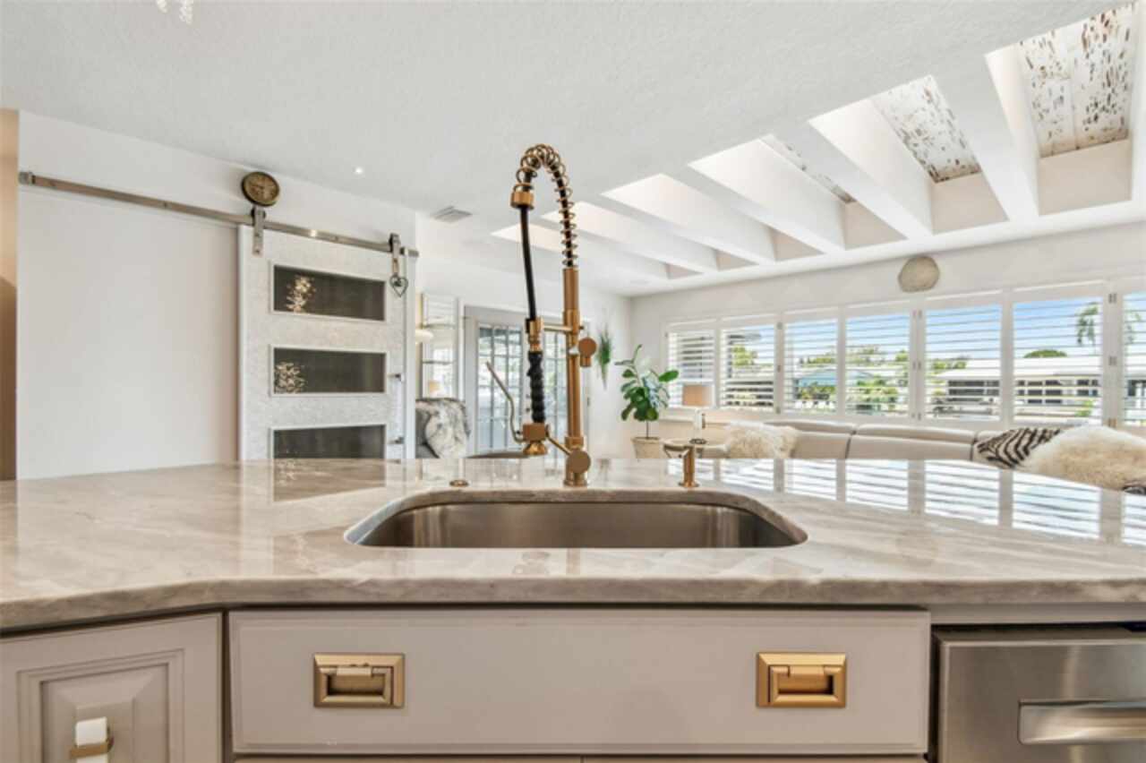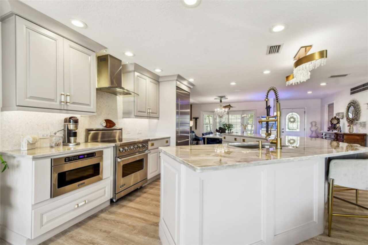 With this homes ELEVATION CERTIFICATE STATING 14.02 ft, THE HOME IS HIGH AND DRY AND HAS NEVER EXERIENCED ANY WATER INTRUSION OR FLOODING!! *ASSUMABLE FLOOD INSURANCE IS $781.00 a YEAR!!!* Welcome to this exquisitely renovated waterfront retreat in the coveted Ponderosa Shores neighborhood of St. Petersburg! This stunning concrete block home underwent a meticulous transformation beginning in 2020 blending modern luxury with timeless elegance. Ideally designed for comfort and sophistication, this residence offers an unparalleled Florida lifestyle with direct access to Tampa Bay and the Gulf. Enter to discover an open-concept layout adorned with beautiful flooring that flows seamlessly throughout. A custom-designed coffered ceiling with specialty lighting showcases the stunning pecky cypress inlays, creating a warm and inviting ambiance. The gourmet kitchen is a chef’s dream, featuring top-of-the-line cabinetry with glass and brass cabinet pulls, a VIKING convection oven/range, a built-in VIKING refrigerator, gleaming quartzite countertops and a striking Abalone tile backsplash. A newly installed pantry featuring a custom-designed barn door provides ample storage, while the thoughtfully reconfigured walls and custom California closets throughout enhance the home’s functionality and flow. The enlarged primary suite is a sanctuary boasting a spacious walk-in closet, a spa-inspired en-suite bath complete with marble flooring, a marble shower enclosure, anti-fog lighted LED mirrors and an Ariel jetted spa tub with integrated color changing lighting and sound for the ultimate relaxation experience. Additional INTERIOR UPDATES: include a NEW A/C system installed in (2018), the gas Hot Water Heater was replaced in (2020), a New Water Softener installed in (2022), and a Laundry closet was added in (2020), which was conveniently re-located inside, add to the home’s modern practicality. The EXTERIOR features allow peace of mind with a FULL ROOF REPLACEMENT in (2014), A NEW FLAT ROOF installed in (2020), NEW UPDATED PLUMBING in 2020, UPDATED WINDOWS in (2014), and thoughtfully imagined Landscaping with exterior gas lanterns added to the home in (2022). There is a 10, 000 lb Boat Lift with a NEW Electronics Control Unit and Remote (2025), the dock pilings were wrapped in (2025), and a REPLACEMENT OF THE SEA WALL that is double-capped in (2017). Every detail of this renovation reflects quality and craftsmanship, from high-end finishes to reimagined spaces tailored to accommodate the most discerning buyers. In the heart of Ponderosa Shores, this home offers serene canal views, easy boating access with no low bridge restrictions, close proximity to vibrant downtown St. Petersburg, art galleries, restaurants and the pristine Gulf beaches. Enjoy taking your Golf Cart to the many neighborhood activities including Holiday Golf Cart Parades, or through Snell Isle to the Historic 5 Star Vinoy Resort and the Vinoy Park on the busy waterfront right across the street. Don’t miss the opportunity to own this move-in-ready masterpiece in one of St. Petersburg’s desirable waterfront communities. ***As an added bonus, there is a NEW COMMUNITY REC CENTER featuring pickleball, basketball, a large POOL, waterslides, fitness, and a lot more! *** Schedule your private tour today and experience coastal luxury at its finest.